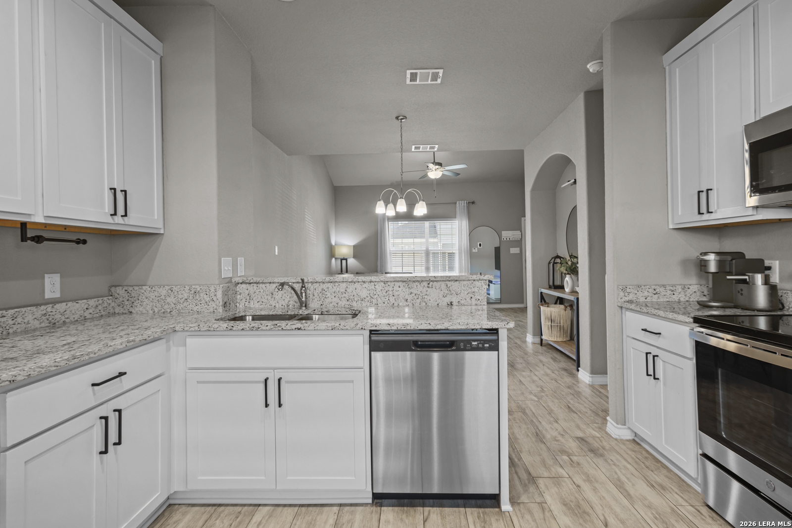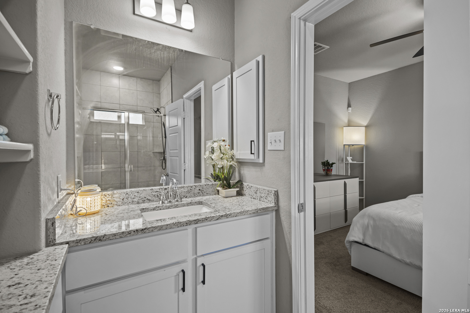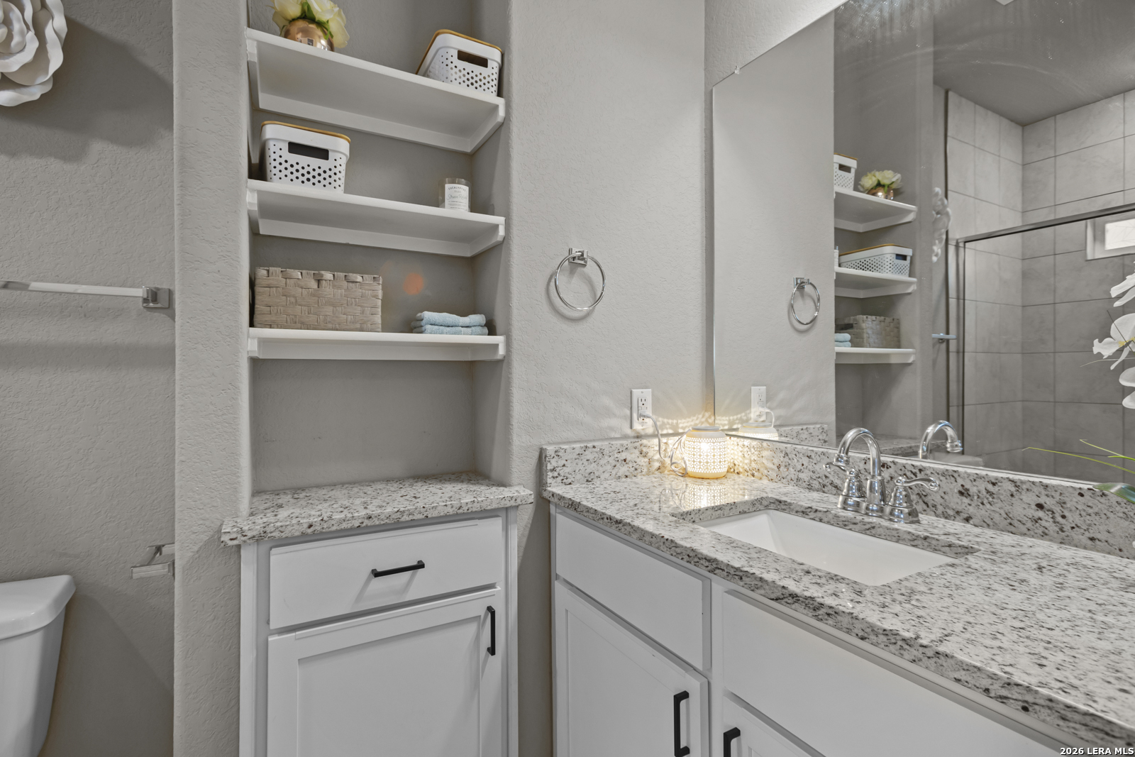 Welcome to this well-maintained 3-bedroom, 2-bath condominium located in The Cottages of Castle Hills, a desirable community in the heart of the Castle Hills area of San Antonio. Offering 1,444 square feet, this home features an open living room and kitchen layout that creates a comfortable space for everyday living and entertaining. The kitchen is equipped with granite countertops and stainless steel appliances, blending style and functionality. The spacious primary suite includes a full private bath, while the loft provides flexible space ideal for an office, game area, or additional living space. Step outside to enjoy a private patio area with a privacy fence, perfect for relaxing or hosting guests. Residents enjoy a prime location near North Star Mall, Park North Mall, Alon Town Centre, and Hardberger Park, offering convenient access to shopping, dining, hiking, and biking. Situated in a strong school district, this home combines comfort, convenience, and location.