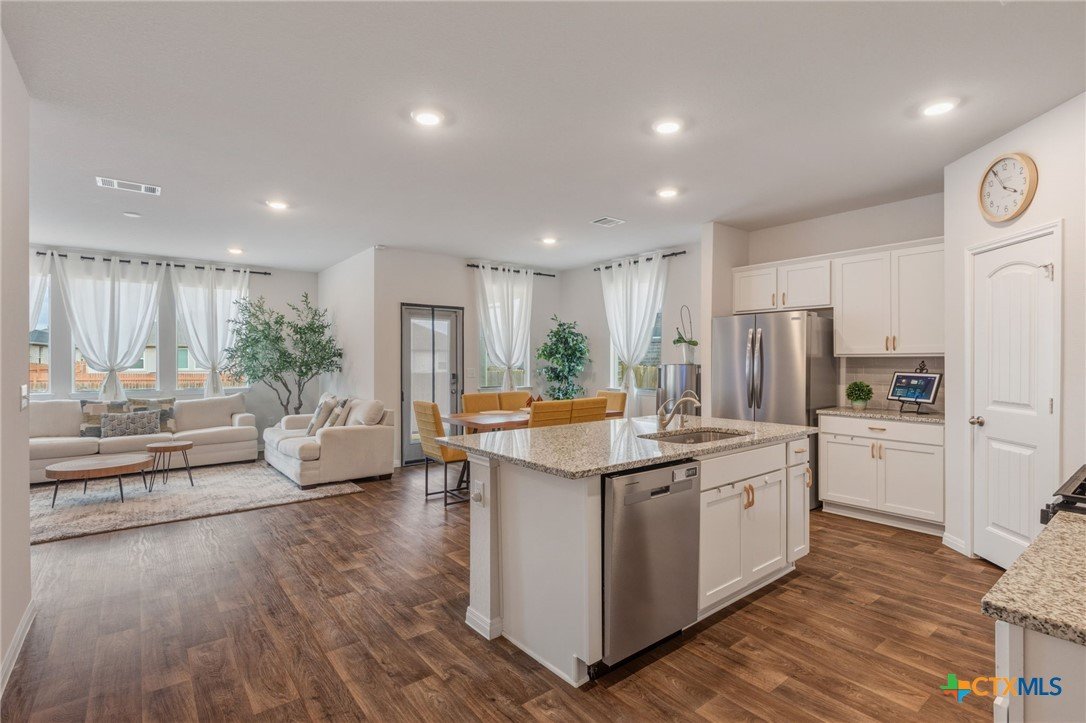 Step into effortless comfort and modern style in this beautifully maintained single-story home designed for today’s lifestyle. From the moment you arrive, the charming brick-and-stone exterior and inviting covered entry set the tone for what’s inside. It has 4 bedrooms and 2 full baths, one-story with decent backyard space. The heart of the home features a clean, contemporary kitchen with crisp white cabinetry, granite countertops, sleek subway tile backsplash, and stainless steel appliances—perfect for both everyday living and entertaining. Thoughtful details like warm hardware accents and ample counter space add both function and style. The open-concept living and dining area is bathed in natural light, creating a bright and welcoming atmosphere. Soft neutral tones, recessed lighting, and durable wood-look flooring provide a versatile backdrop for any decor. Large windows dressed with sheer curtains enhance the airy feel while maintaining privacy. Enjoy your morning coffee or just time to relax at the covered rear porch adjacent to the interior dining/breakfast table. Designed with comfort in mind, the layout flows seamlessly, offering spaces ideal for relaxing, gathering, or hosting guests. Whether enjoying quiet mornings or lively evenings with friends, this home delivers the perfect balance of warmth and sophistication.Seller's preferred lender, Home Edge Finance Mortgage, will pay 1 percent loan amount toward the buyer’s closing cost or rate buydown on a conventional, VA, or FHA loan when the seller accepts an offer with Home Edge Finance Mortgage. Property sale includes a transferable 1-year Home Warranty with First American Home Warranty