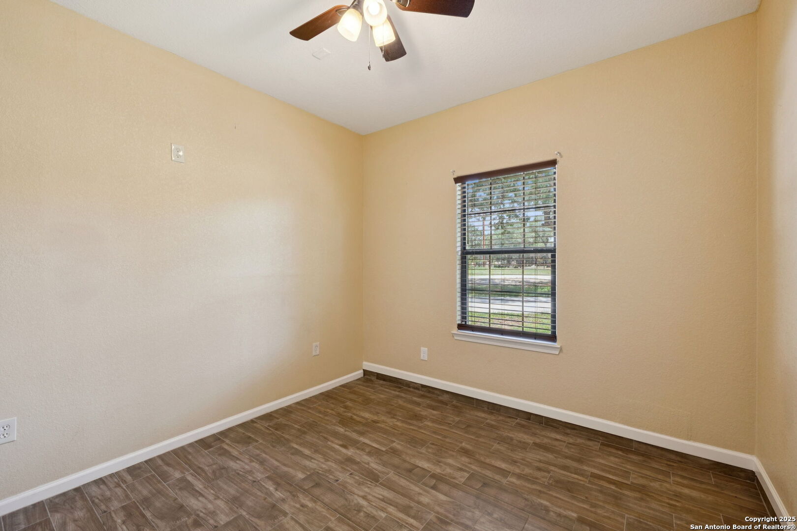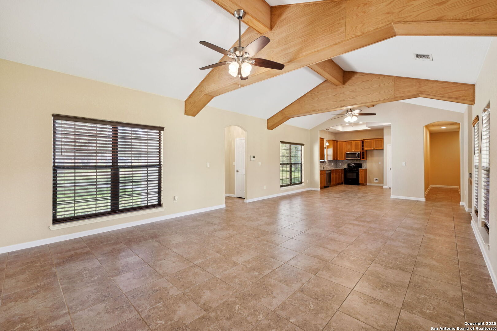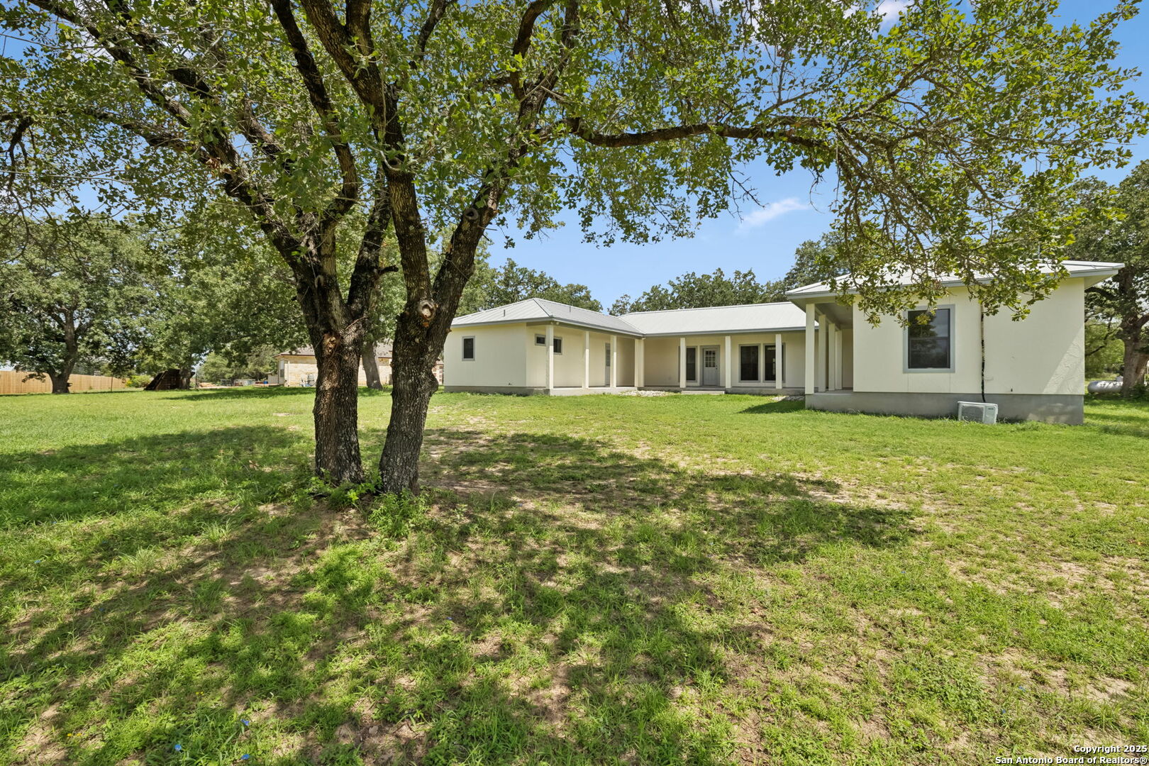 Welcome to this gently lived-in Texas ranch, nestled on 1.5 acres filled with mature trees and serene scenery. This single-story home features 5 bedrooms, 2.5 bathrooms, and offers just under 2,600 square feet of comfortable living space-all with no carpet! Primary bedroom includes a walk in closet with his/hers vanity and privacy access to the back porch. Enjoy high ceilings and an abundance of windows throughout, allowing natural light to flow freely. The open-concept living area includes an upgraded feature of all-natural wood beams, with easy access to the covered back porch-perfect for entertaining or simply relaxing. The kitchen includes a brand new dishwasher and gas stove for the cook enthusiast. A long driveway provides ample parking for family and guests. Conveniently located just 10 minutes from local dining and shopping, you can enjoy country living with city convenience at your disposal.