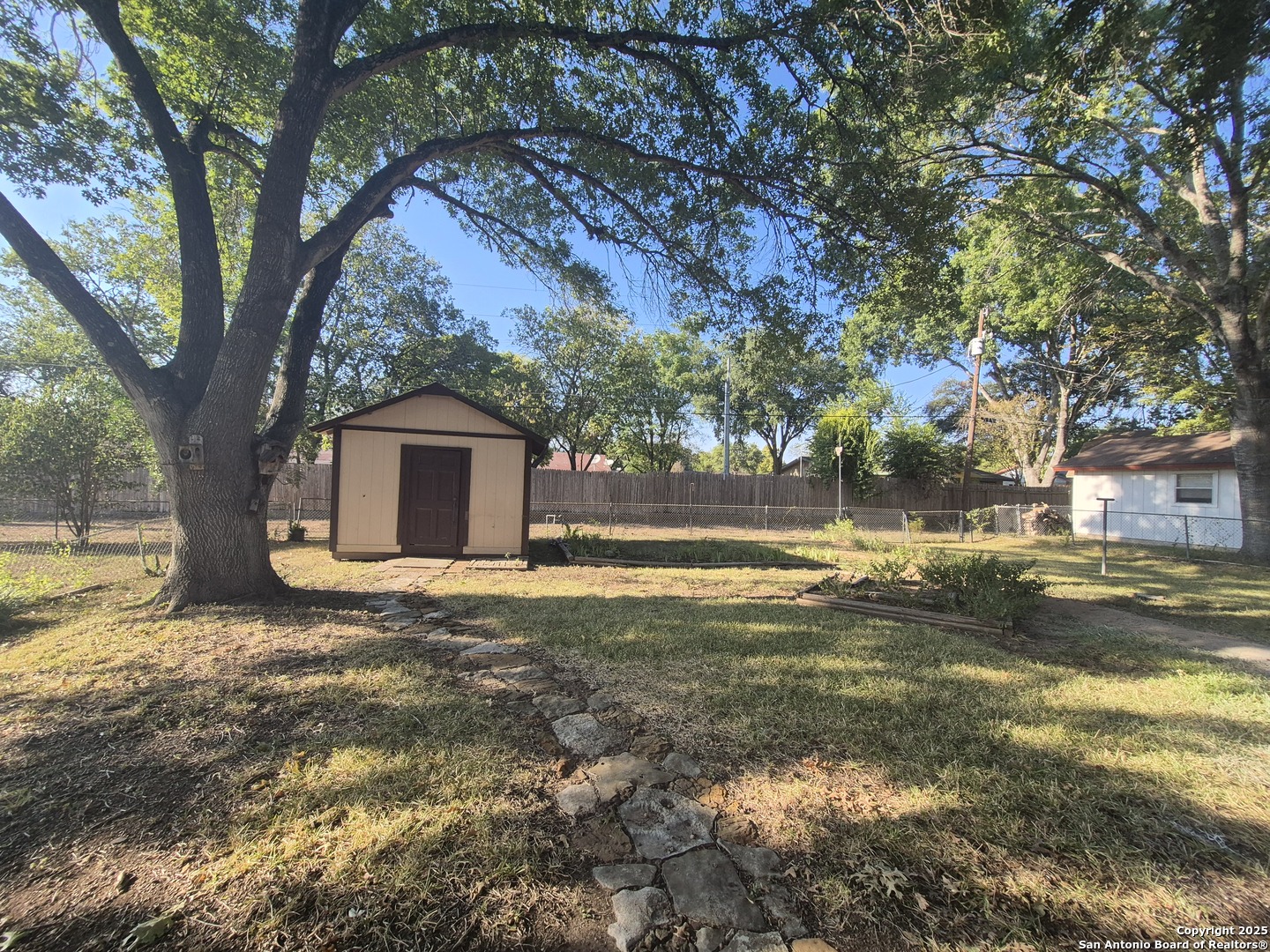 Welcome to 205 Maple Dr, Schertz, TX 78154, a charming single-story home nestled in an established neighborhood. This property offers a convenient washer/dryer connection located in the one-car garage, perfect for managing laundry with ease. The home is just minutes away from Randolph AFB, making it an ideal location for those who value proximity to this key location. The exterior of the home boasts a fenced backyard, complete with a handy shed for additional storage needs. A covered patio provides a perfect spot for outdoor relaxation or entertaining. Experience the comfort and convenience of this lovely home in Schertz, TX. The tenant must enroll in the Resident Benefits Package ($35.00 a month).