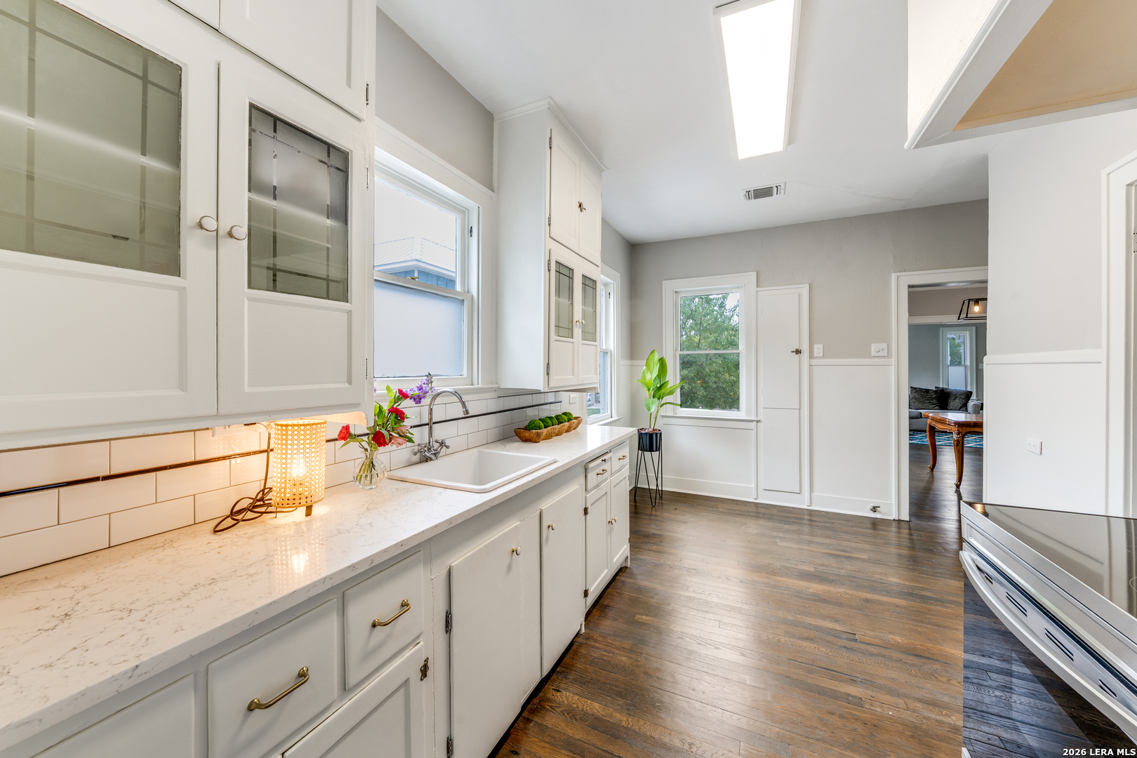 Beautifully restored 1940 bungalow blends timeless charm with thoughtful modern updates. From the moment you step inside, you'll notice the original hardwood floors, intricate wood detailing, and vintage glass doorknobs with ornate keyholes-details that whisper stories of the home's past while complementing its fresh new chapter. No corner has been overlooked. Major systems-including plumbing, electrical, foundation, drywall, and a brand-new central HVAC system installed in 2023-have all been carefully updated, offering peace of mind alongside undeniable character. A convenient washer and dryer hookup has also been added to suit today's lifestyle. Light-filled and inviting, the home carries a warm, effortless elegance -where comfort meets understated sophistication. Ideally located, you're just minutes from the San Antonio Botanical Garden, The Pearl, and the Witte Museum, placing some of the city's most beloved destinations right at your fingertips. This is a rare opportunity to become only the third owner of a lovingly restored piece of San Antonio history-ready to welcome its next chapter.