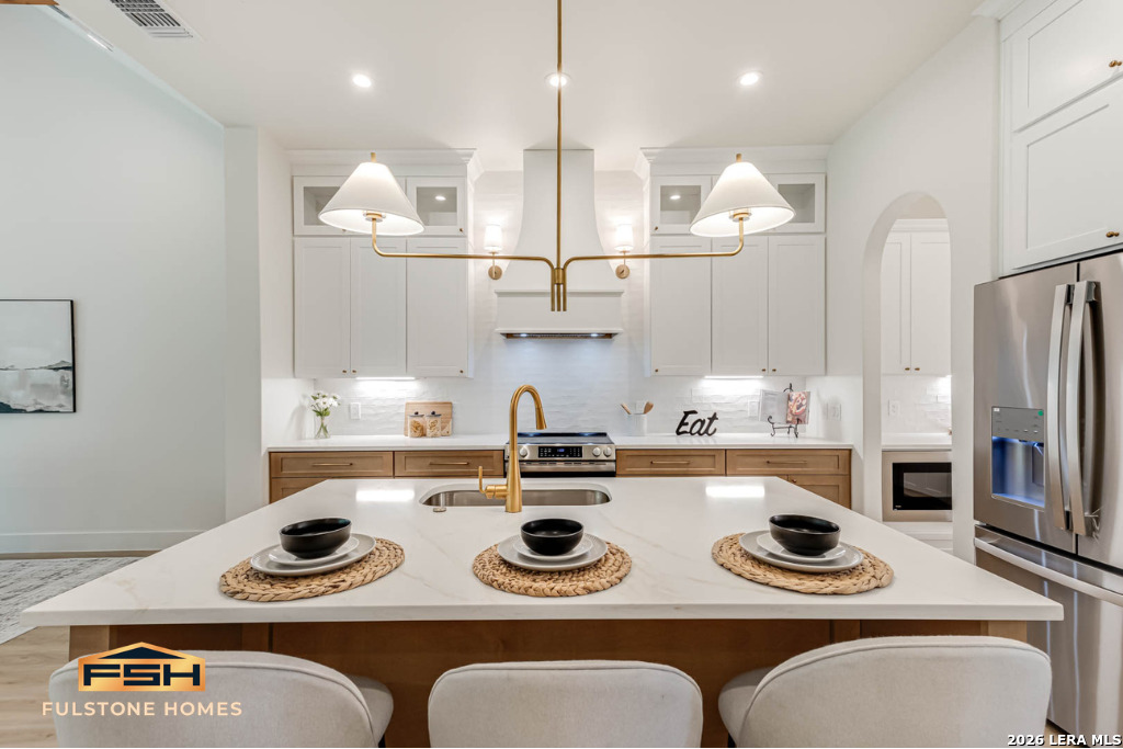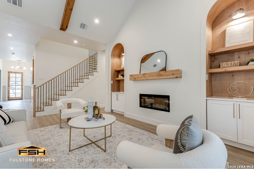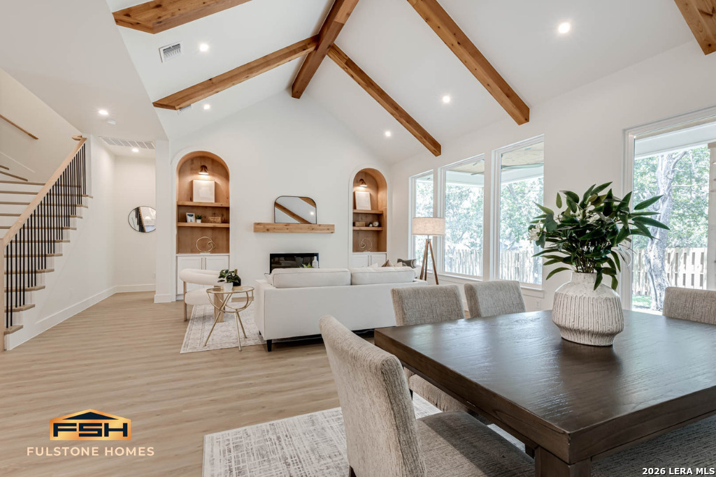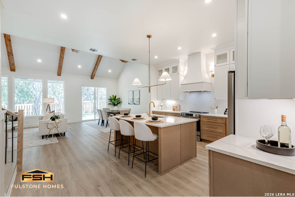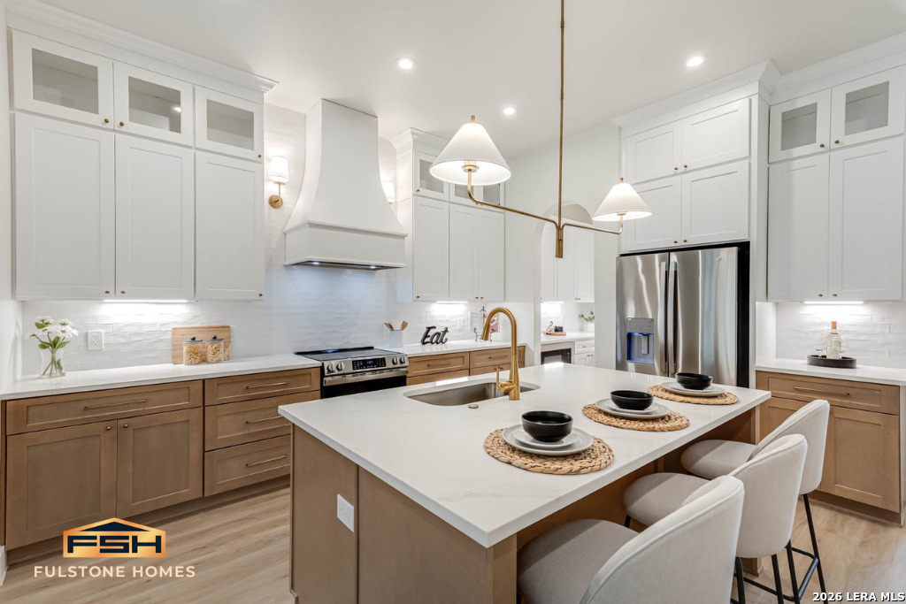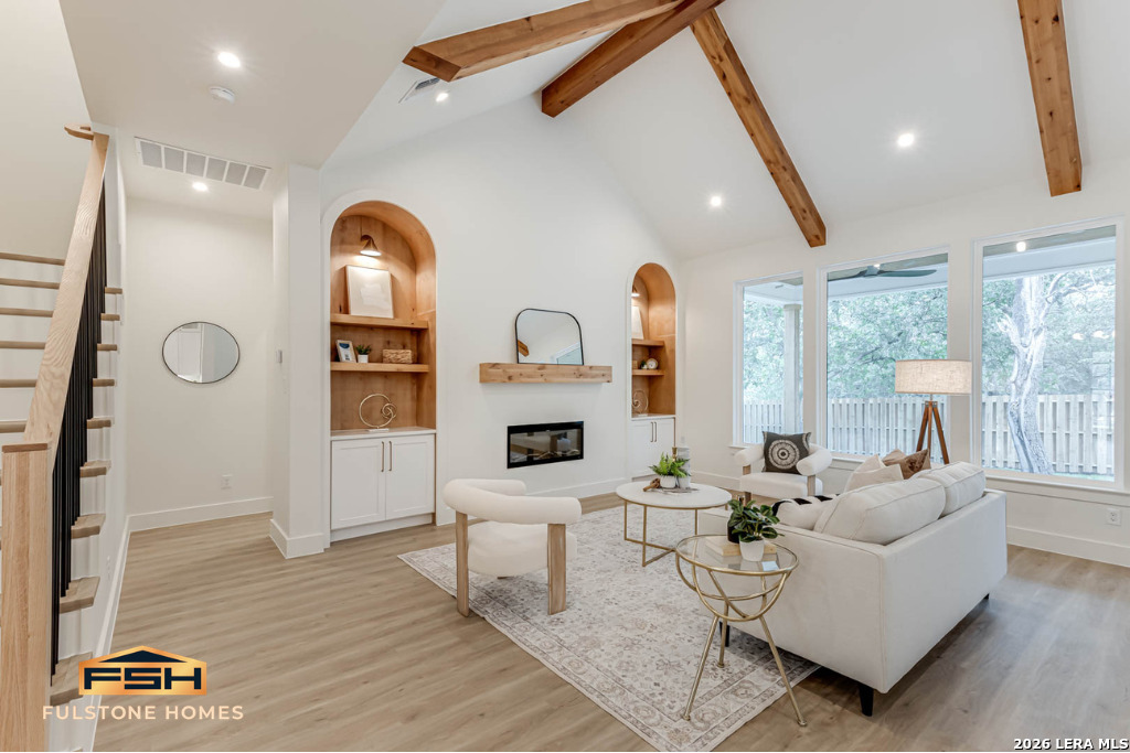Luxurious Hill Country Retreat: Custom 4-Bedroom Home with Premier Amenities Discover your dream home nestled in the serene hill country community of The Crossing, where tranquility meets sophistication. This exquisite 4-bedroom, 2.5-bathroom custom-built residence is set on a sprawling 1.33-acre lot, offering a perfect blend of privacy and community living. Located conveniently between the charming cities of Boerne and Spring Branch, you can enjoy the best that both worlds have to offer. Step into the vaulted living area adorned with elegant wood beams, creating an inviting atmosphere perfect for family gatherings or entertaining guests. The open dining space seamlessly connects to a designer kitchen that will impress any culinary enthusiast. Featuring two-tone custom cabinetry, upgraded quartz countertops, a large island, and a stunning custom hood, this kitchen is both functional and stylish. A butler's pantry with an arched entry adds an extra touch of elegance and convenience. This home caters to both work and relaxation with an office space framed by double iron French doors, providing a quiet retreat for productivity. The primary suite is thoughtfully located downstairs, offering a peaceful sanctuary with its dual-sink vanity, freestanding tub, large glass shower, and oversized built-in closet. Secondary bedrooms are strategically separated and equipped with walk-in closets to ensure ample storage and privacy. Outdoor living is equally impressive with an oversized covered patio featuring stained T&G ceilings and dual fans, ideal for enjoying Texas evenings in style. The meticulously landscaped yard boasts mature shade trees that provide natural beauty and comfort. The Crossing community enhances your lifestyle with a full amenity center that includes tennis courts, a park, a playground, and access to the breathtaking Guadalupe River. Whether you seek adventure or relaxation, this neighborhood offers it all. Embrace the opportunity to own this picturesque hill country retreat where luxury meets nature's beauty.