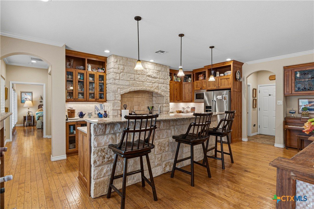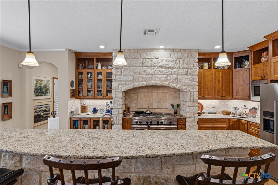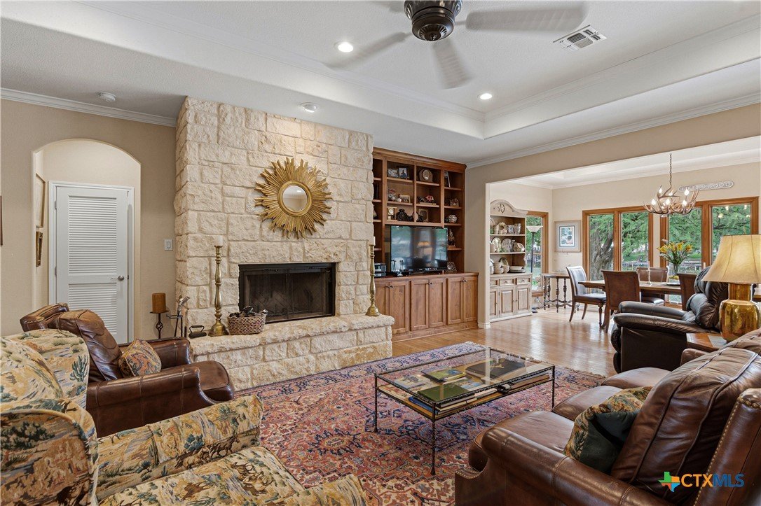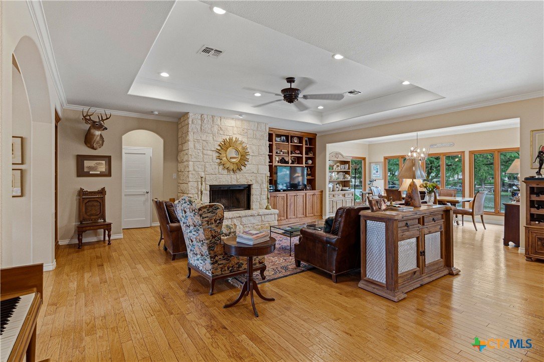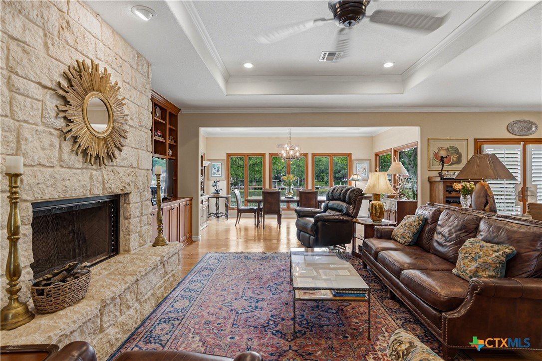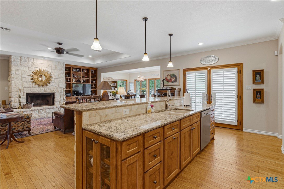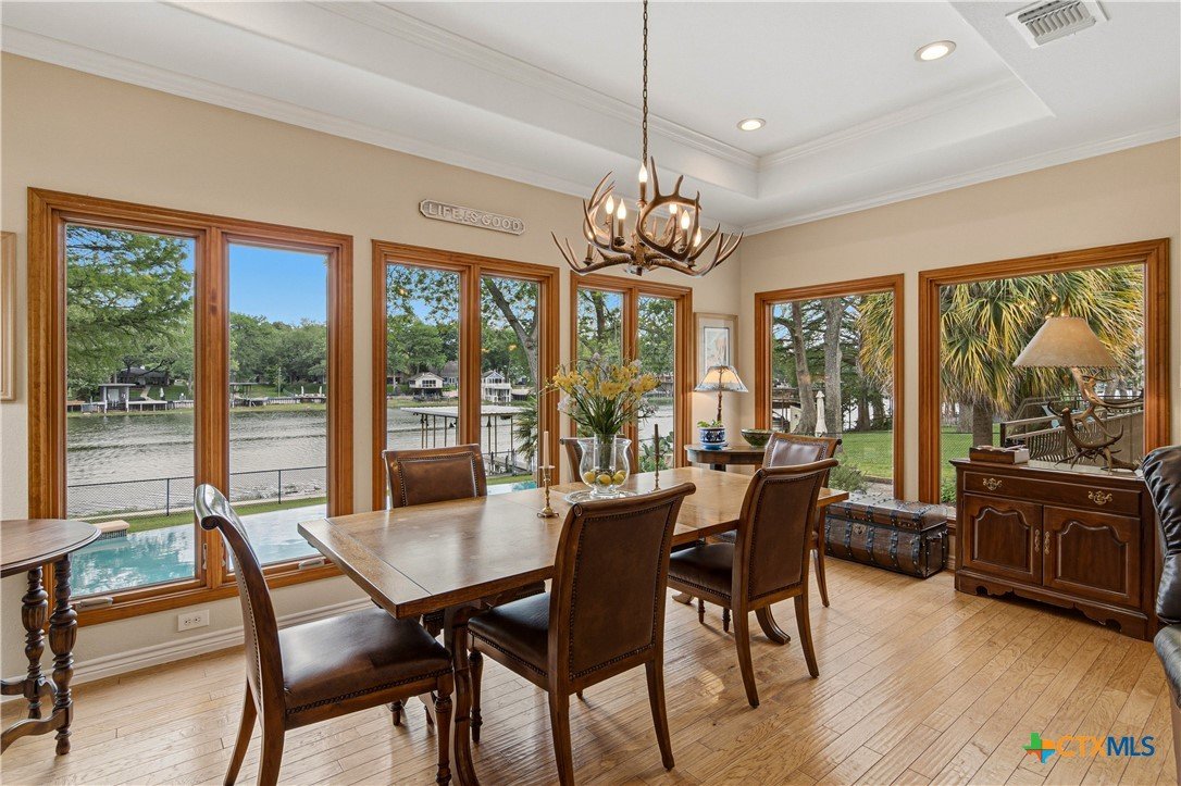 As we welcome back Lake McQueeney to all its glory, come take a peek at this amazing property which offers a gated entrance to its peaceful 4bd 4bath home. This property sits on 0.69 acres with 100 ft of WATERFRONT. Living room, large dining room and bedrooms with amazing windows to soak up the lake views from, a rock fireplace, and gourmet Island Kitchen, all creating an inviting atmosphere. Master suite to include an amazing custom en-suite bath with walk in shower. Plenty of room for family in the three additional well-appointed bedrooms. Exercise nook, private hunting/storage room in the garage. Stone patio to sit and relax on, gorgeous Infinity pool and hot tub. Sundeck with electric lift Boathouse, Dock. Whether you're seeking a weekend escape, a family retreat, or a full-time residence, this property is the perfect retreat.