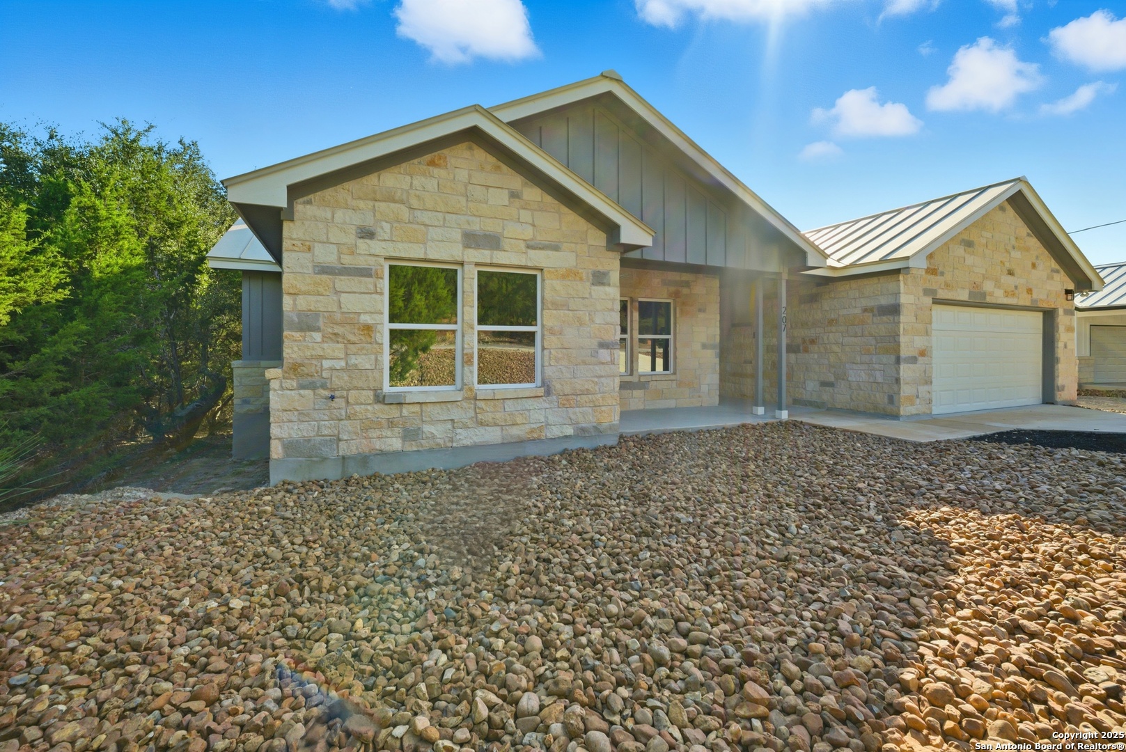 Welcome home to this thoughtfully crafted new construction nestled in the heart of the Hill Country, where modern comfort meets peaceful surroundings. Set on nearly an acre, this home welcomes you with a timeless brick exterior, metal roof, and warm, inviting curb appeal. Inside, over 2,400 square feet of light-filled space offers four bedrooms and four full baths, complemented by wood-look tile throughout and a cozy wood-burning fireplace that anchors the living area. The kitchen is designed for both everyday living and entertaining, featuring a generous walk-in pantry and seamless flow to the main living spaces. Retreat to the primary suite and unwind in a spa-inspired bath with dual vanities, a spacious walk-in closet, a tiled walk-in shower with glass doors, and a freestanding soaking tub perfectly positioned to take in Hill Country views. Step outside to the expansive back deck overlooking mature oak trees and enjoy the quiet beauty of the land, with a two-car garage adding everyday convenience. This home offers more than just a place to live-it offers a lifestyle. The home next door, 221 Deer Oaks, is also available for sale.