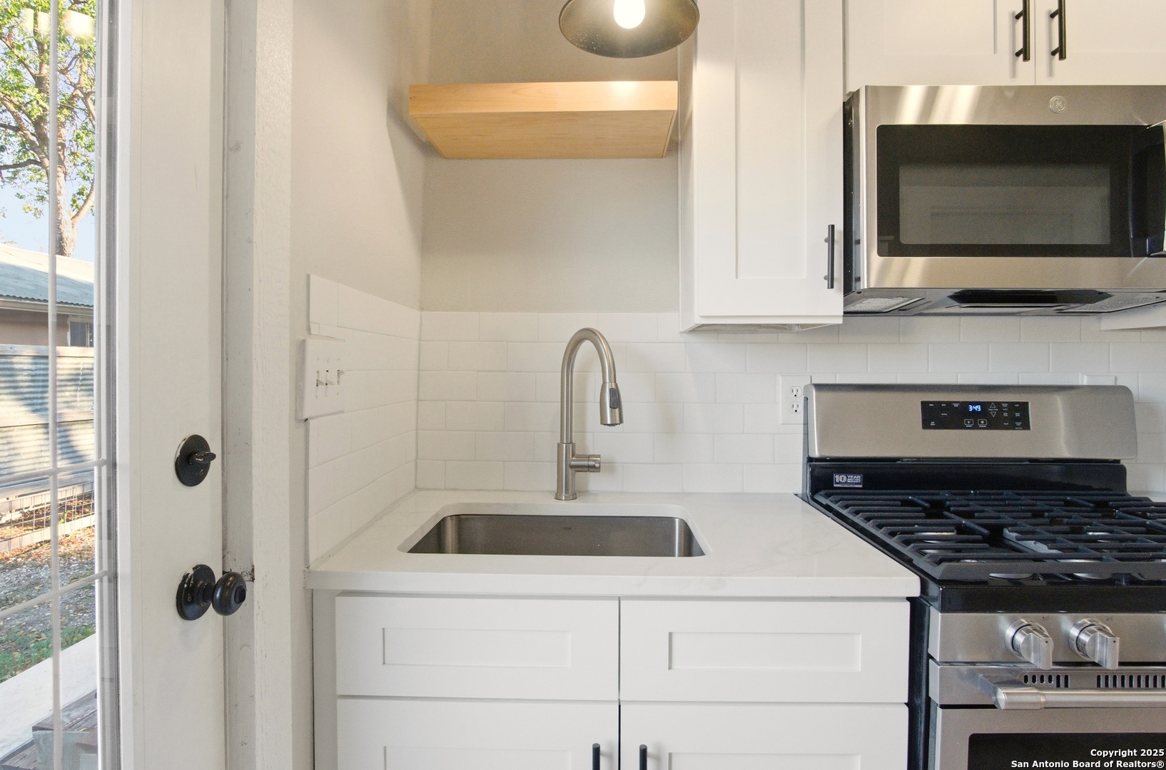Cozy apartment enhanced with modern updates. The kitchen and bathroom have been fully renovated, featuring shaker-style cabinetry, quartz countertops (kitchen), and stainless steel appliances. Ceramic and laminate flooring run throughout the entire space. You don't want to miss this cute apartment conveniently located near downtown and just minutes from San Antonio College!!