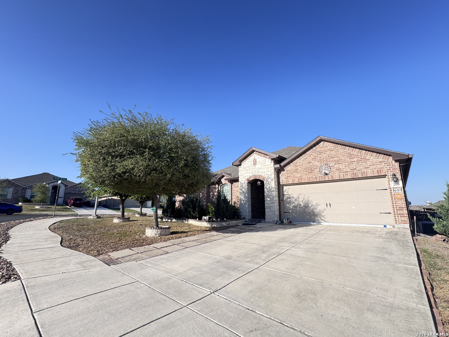 Welcome to Saratoga, this desirable community is in the heart of Cibolo, TX. This home features an Elegant Open floor Plan, a well designed layout, generous living spaces ideal for both everyday comfort and entertaining. Has added timers and auto switches at hallway wall switches. The 5th bedroom is also a flex room w/double doors. The exterior showcases classic brick veneer and local tan limestone, providing timeless curb appeal with low maintenance durability. Situated on a Premium Oversized Corner Lot, the home offers a HUGE backyard for relaxing, gardening, unicorn farm :), vineyard, pool, or future yard enhancements. A solid property with great location close to schools that rate 9-10, much shopping, and major commuter routes. Recently Enhanced/Widened FM1103. Come see, bring the family. Professional photos forthcoming.