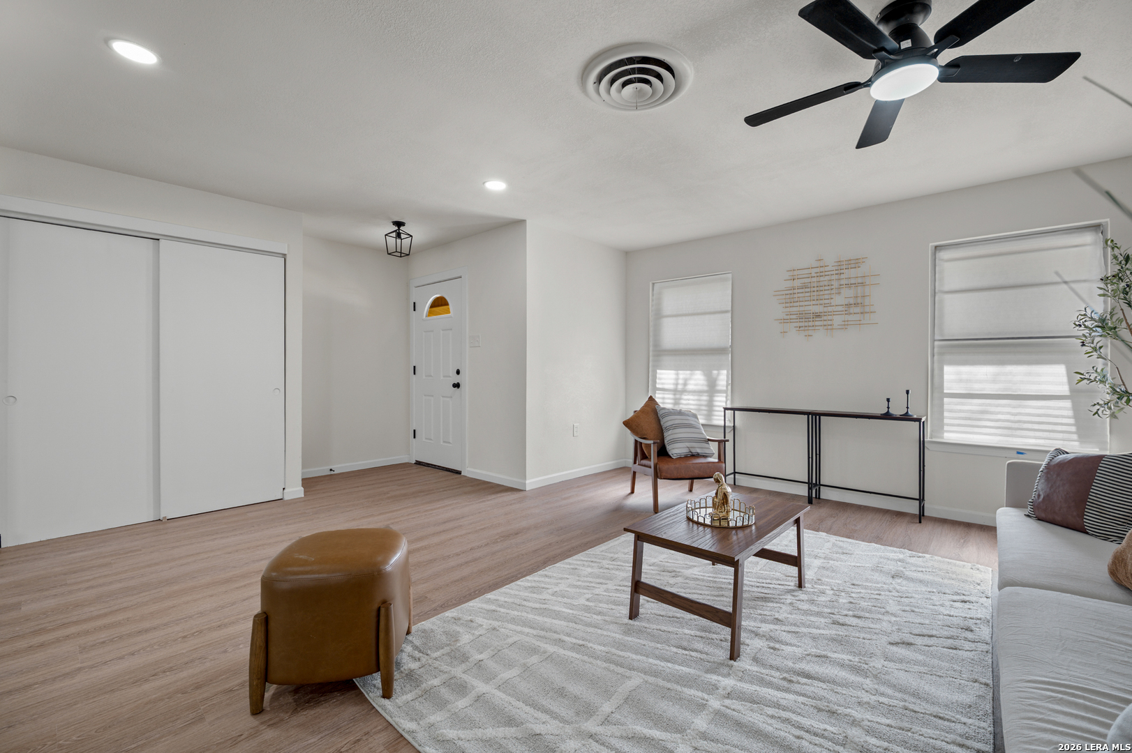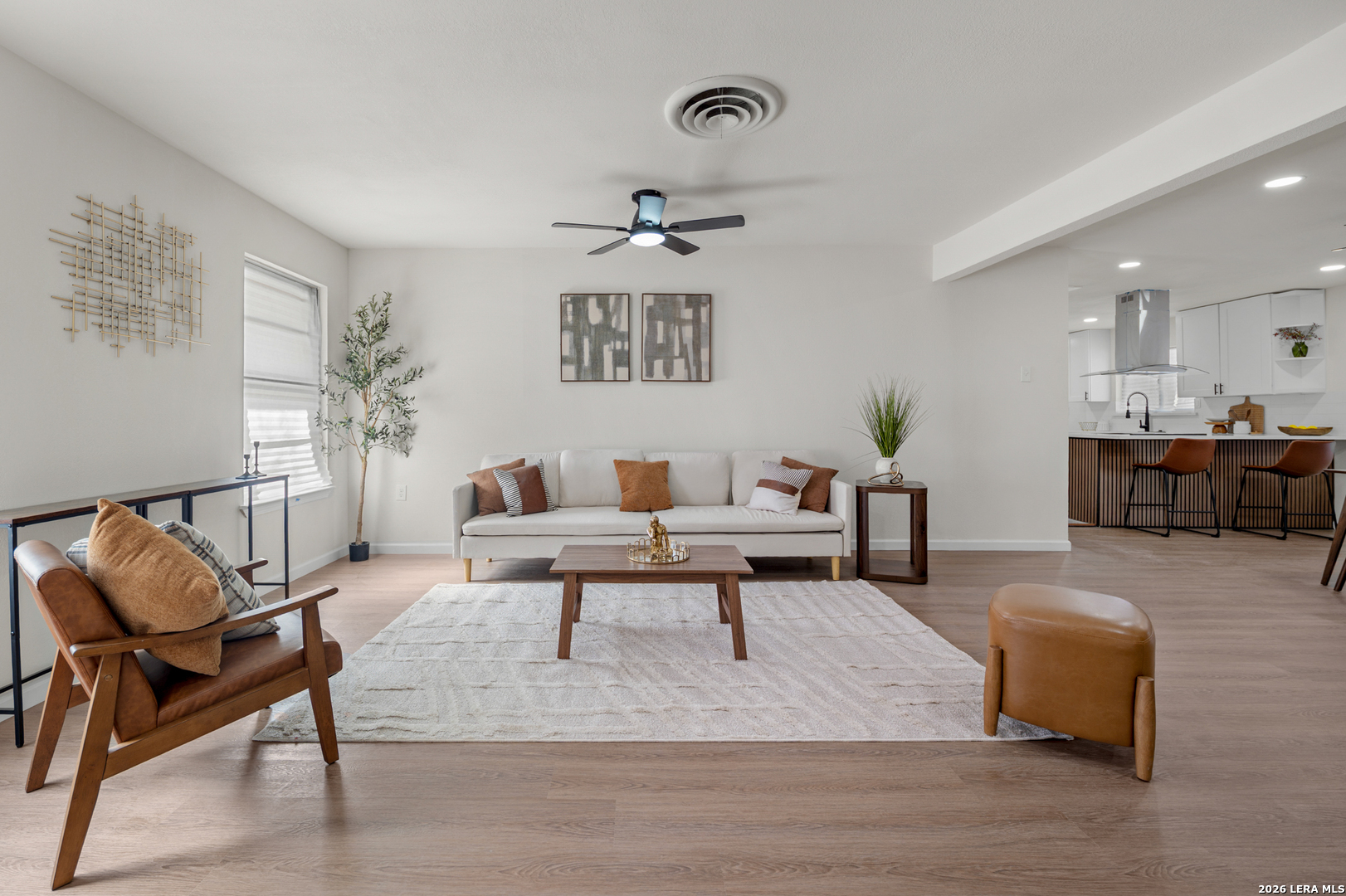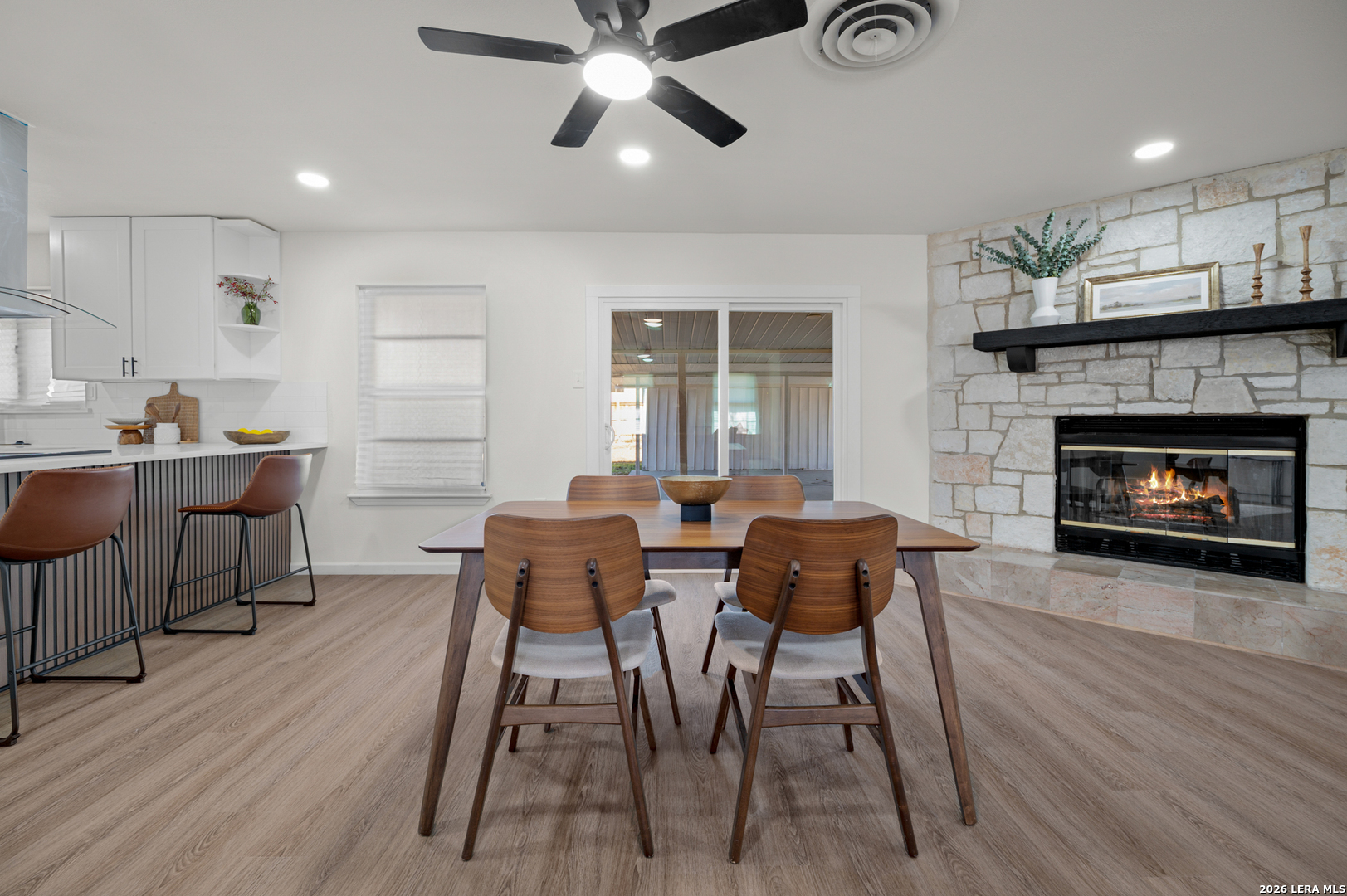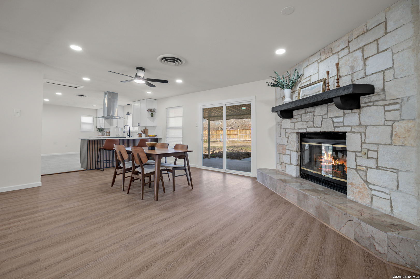 OPEN HOUSE 02/01/2026 from 11:00 AM to 3:00 PM .Welcome to this updated 3-bedroom, 2 bath home offering a bright, open interior and comfortable living spaces. The spacious living area is filled with natural light and features a fireplace that adds warmth and character to the home.The kitchen has been refreshed with contemporary cabinetry, quartz countertops, and ample counter space, making it both functional and inviting. The primary bedroom includes a nicely updated private bath with modern finishes, providing a relaxing place to unwind. Enjoy outdoor living under the covered patio perfect for quiet evenings or entertaining guests. Located in the City of Windcrest, this home is conveniently close to parks, shopping, dining, major roadways, and nearby military bases. With its thoughtful updates and attractive pricing, this property is an excellent opportunity.