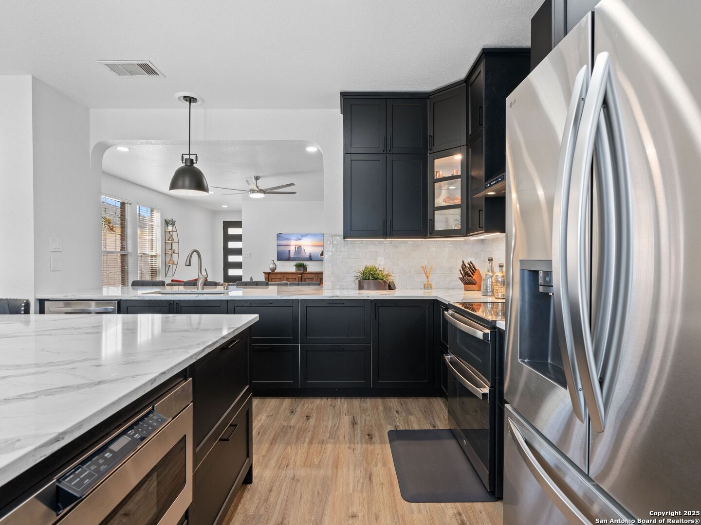 Exquisite Fully Remodeled Home in Fox Grove - Move-In Ready Luxury at an Affordable Price! Step through a striking 8-foot modern front door and into a home that exudes elegance and contemporary style. This beautifully remodeled one-story home has been completely transformed in 2024 with high-end finishes and thoughtful upgrades, blending modern design with everyday comfort. Originally renovated with long-term enjoyment in mind, changing life plans have created an incredible opportunity for the next owner to make this stunning home their own. At the heart of the home is a breathtaking chef's kitchen, featuring all-new slow-close cabinetry with interior lighting, an expansive 10' x 4' island with built in dining space, sleek quartz countertops, and top-tier appliances, including a Sharp drawer microwave and a double-oven range. The open-concept design seamlessly connects the kitchen to the living area, where a newly added breakfast bar enhances both functionality and style. Luxury vinyl plank flooring extends throughout the entire home, eliminating carpet while adding durability and elegance. A spacious fourth bedroom/home office offers endless possibilities, whether for remote work, a guest room, or a creative space. The updated primary suite is a true retreat, complete with a generously sized walk-in closet and a beautifully refreshed en-suite bath. Upgrades go beyond aesthetics--this home is built for both beauty and function with a new roof, new hot water heater, new water softener system, updated electrical panel, and more. Every detail has been carefully considered, from designer lighting and contemporary fixtures to fresh paint and enhanced storage solutions. Step outside to a private backyard oasis, perfect for relaxing or entertaining. Located in a prime location, this home offers easy access to top-rated schools, shopping, dining, and major highways, making daily life both convenient and enjoyable. With its impeccable updates and modern features, this move-in-ready home presents an extraordinary opportunity in Fox Grove.