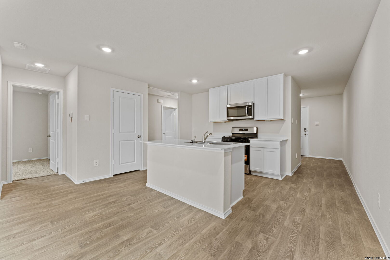 Check out the Emma, one of our one-story floorplans available at Bollinger in Maxwell, Texas. This new home offers 4 bedrooms, 2 bathrooms and a 2-car garage within 1,572 square feet of living space. As you enter the home from the front porch, you'll cross the foyer to the open concept living area. The kitchen faces out to the dining room and family room, allowing for conversations to flow easily across the space as you make dinner and unwind from your day. The kitchen features an island with a stainless-steel sink, quartz countertops, 42" upper 'picture frame' cabinets, a pantry closet, and stainless-steel appliances. Two secondary bedrooms are located off the kitchen as well as the secondary bathroom. The utility room is in this part of the home and connects to the garage, creating an optional mud room. The other secondary bedroom is located off the dining room and all bedrooms include carpet and closets with wood shelving. The secondary bathroom features a shower/tub combination and a cultured marble vanity with trench sink. The primary bedroom is at the back of the home and includes an attached bathroom. This private ensuite is sure to become your oasis at the end of the day. Enjoy the walk-in shower, cultured marble vanity with trench sink and a large walk-in closet. This home features our America's Smart Home base package, which includes the Video Front Doorbell, Front Door Deadbolt Lock, Home Hub, Thermostat, and Deako Smart Switches. *Seller is willing to assist with closing costs or a rate buy-down through preferred lender with an acceptable offer.**