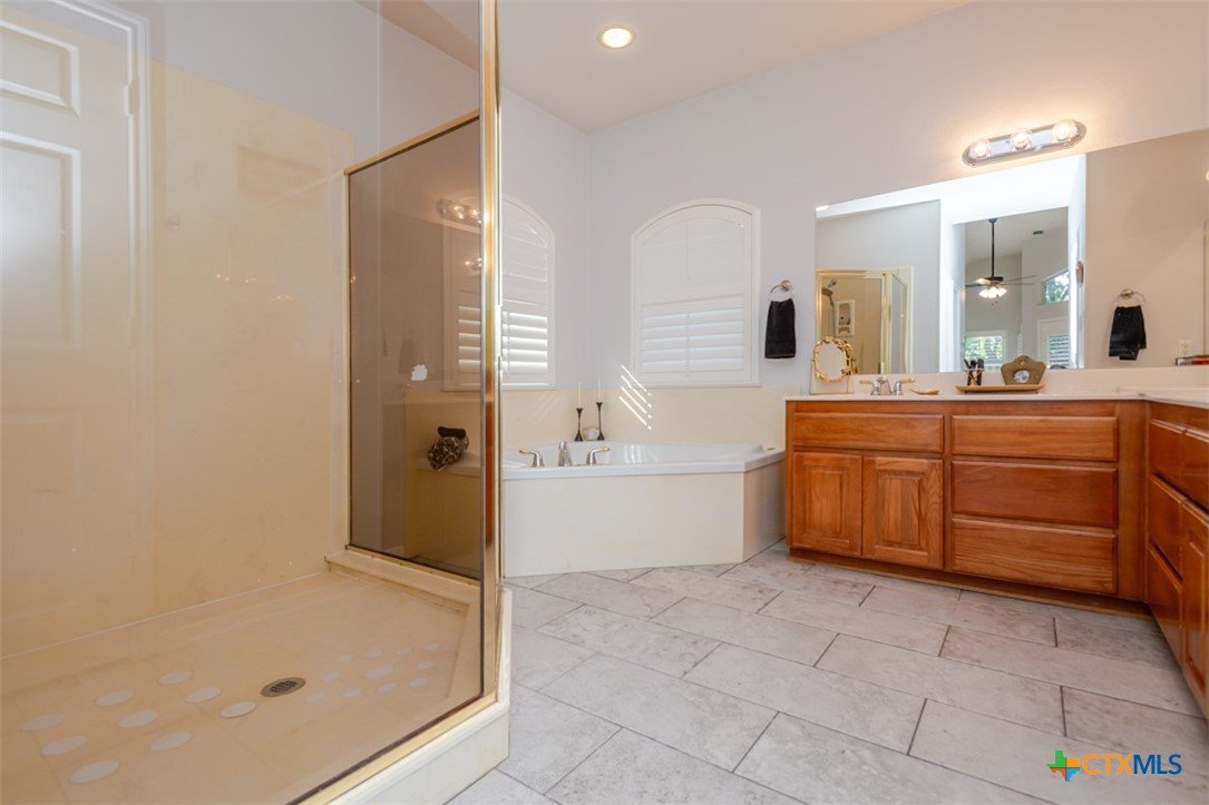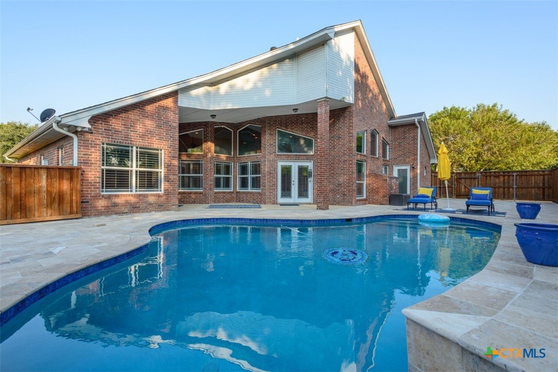 This stunning home offers a perfect blend of elegance, comfort, and outdoor living! Situated on a desirable corner lot over half an acre, the backyard oasis features a sparkling pool with a waterfall (added in 2023), an 8-foot privacy fence, and beautifully designed landscaping — perfect for relaxing or entertaining. Inside, you’ll find plantation shutters throughout, 16-foot ceilings, recessed lighting, and clerestory windows that fill the home with natural light while maintaining privacy. The upgraded kitchen features stainless steel appliances, granite countertops, and open to the cozy family room with a fireplace. A formal living room and dining room provide additional space for gatherings. The spacious primary suite offers private pool access, a walk-in shower, and a jetted tub. Ideally located near shopping, dining, and beautiful parks — this home truly has it all!