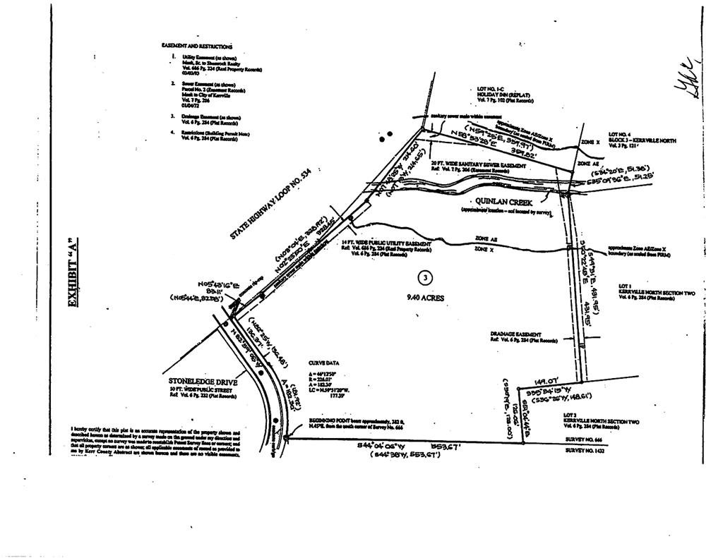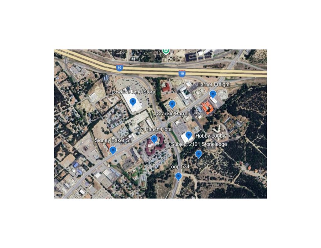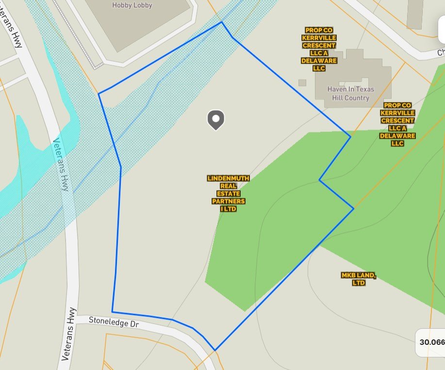 Introducing an exceptional commercial real estate opportunity encompassing 9.4 acres of prime land zoned Mixed Use (MU). This commercial tract, fronting both Loop 534 and Stoneledge Drive at the base of The Summit, offers great potential for developers and investors. Directly behind Hobby Lobby, this property boasts a strategic position with high visibility and accessibility. Location Advantages : The property's location ensures it is well-situated for a variety of commercial and residential projects. Its proximity to major retailers and thoroughfares adds considerable value, making it a highly attractive proposition for discerning developers and investors. Key Features - Zoning: Mixed-Use (MU), allowing for a diverse range of development possibilities. Access to city utilities. Ideal for multi-family, townhouses, retail, and numerous other potential uses. The city previously approved a plan for a 58-unit townhome development. Adorned with beautiful mature oak and pecan trees throughout the entire tract. Topo: mostly flat with the elevated northeast portion of the land providing exceptional views of Kerrville. Bordered by Quinlan Creek. Seller is LREB.