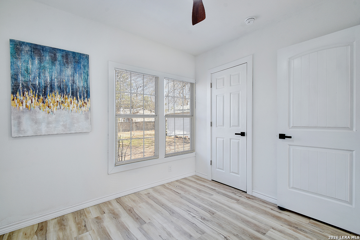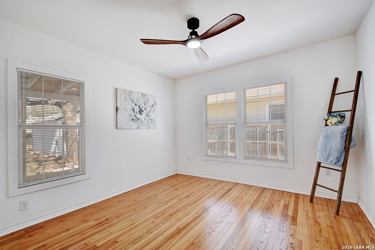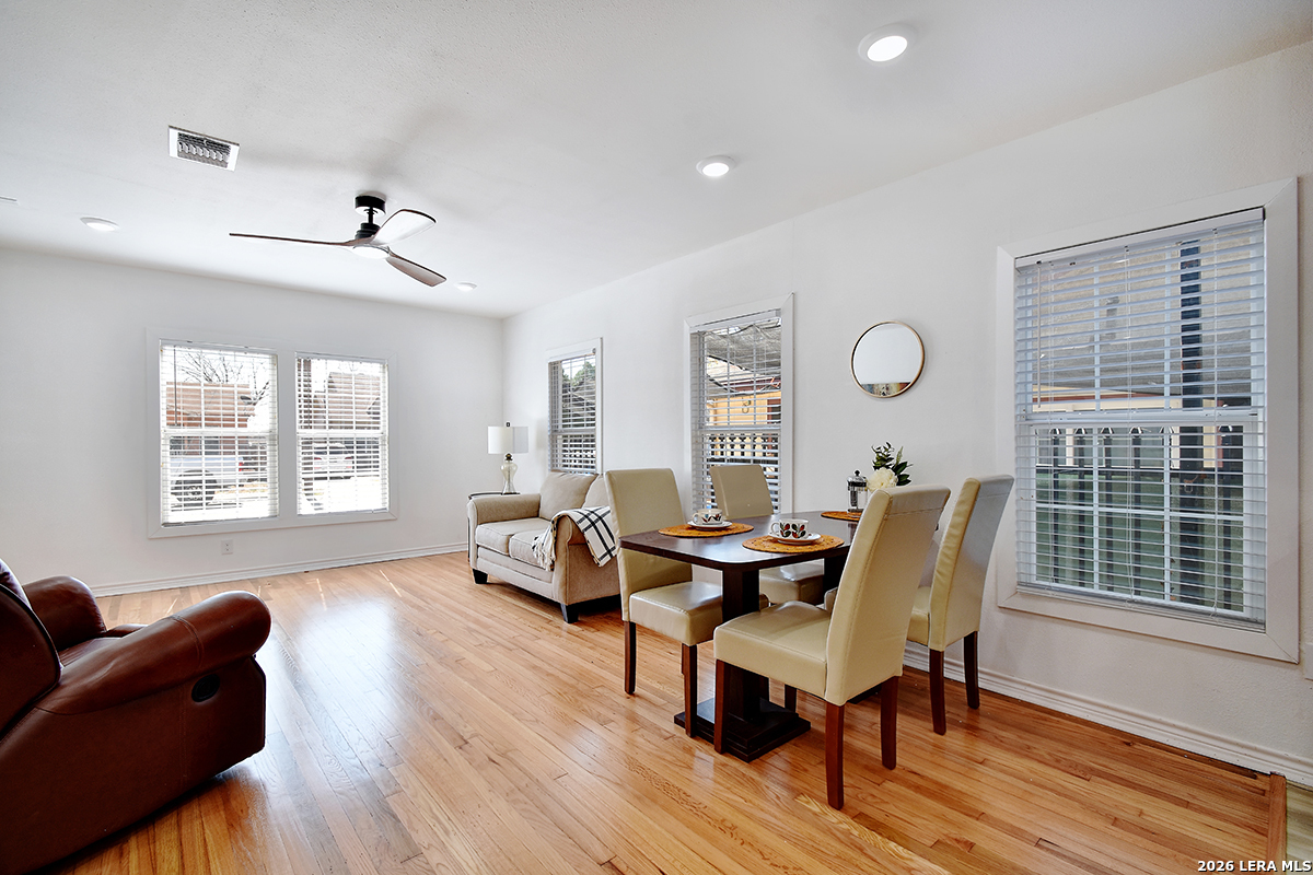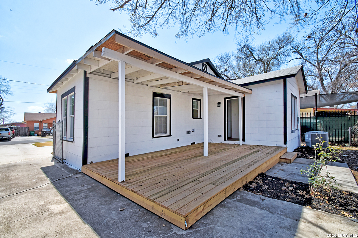 Closing cost assistance!!! 3 Bedrooms | 1 Bath | 1,073 Sq Ft | No HOA This beautifully updated 3-bedroom, 1-bath home in the heart of Los Angeles Heights blends timeless character with modern comfort. From the moment you arrive, the brand-new front deck with natural wood posts creates a warm, inviting entrance - the perfect place for morning coffee or evening relaxation. The bold front door adds just the right touch of personality and charm. Inside, refurbished original hardwood floors are beautifully blended with new flooring, preserving vintage character while delivering a clean, refreshed feel. Large, newer windows flood the home with natural light, creating an airy, welcoming atmosphere throughout. The completely renovated kitchen is designed for both everyday living and entertaining, featuring granite countertops, custom soft-close cabinetry, modern hardware, and seamless flow into the dining and living areas. Adjustable flush lighting lets you set the ambiance from cozy to bright and vibrant. The updated bathroom offers dual sinks and matching soft-close cabinetry for both style and functionality. A nearly new HVAC system and central air and heat provide year-round comfort. Step outside and discover one of this home's standout features - a newly built backyard deck that expands your living space outdoors. Ideal for entertaining, grilling, hosting gatherings, or simply enjoying the shade from the mature tree canopy, this backyard setup is ready for Texas evenings. The fully fenced yard offers privacy and flexibility, while the deep-set one-car garage in the rear provides secure parking, workshop space, or additional storage. Located just three blocks from a local grocery store and minutes from Woodlawn Lake, the Deco District, downtown San Antonio, The Pearl, and major highways including I-10, I-35, and Loop 410, this home offers unbeatable central convenience. Close to bus routes, shopping, dining, and locally owned businesses, everything you need is within reach. Whether you're a first-time buyer looking for affordability and charm, or an investor seeking a strong addition to your portfolio in a high-demand central location, this property delivers on location, versatility, and value.