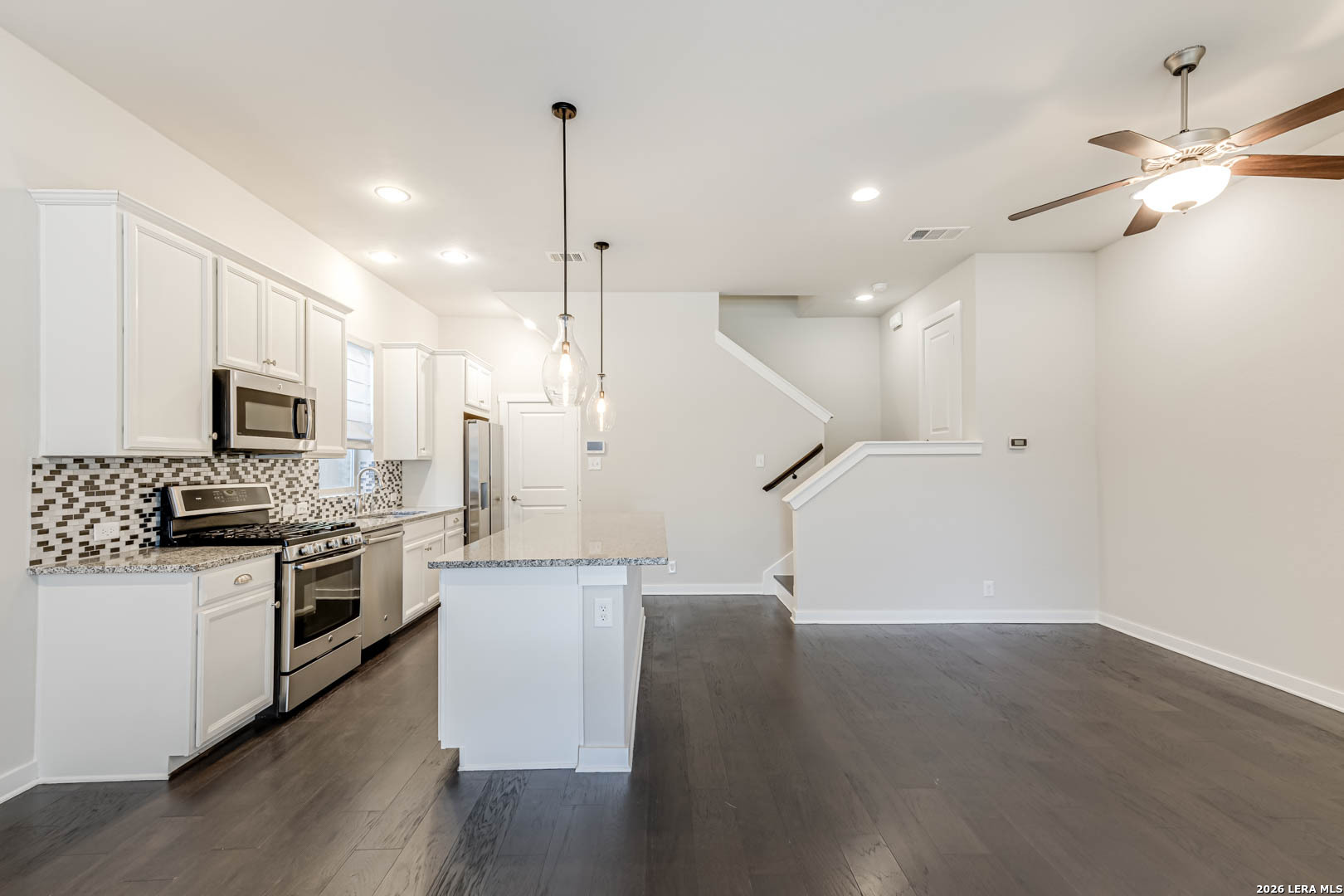 Beautiful near downtown home has a spacious open floor plan with high ceilings and attached 2 car garage. Chefs kitchen boasts stainless appliances, large pantry and granite counters opening into the living room for entertaining. 1/2 bath on the main level for guests. Primary bedroom has luxury bathroom and a huge walk-in closet. laundry on 2nd floor near bedrooms. 3rd floor family room could be used as a 4th bedroom. HOA maintains the yard for "lock and leave" living. Schedule your tour today!!