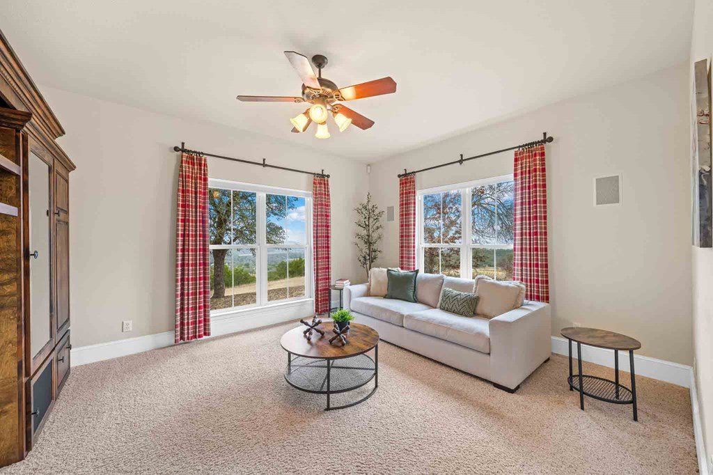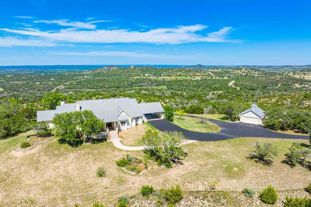 Unparalleled 360 panoramic view of the stunning Hill Country—Twin Mountain Ranch is an 84.84 +/- acre property located south of Comfort, Texas. This ranch is rare, complete with a paved asphalt driveway leading to a custom-built home, detached garage, and barn. The land is a breathtaking mix of rolling hills, pastureland, and mature hardwoods, with elevations ranging from 1,580'+/- to 1,800' +/-, allowing for some of the most captivating views in the region.