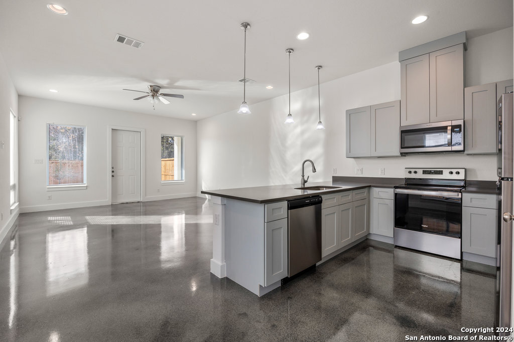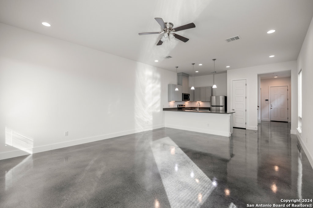 Discover the perfect blend of modern comfort San Antonio charm in this stunning established duplex. The open-concept living area and kitchen feature sleek stainless steel appliances and soaring high ceilings, ideal for entertaining. Durable, stylish stained concrete flooring downstairs ensures maintenance-free living-perfect for a busy lifestyle. Upstairs, you'll find three spacious bedrooms and two full baths, including a serene master suite with a luxurious, large tiled walk-in shower. Step outside to your private covered patio for seamless indoor-outdoor living. Located just minutes from downtown San Antonio, you'll have easy access to the vibrant River Walk, the Alamodome, the Frost Bank Center, and endless dining and shopping options. This is modern urban living at its finest-schedule your viewing today! **All Tenants will be enrolled in our Resident Benefit Package ($25/month + $5/month for each additional Tenant). This amount is charged in addition to the rent each month.**