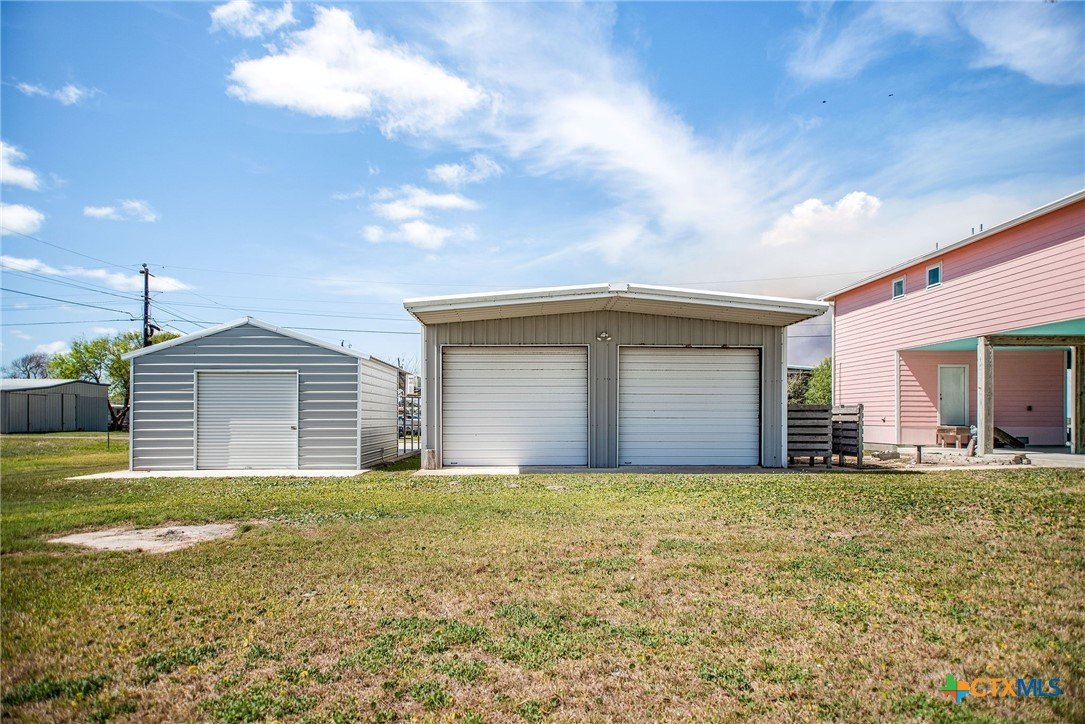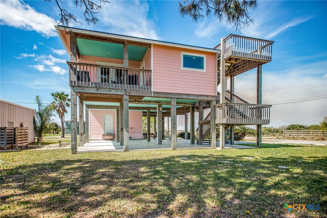 Hooked on Views + Space to Spare! This 3BR/2BA coastal retreat on TWO lots with views of Matagorda Bay and Boggy Bayou! Elevated main home features open living and a spacious covered deck to enjoy coastal breezes. Downstairs offers two separate guest spaces—perfect for visitors or rental potential. Property includes a two-bay boat barn, carport with storage, outdoor shower, and plenty of room for boats and trailers. Ideal for full-time living, weekend getaways, or income-producing investment in the heart of Port O’Connor—just minutes from some of the best fishing on the Texas coast.