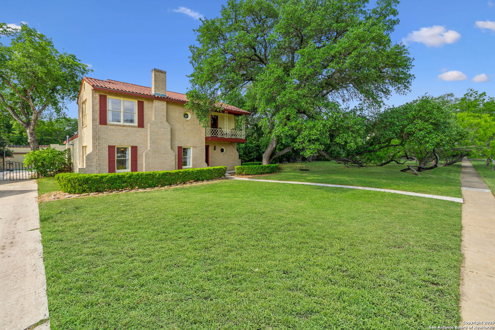 BACK ON THE MARKET, with fresh exterior and interior paint, new bathroom countertops and newly sanded and stained hardwoods throughout!! In historic Monticello Park is where you'll find this stately brick +/- 3164 square foot, 3 bedroom, 2 1/2 bath family home. Sitting on a close to a third of an acre and full of old-world elegance, this two-story house balances gracious entertaining spaces with updated, comfortable living spaces. Original oak hardwood flooring grounds most of the home, and the large formal living room is well-lit, features an impressive, wood burning fireplace and leads seamlessly into the dining room with coved ceilings. An updated and efficient kitchen features stainless steel appliances and gas cooking with a charming breakfast room adjacent. The noteworthy Pecky Cypress-paneled family room that overlooks the patio and in-ground pool allows for additional living and dining space. A half bath just off the entry, an indoor laundry room and office/bonus space complete the home's first story. Upstairs, you'll find three ample-sized and open bedrooms and two full baths with original tiling and accents that complement the home's character. A balcony off the front of the house overlooks the well-manicured front lawn and offers a birds-eye view of the neighborhood around you. Out back, there's a turf-grass-lined and awning-covered patio perfect for relaxing and outdoor grilling alongside the home's sparkling swimming pool with shade. There's also a two-car garage and air-conditioned storage room. double paned windows, partially updated electrical, newer HVACs and more complete the list of recent upgrades. This home - just a block from Woodlawn Lake - offers you the very best in San Antonio inner city living, coupling historic charm with modern fixtures, finishes and features. Come see it today.