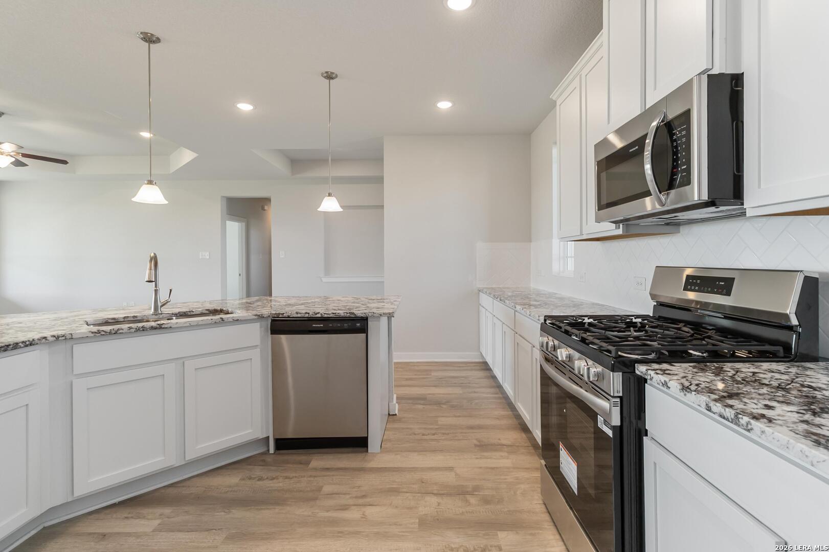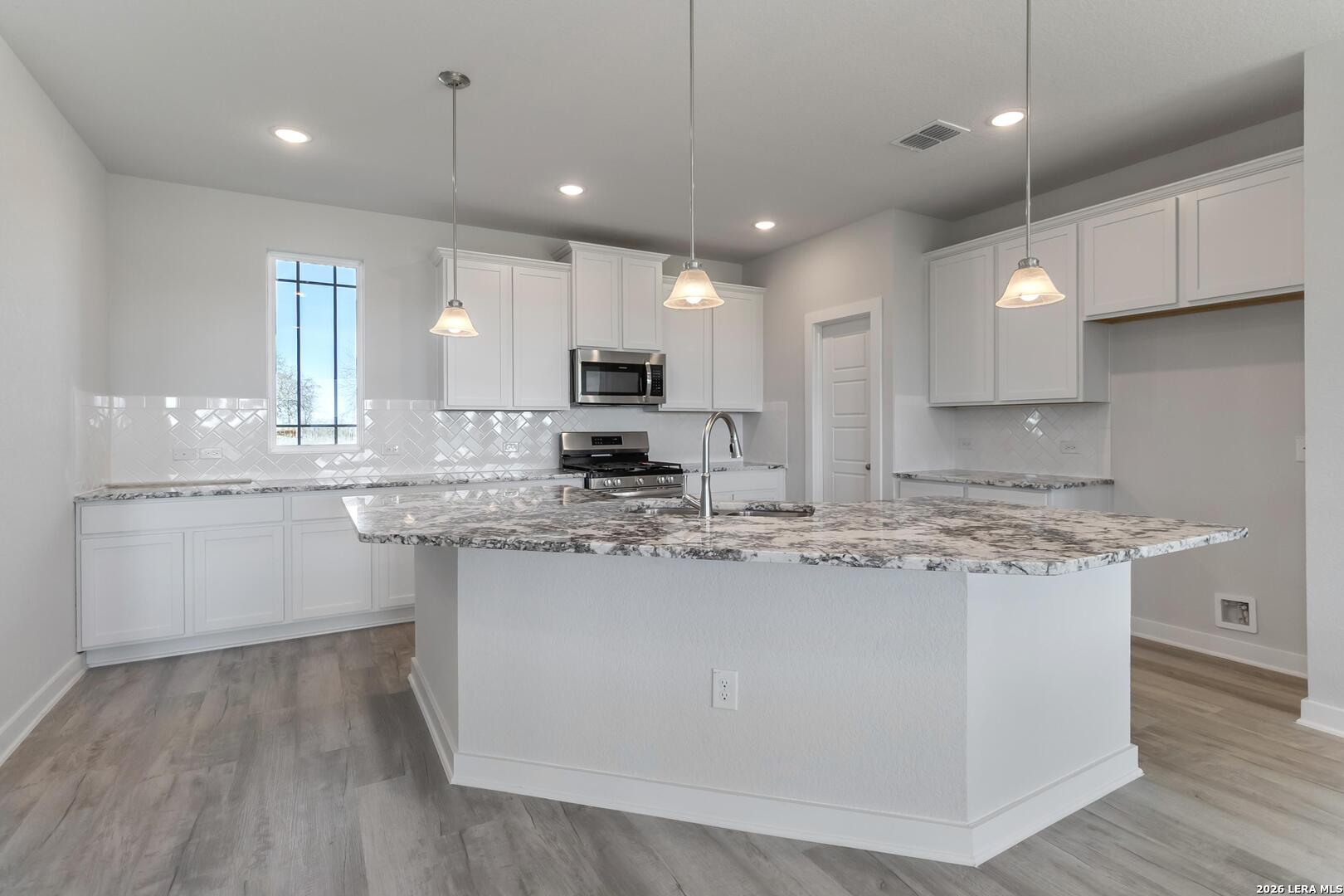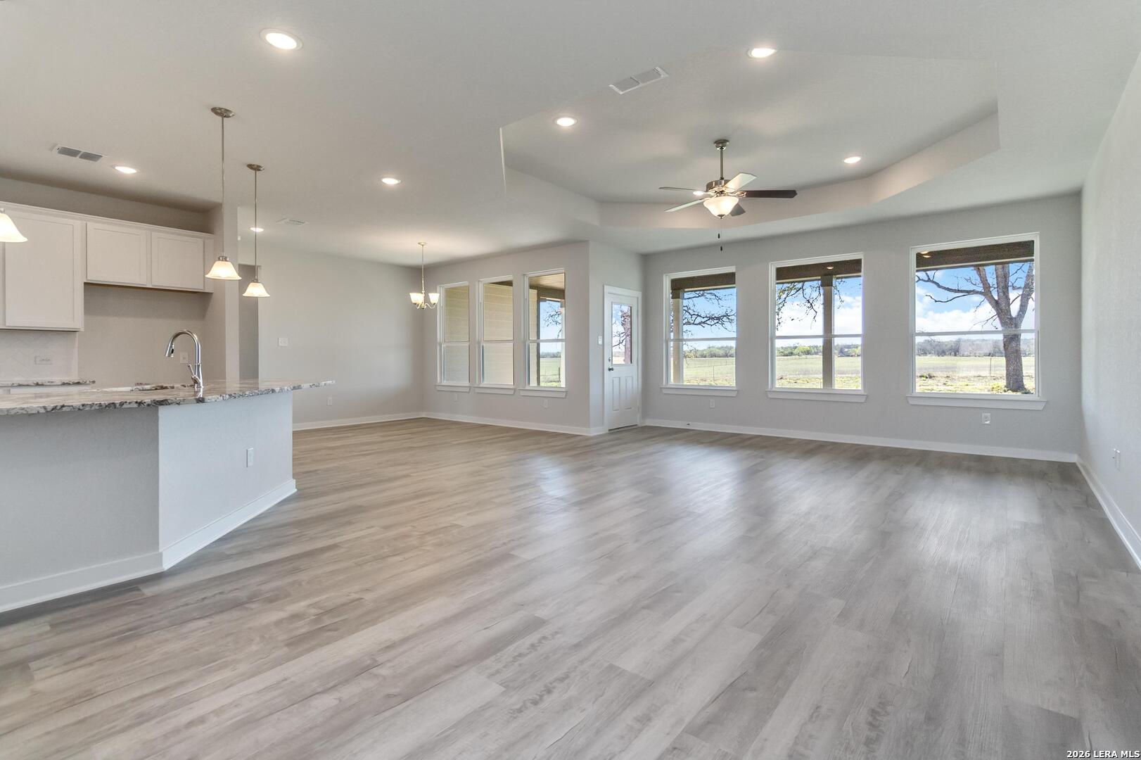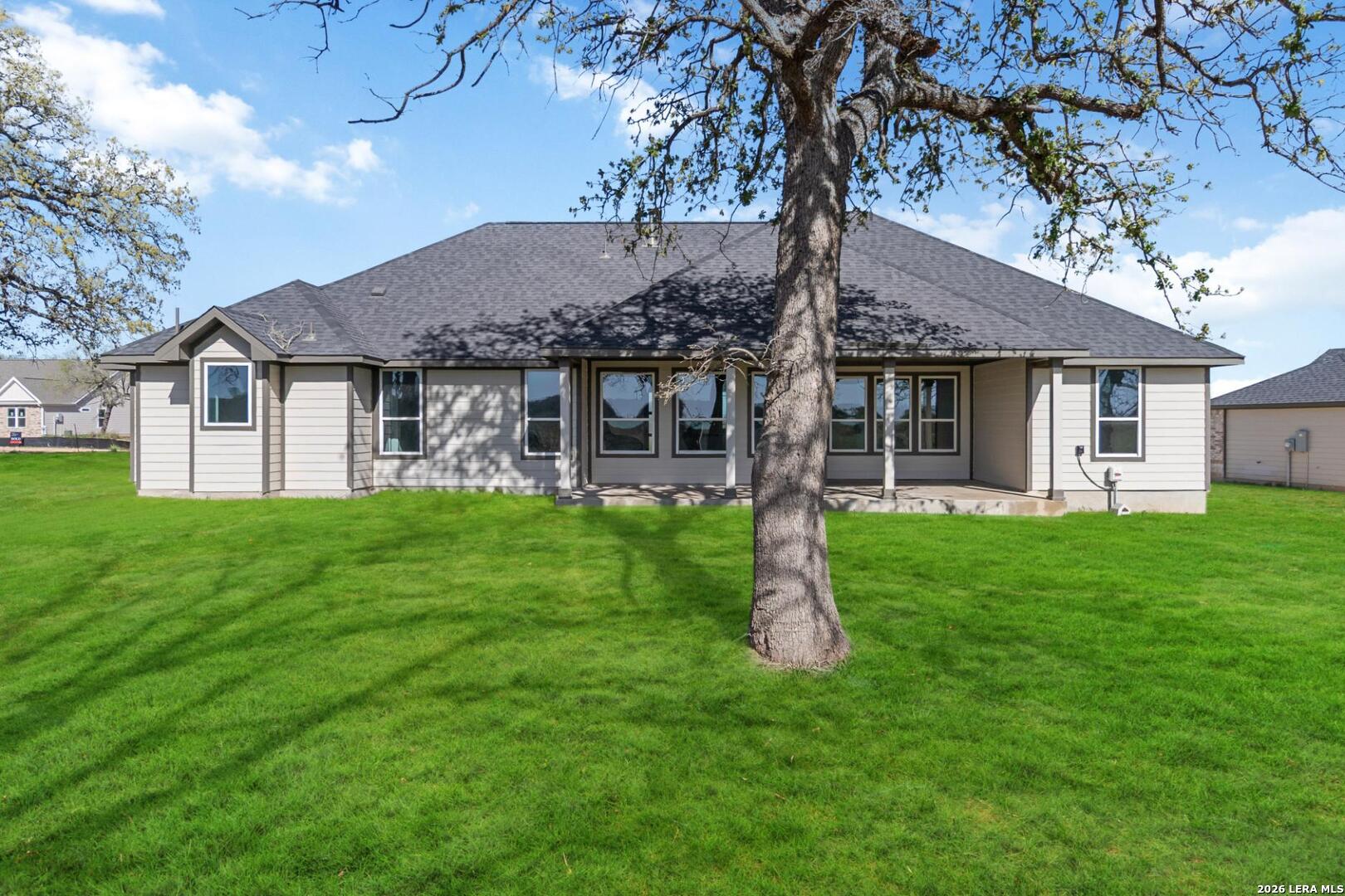 Smart style meets timeless elegance in this stunning single-story, three-bedroom, two-bath home on 1/2 an acre! The private secluded primary suite with an oversized freestanding tub whispers the opulence you deserve after the hustle of a long day. Adjacent to the primary is a private gym, whiskey room, or a secondary retreat. The family and dining rooms are anchored by a larger-than-life island, stunning kitchen, tall windows, and a custom tray ceiling. The secondary wing of the home has two oversized rooms separated by a large bathroom ensuring privacy for all guests. The luxe lifestyle extends into the oversized patio that extends the living area for those hill country evenings!