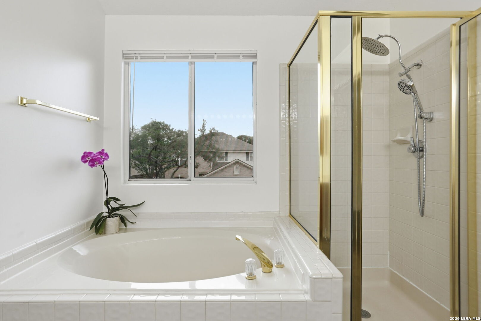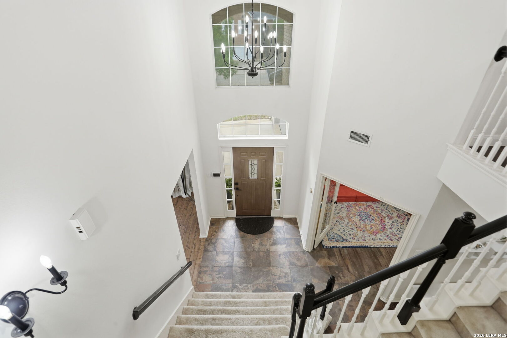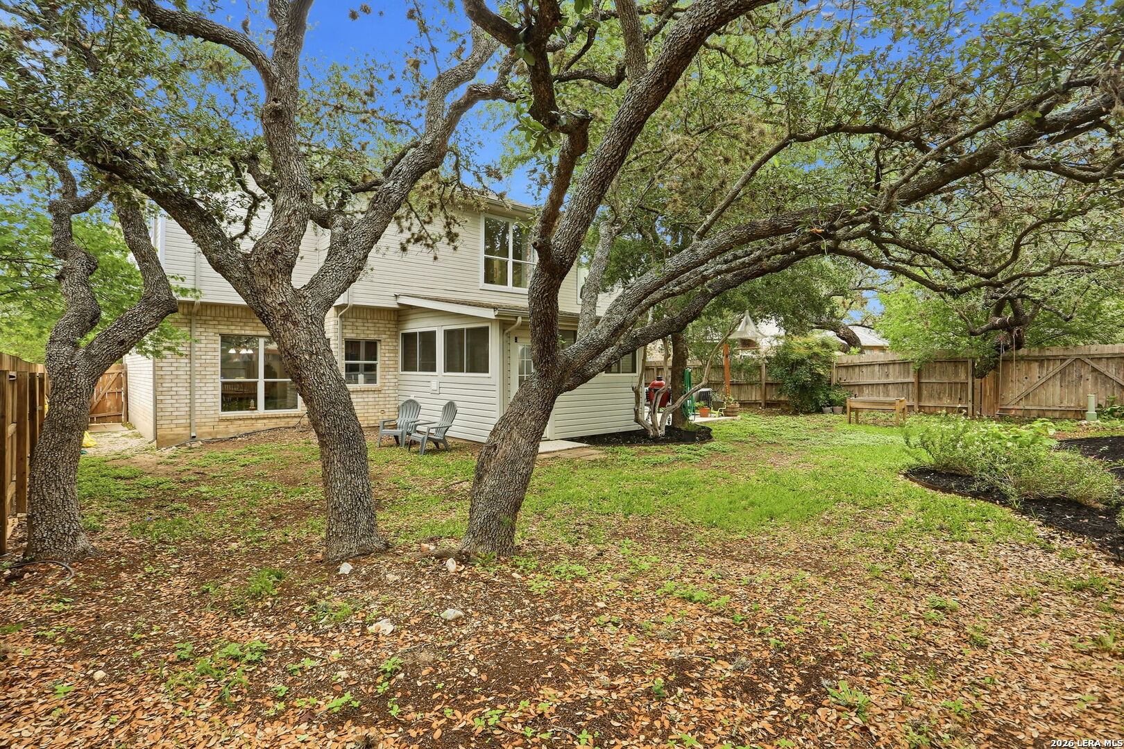 Spacious two-story home on a corner lot in desirable Encino Forest in North Central San Antonio, offering flexible living, extensive upgrades, and strong location benefits. The main level includes a dedicated office with French doors, formal and casual living spaces, a large dining area with custom dry bar and built in shelving, and a family room with fireplace and prewired media setup. The kitchen includes an island, updated soft close drawers, Rev A Shelf pullout, abundant cabinetry, and adjacent breakfast area. A sunroom adds valuable enclosed flex space and offers options for a second sitting area, reading room, hobby space, workout area, or additional living space, while improving connection to the backyard and outdoor living areas. The generous primary suite includes a large arched window, updated air return for improved comfort, and spacious bath layout. Upstairs includes secondary bedrooms, updated Mohawk laminate flooring. The fourth bedroom includes a bonus space that can be used for a craft area, sitting room, or flex space. Extensive interior improvements include recessed LED lighting, updated switches, upgraded outlets, ceiling fans, new door hardware, crown molding, chair rail detailing, and updated guest bath tile flooring. Major system improvements include upgraded attic insulation to R 38, HVAC enhancements including duct improvements, custom plenum, UV light, condenser hard start kit, drain float switch, and duct cleaning. Plumbing improvements include pressure reducing valve, expansion tank, and repaired kitchen sewer drain beneath foundation with the remainder of a transferable two-year warranty. Google Fiber available. Water softener system rebuilt. Outdoor features include a 15 x 13 concrete patio, mature trees, fenced backyard, and usable yard space. Exterior improvements include James Hardie Cedarmill siding, Simonton 5500 dual pane Low E windows, updated trim, and exterior paint improvements. Convenient access to Highway 281 and Loop 1604 supports efficient commuting to major employment centers, shopping, dining, medical services, and everyday conveniences. Nearby amenities include H E B, Stone Oak retail and restaurant destinations, and Methodist Stone Oak Hospital. Regional access to Joint Base San Antonio locations adds broader connectivity. Includes 3D walkthrough and floor plan.