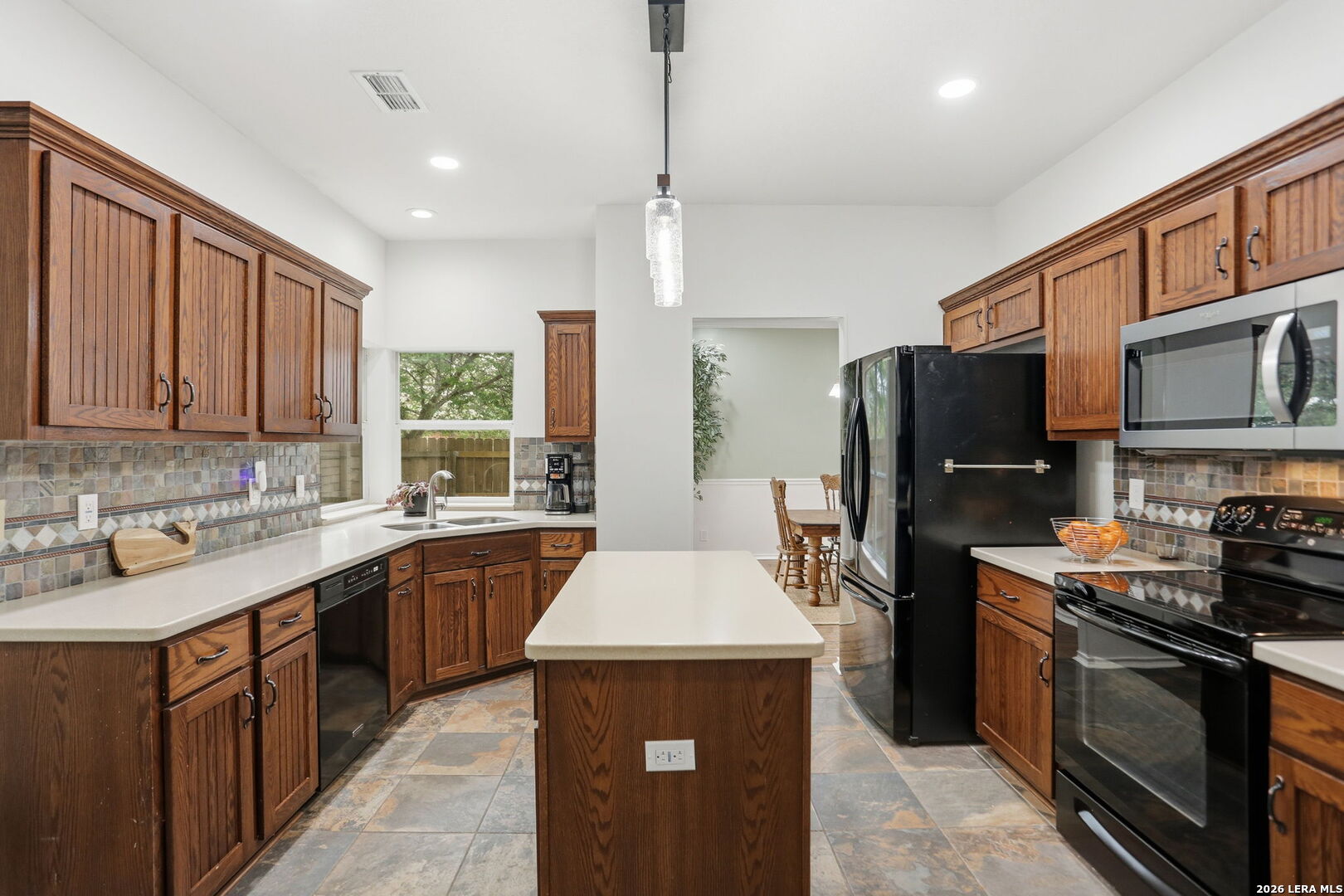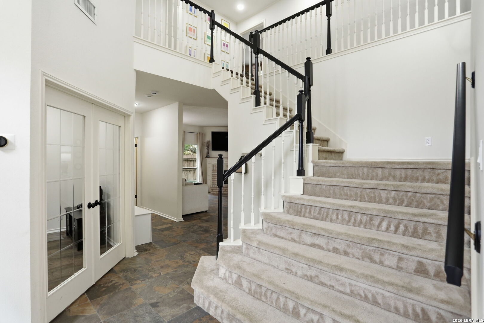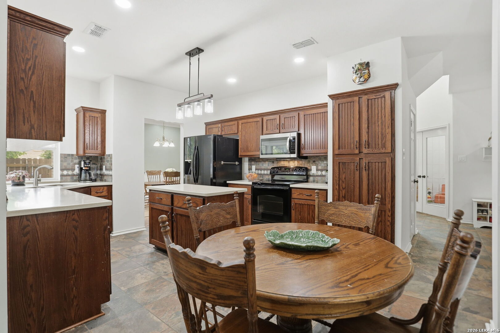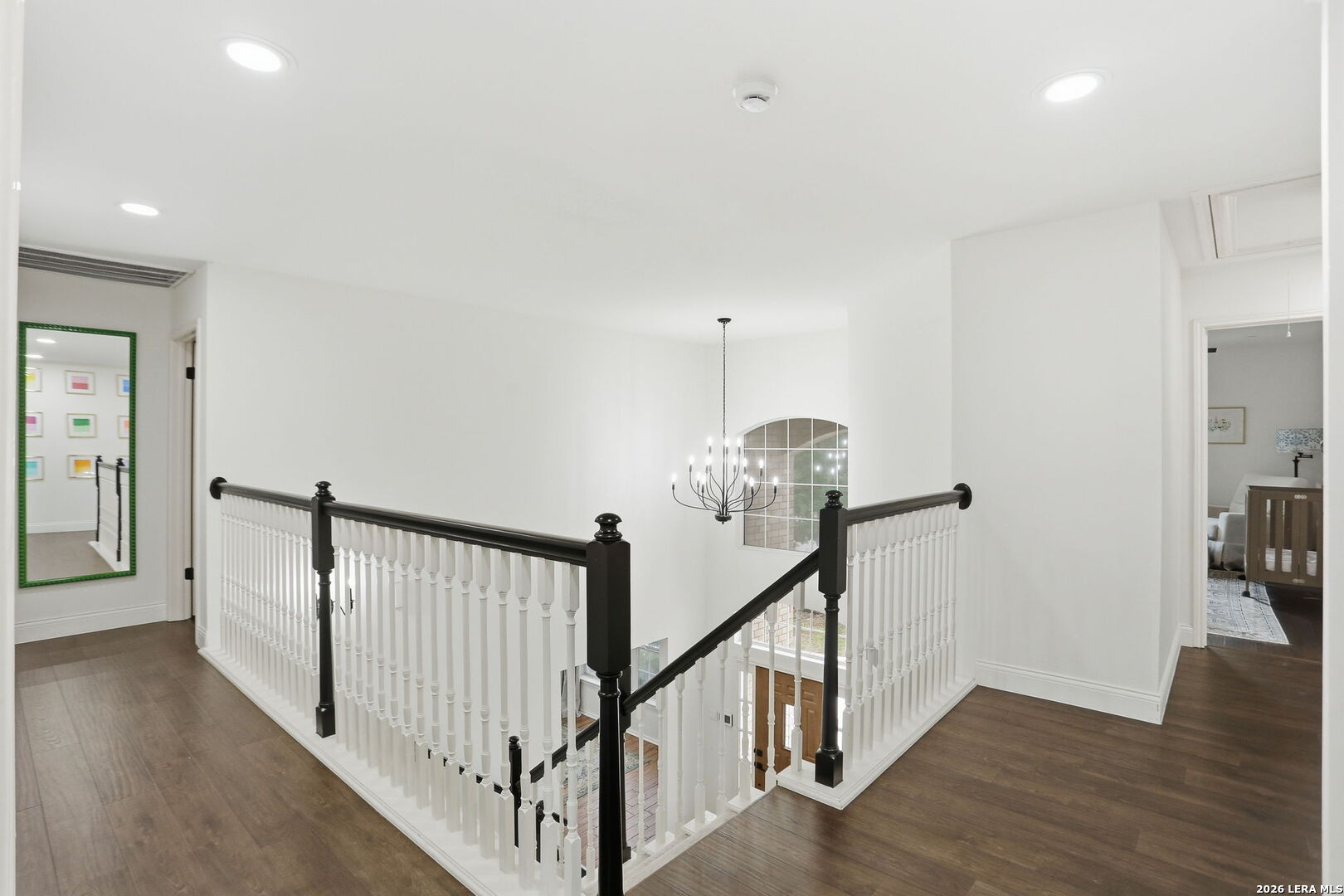 Spacious two-story home on a corner lot in desirable Encino Forest in North Central San Antonio, offering flexible living, extensive upgrades, and strong location benefits. The main level includes a dedicated office with French doors, formal and casual living spaces, a large dining area with custom dry bar and built in shelving, and a family room with fireplace and prewired media setup. The kitchen includes an island, updated soft close drawers, Rev A Shelf pullout, abundant cabinetry, and adjacent breakfast area. A sunroom adds valuable enclosed flex space and offers options for a second sitting area, reading room, hobby space, workout area, or additional living space, while improving connection to the backyard and outdoor living areas. The generous primary suite includes a large arched window, updated air return for improved comfort, and spacious bath layout. Upstairs includes secondary bedrooms, updated Mohawk laminate flooring. The fourth bedroom includes a bonus space that can be used for a craft area, sitting room, or flex space. Extensive interior improvements include recessed LED lighting, updated switches, upgraded outlets, ceiling fans, new door hardware, crown molding, chair rail detailing, and updated guest bath tile flooring. Major system improvements include upgraded attic insulation to R 38, HVAC enhancements including duct improvements, custom plenum, UV light, condenser hard start kit, drain float switch, and duct cleaning. Plumbing improvements include pressure reducing valve, expansion tank, and repaired kitchen sewer drain beneath foundation with the remainder of a transferable two-year warranty. Google Fiber available. Water softener system rebuilt. Outdoor features include a 15 x 13 concrete patio, mature trees, fenced backyard, and usable yard space. Exterior improvements include James Hardie Cedarmill siding, Simonton 5500 dual pane Low E windows, updated trim, and exterior paint improvements. Convenient access to Highway 281 and Loop 1604 supports efficient commuting to major employment centers, shopping, dining, medical services, and everyday conveniences. Nearby amenities include H E B, Stone Oak retail and restaurant destinations, and Methodist Stone Oak Hospital. Regional access to Joint Base San Antonio locations adds broader connectivity. Includes 3D walkthrough and floor plan.