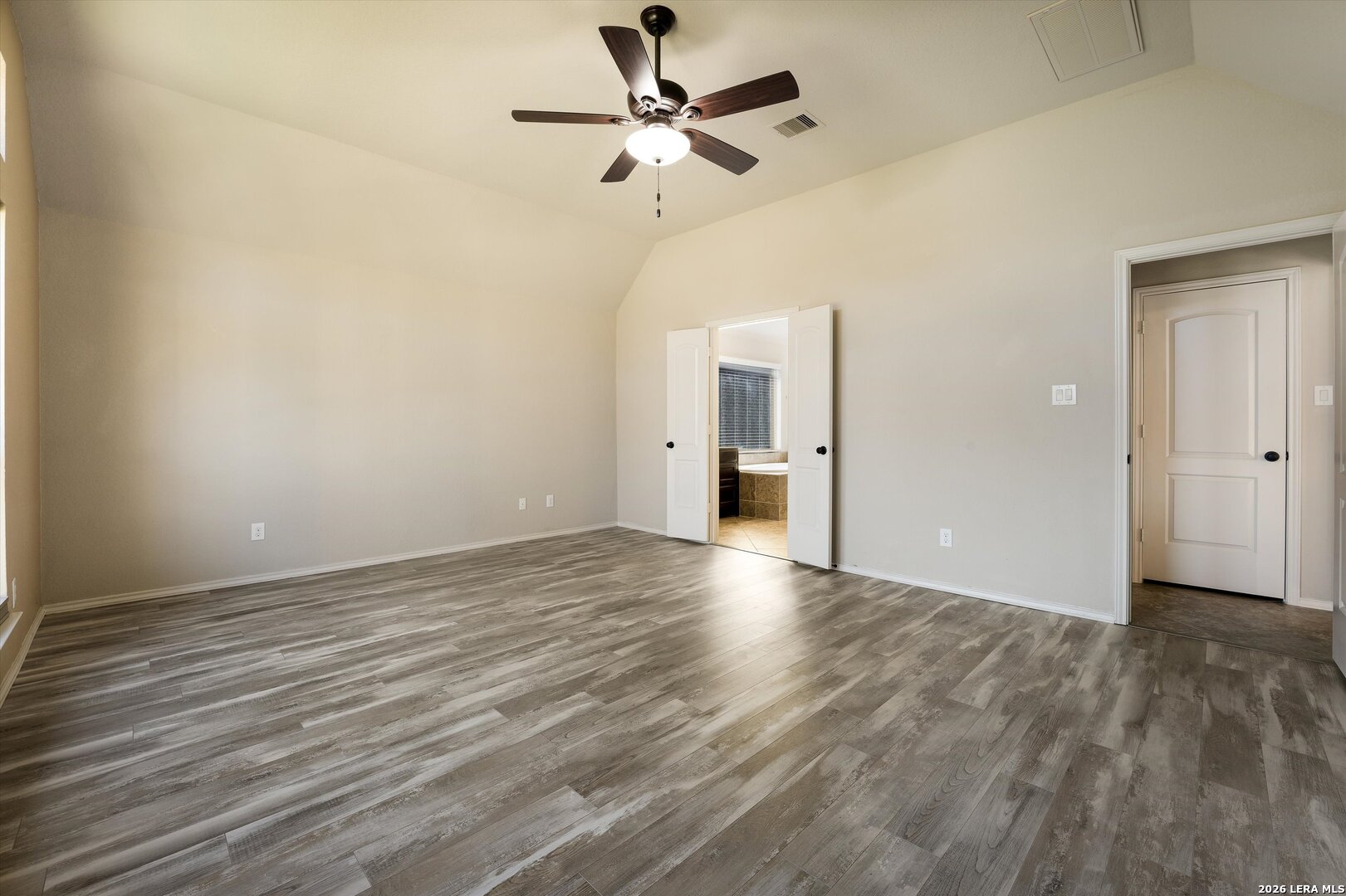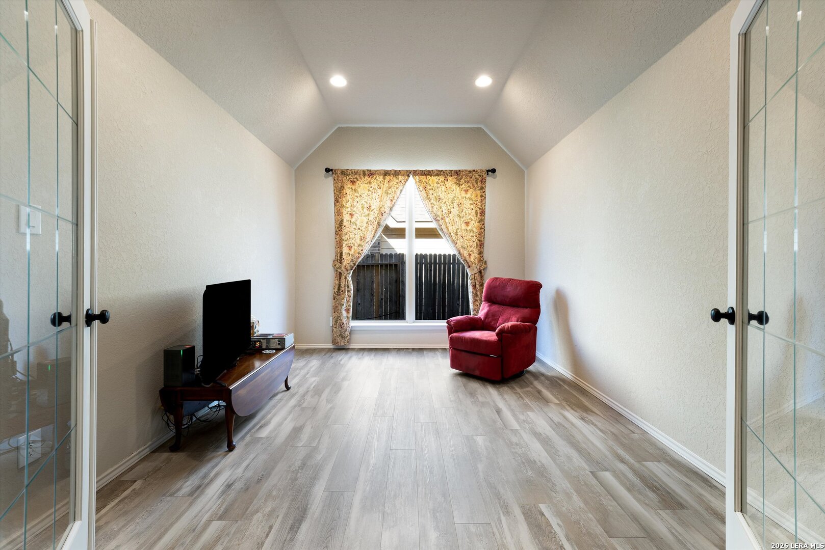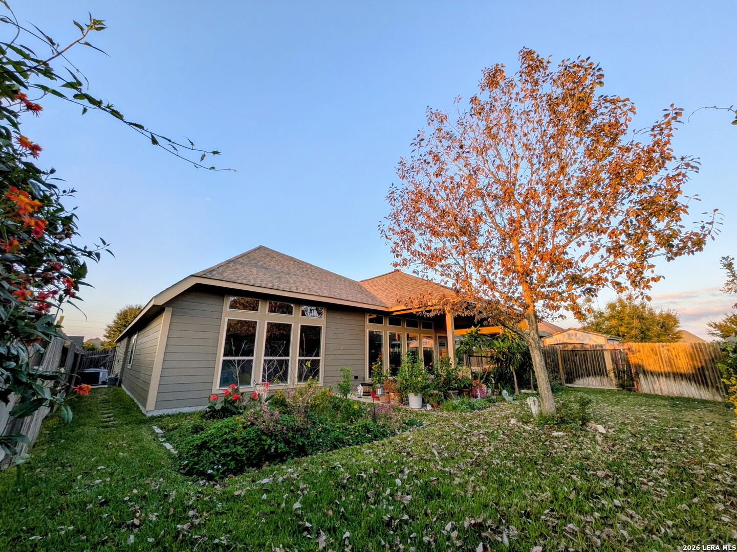 Welcome to this beautifully maintained one-story home in Mill Creek Crossing, ideally located between New Braunfels and Seguin with convenient access to I-10. From the moment you arrive, the exceptional curb appeal stands out - enhanced landscaping, mature greenery, and thoughtful exterior details set this home apart from others in the community. Inside, you're greeted by a grand entry that opens into a spacious, light-filled floorplan designed for both everyday comfort and effortless entertaining. The open-concept living, dining, and kitchen areas create a seamless flow, highlighted by tile flooring in main areas and durable luxury vinyl plank throughout for both style and functionality. This thoughtfully designed layout offers three bedrooms, two bathrooms, and a dedicated study - ideal for working from home, a playroom, or flex space. The primary suite is a true retreat, featuring split vanities, separate his-and-her walk-in closets, and ample space to unwind. Step outside to an extended covered patio - a unique upgrade not commonly found in the neighborhood - overlooking a private backyard complete with fruit trees, a small garden area, and additional side walkways for ease and convenience. Whether relaxing in the shade or tending to the garden, this outdoor space offers both charm and versatility. The tandem three-car garage provides exceptional parking and storage options, along with attic access featuring plywood decking for substantial additional storage. Meticulously cared for and move-in ready, this home offers comfort, upgrades, and functionality in one of the area's growing communities.