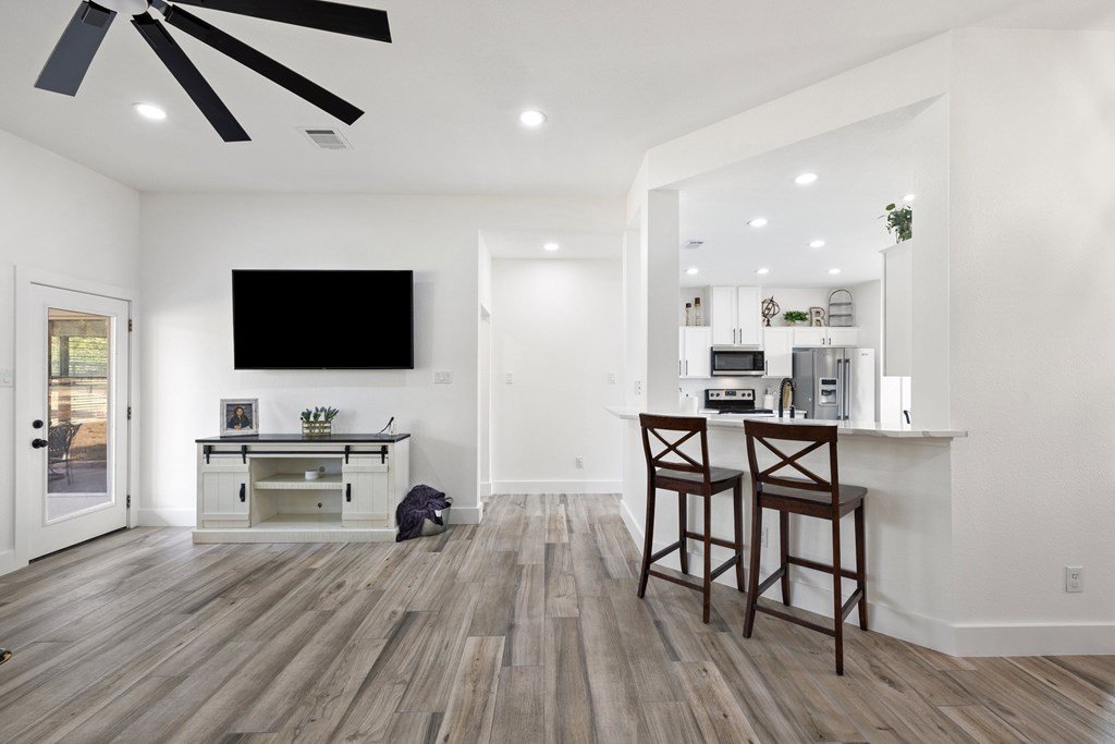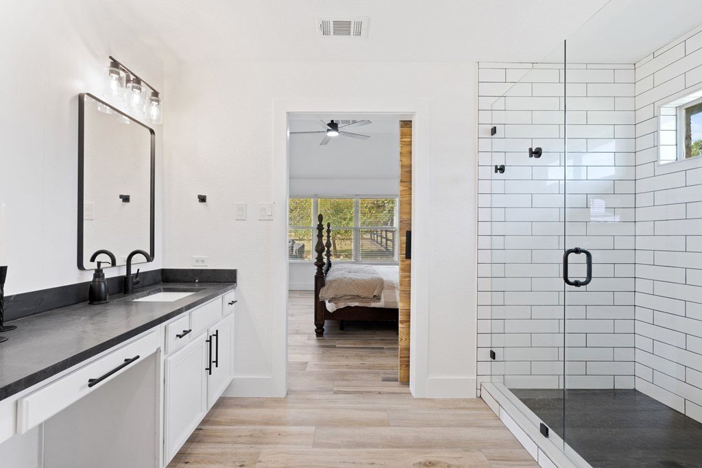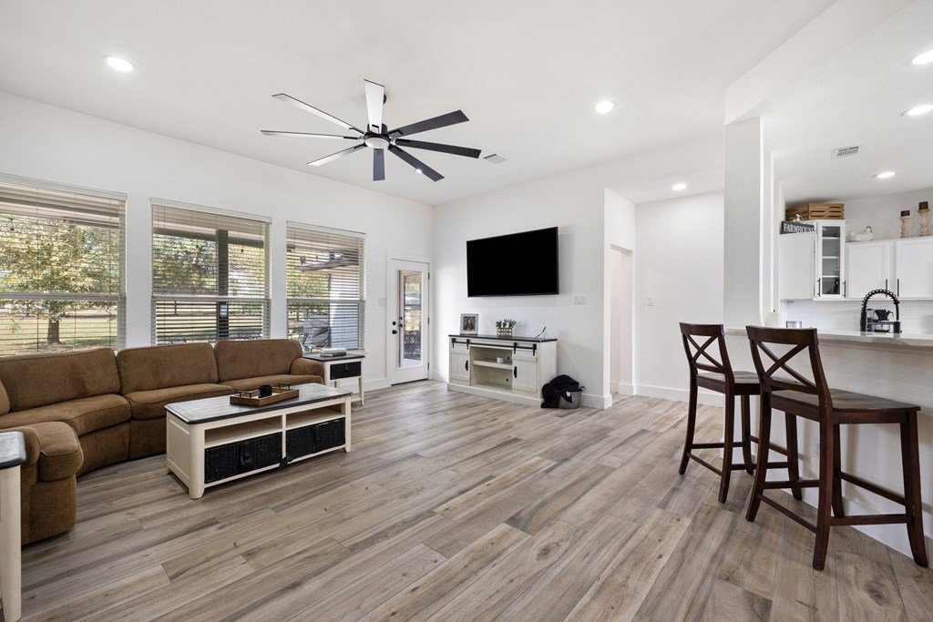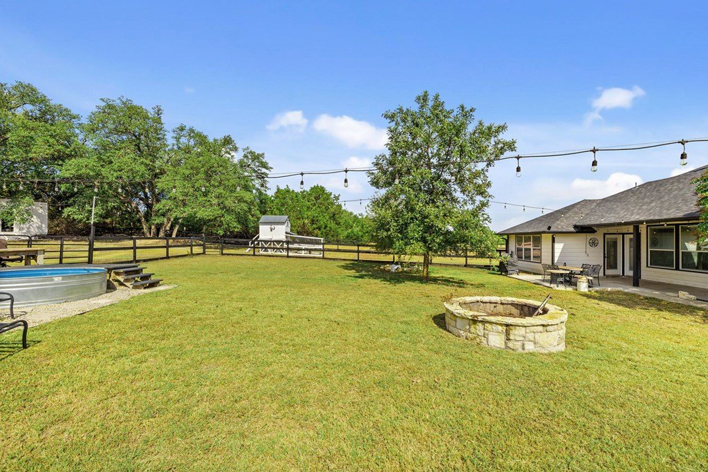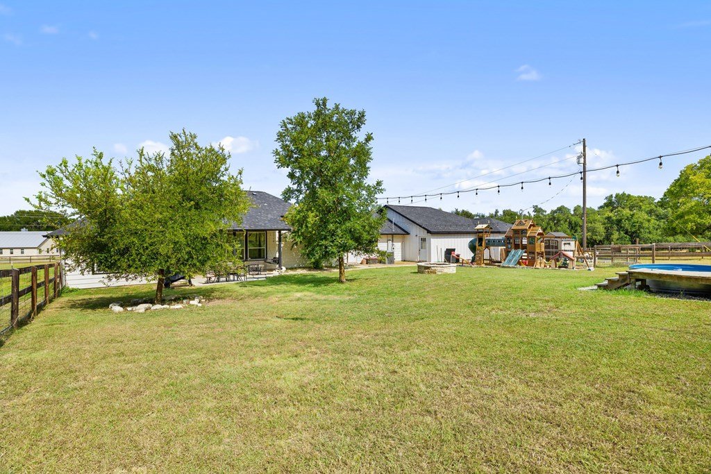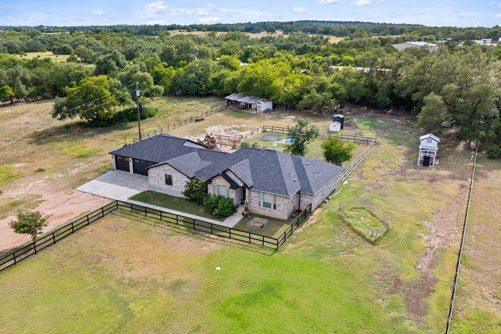 Welcome to your own slice of Hill Country charm in the heart of Dripping Springs. This beautifully remodeled 6 bedroom, 3 bath home sits on a spacious 1.51 acre lot, offering the perfect blend of privacy, comfort, and upscale modern farmhouse style. Inside, you'll find an inviting open layout filled with natural light, soaring ceilings, and new tile flooring throughout. The thoughtfully remodeled interior showcases high-end finishes and timeless character — from the elegant kitchen updates to the cozy living spaces designed for gathering. The master suite features vaulted ceilings, a luxurious modern bathroom with a quartz double vanity and new glass shower, and an oversized walk-in closet. A versatile media/playroom offers plenty of flexibility, easily serving as an additional bedroom, while the oversized laundry room with a mudbench offers extra storage and convenience. Step outside to enjoy the best of Texas Hill Country living. The large open lot is ideal for entertaining or relaxing, complete with a covered porch, stock-tank pool with a custom deck, in-ground trampoline, chicken coop, and multiple outbuildings for storage. The property also includes a spacious 3-car garage and beautiful mature trees offering shade and tranquility. Located in desirable west Dripping Springs, this home combines rural living with convenience—just minutes from local shops, restaurants, and attractions. With no HOA and room to spread out, 213 Beauchamp Rd is the perfect retreat to call home.