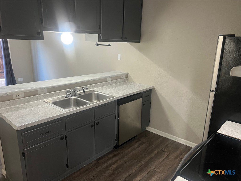 Investor rental or first-time home buyer home. 2 bedrooms, two bathrooms, Galley kitchen with electric range, breakfast bar, inside laundry, wood burning fireplace, partial covered back porch, privacy fenced, two car parking carports.