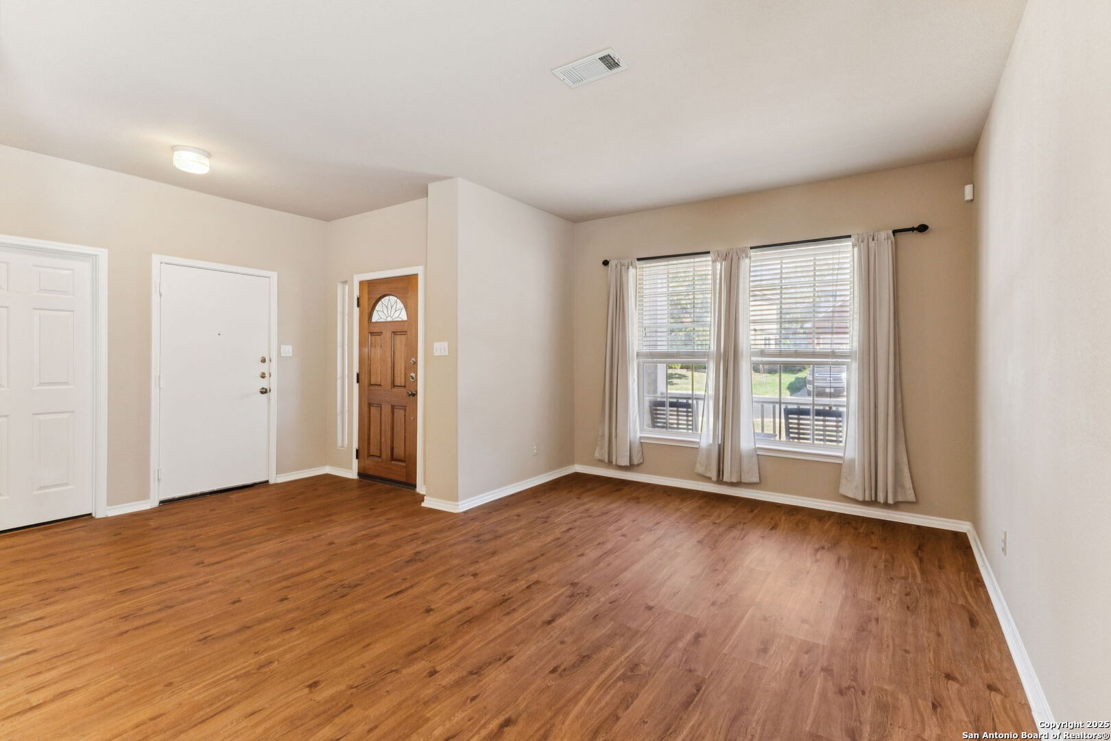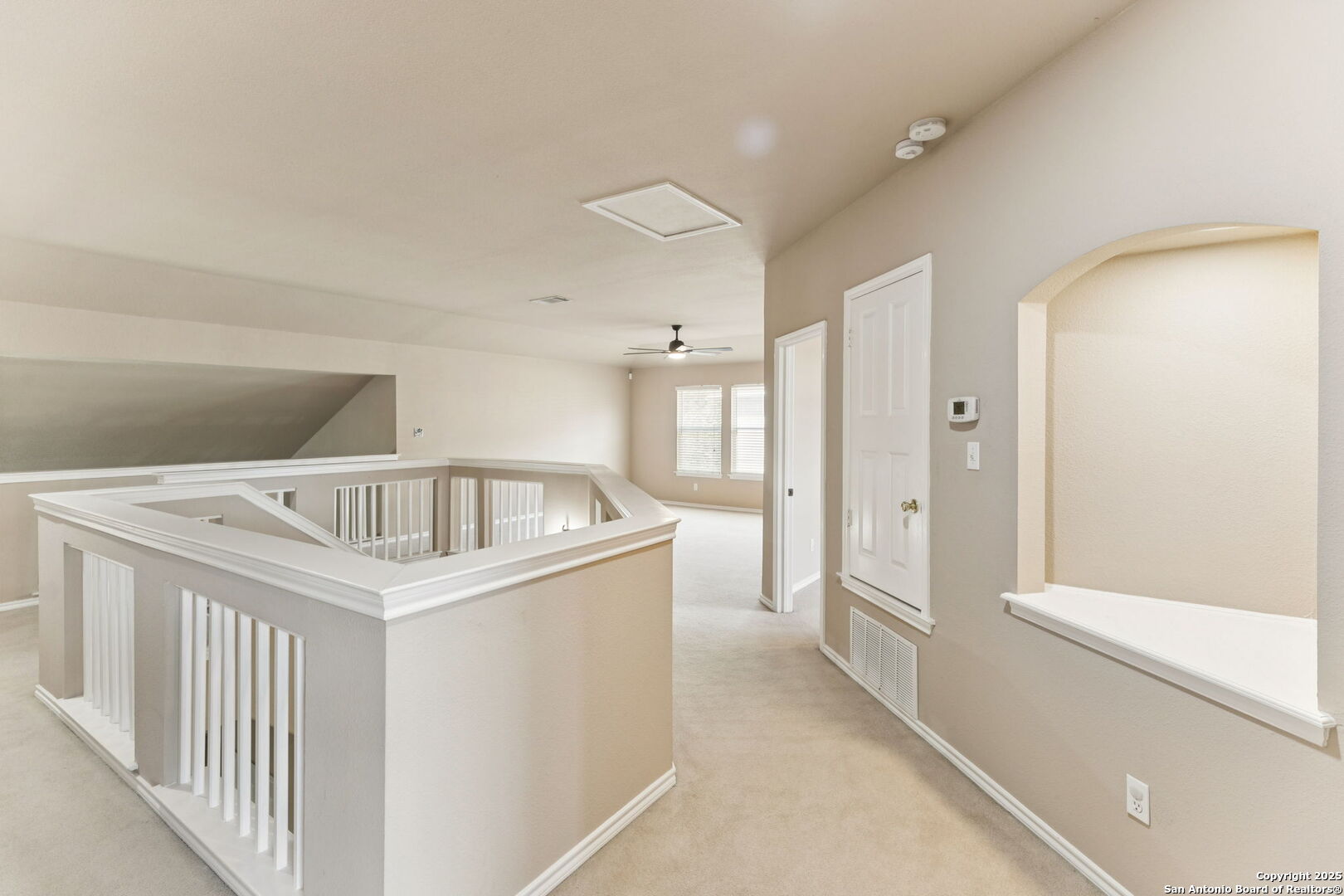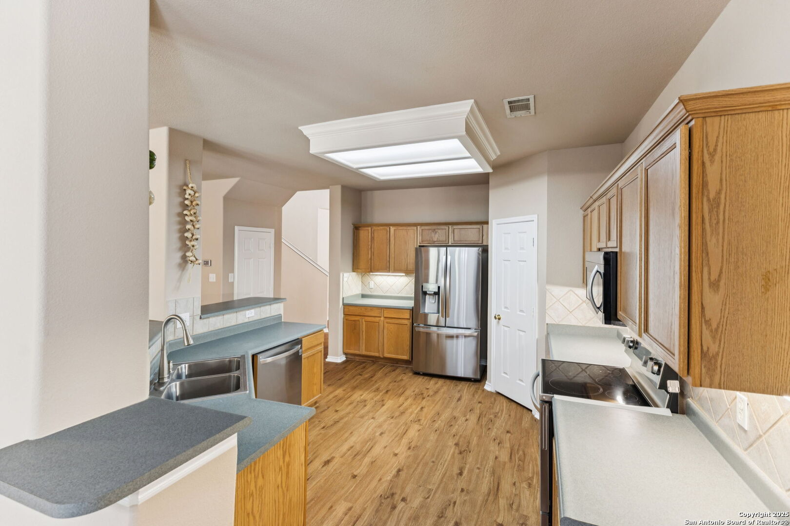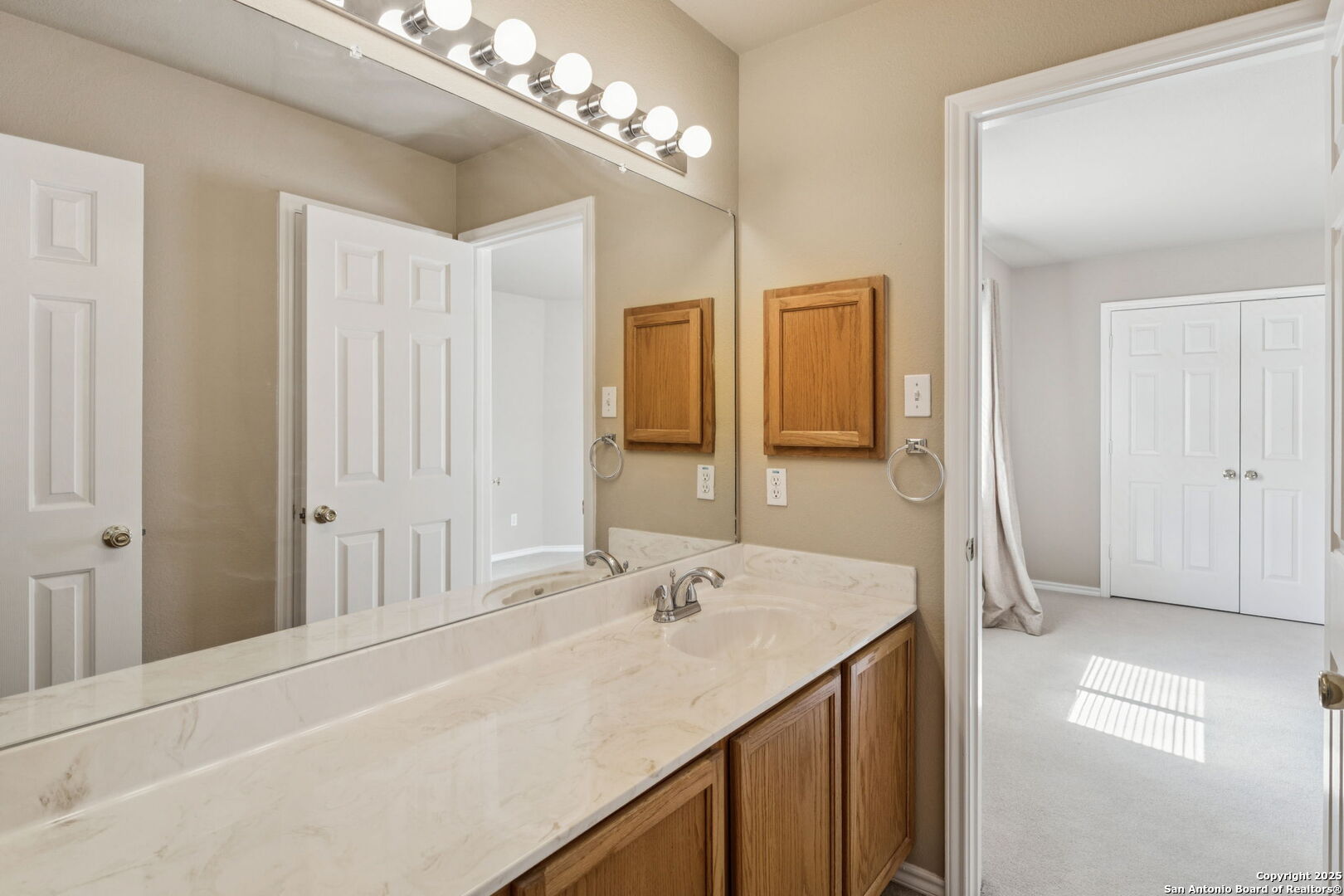 Discover this beautifully maintained, move-in ready home in one of the area's most desirable neighborhoods. With generous living spaces, a VA-assumable loan, and a warm community atmosphere, this property is designed for both comfort and connection. Step inside to an open floor plan with a spacious living/dining combo, a large eat-in kitchen with pantry, and four oversized bedrooms-including a serene first-floor master suite. Upstairs, a versatile loft adds a third living area, perfect for a game room, media room, or home office. Ample storage and walk-in closets throughout make organization effortless. Enjoy thoughtful architectural touches like window seats and custom niches, plus modern conveniences such as dual HVAC systems, a large laundry room, and an oversized two-car garage. Out back, a low-maintenance yard opens directly onto a nature preserve with trails, wildlife, and even a local bee farm run by neighbors. The patio offers plenty of space for grilling and gatherings, while the nearby community pool and tennis/pickleball courts are just a block away-without the burden of HOA fees. The location couldn't be better: easy highway access, a quick commute to SAMMC, Fort Sam Houston, and Randolph AFB, plus a VIA bus stop just blocks away. This is more than just a house-it's a place where neighbors still gather for driveway dinners and kids play in the street. Whether you're hosting family, welcoming in-laws, or working from home, this property offers the space and flexibility you need. Homes like this rarely come available-schedule your showing today.