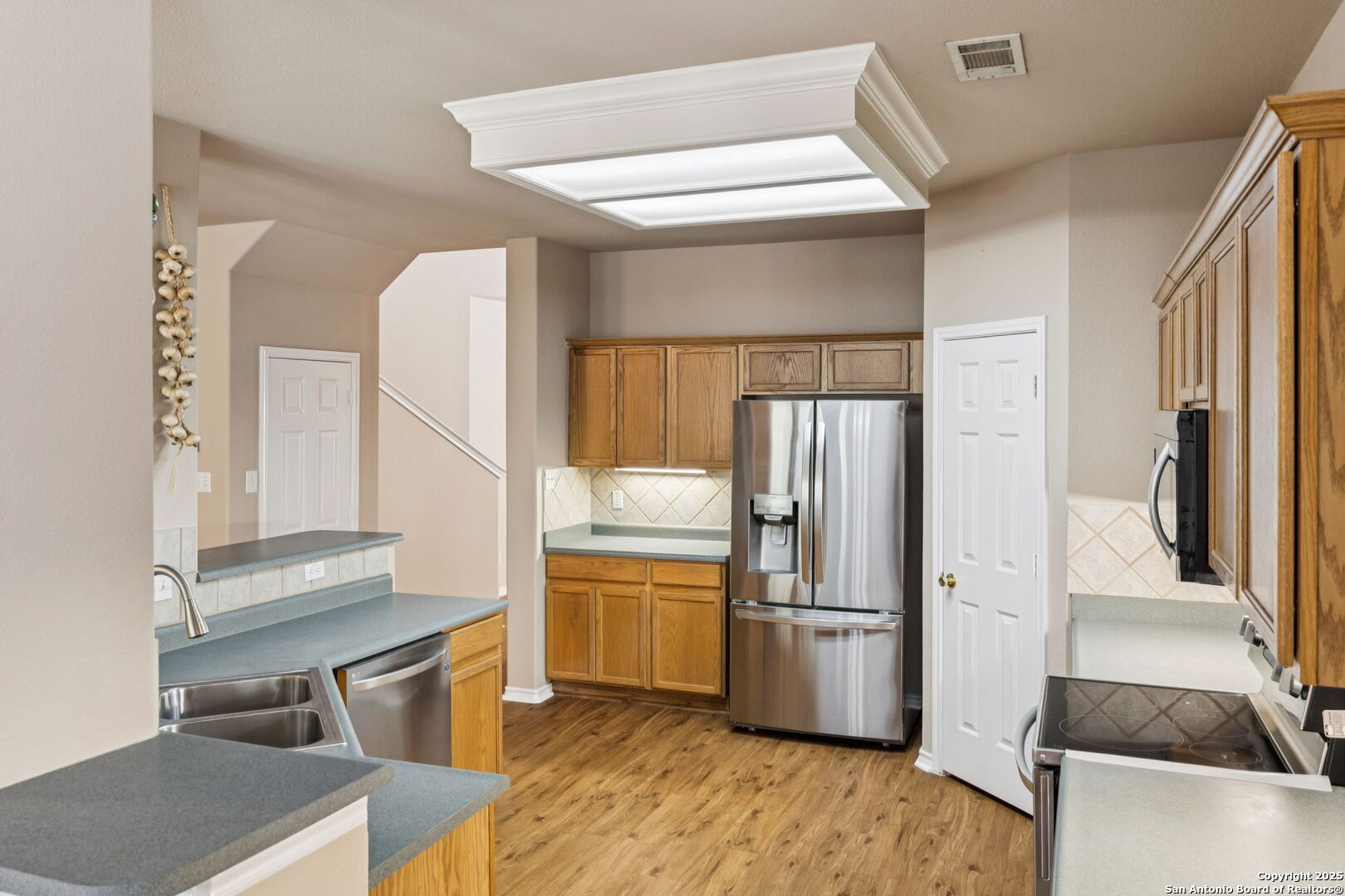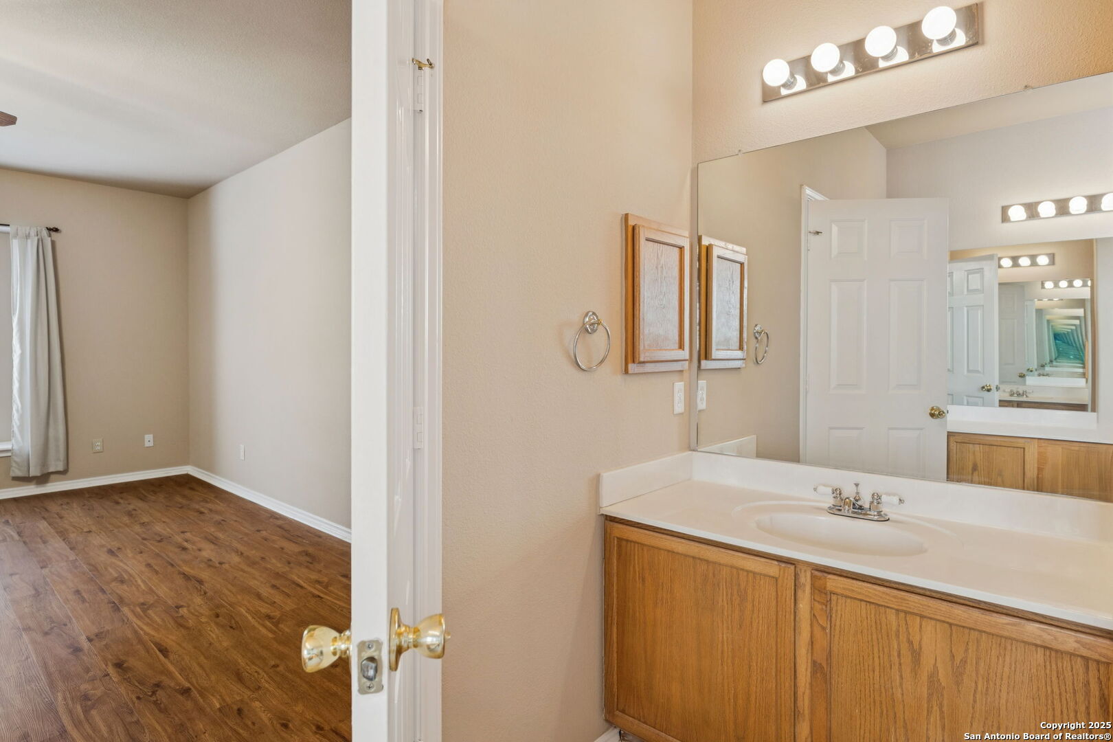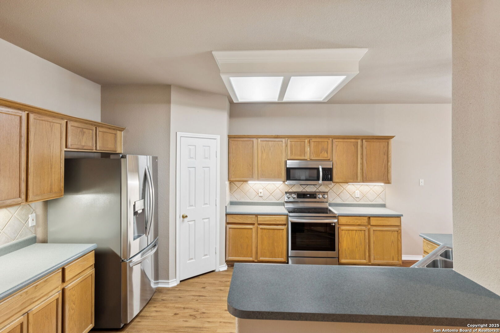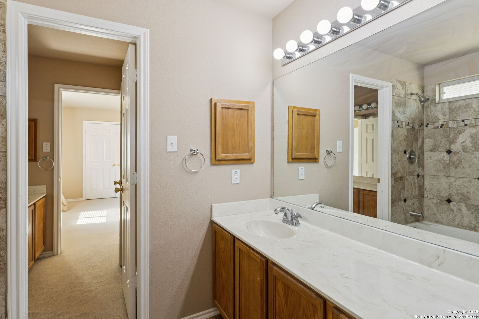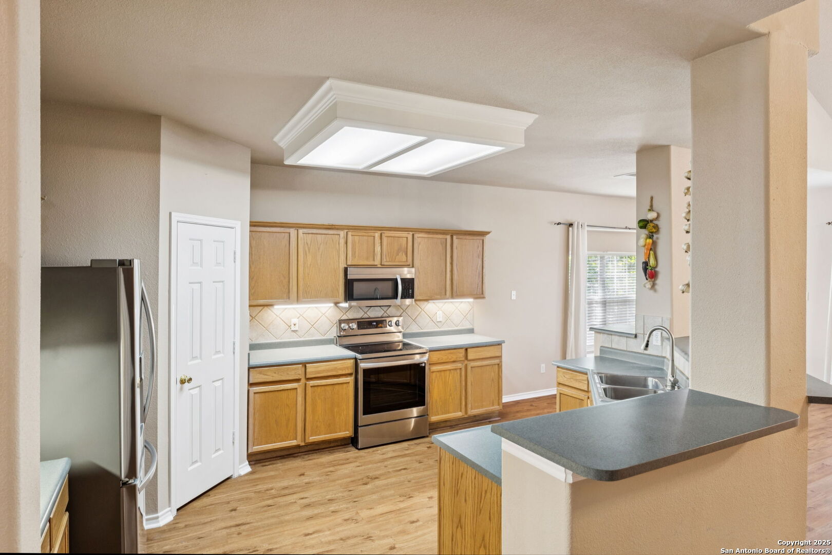 Discover this beautifully maintained, move-in ready home in one of the area's most desirable neighborhoods. With generous living spaces, a VA-assumable loan, and a warm community atmosphere, this property is designed for both comfort and connection. Step inside to an open floor plan with a spacious living/dining combo, a large eat-in kitchen with pantry, and four oversized bedrooms-including a serene first-floor master suite. Upstairs, a versatile loft adds a third living area, perfect for a game room, media room, or home office. Ample storage and walk-in closets throughout make organization effortless. Enjoy thoughtful architectural touches like window seats and custom niches, plus modern conveniences such as dual HVAC systems, a large laundry room, and an oversized two-car garage. Out back, a low-maintenance yard opens directly onto a nature preserve with trails, wildlife, and even a local bee farm run by neighbors. The patio offers plenty of space for grilling and gatherings, while the nearby community pool and tennis/pickleball courts are just a block away-without the burden of HOA fees. The location couldn't be better: easy highway access, a quick commute to SAMMC, Fort Sam Houston, and Randolph AFB, plus a VIA bus stop just blocks away. This is more than just a house-it's a place where neighbors still gather for driveway dinners and kids play in the street. Whether you're hosting family, welcoming in-laws, or working from home, this property offers the space and flexibility you need. Homes like this rarely come available-schedule your showing today.