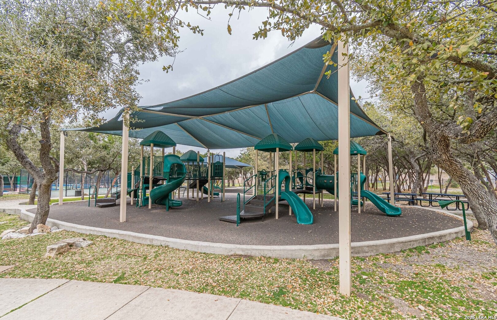 WELCOME HOME! Come see this charming and updated 3 bedroom, 2 bath home WITH OFFICE OR 4TH BEDROOM, nestled in GATED Lookout Canyon Creek. This single-story home has quality finishes and multiple living spaces. The kitchen remodel (2018) includes granite countertops, a large island, a backsplash, new cabinets, and a pass-through window to the dining area. The large kitchen is open to the family room that has a charming fireplace and many windows for natural light. Upgraded crown molding adorns the common areas providing a rich feel. Split bedrooms offer privacy. The primary suite is spacious and sits next to what could be a study, nursery or fourth bedroom. The master bath was remodeled (2021) and includes double vanities, granite counters, garden tub, and roomy walk-in shower. Enjoy the backyard with the added patio cover (2021), ideal for entertaining. Roof, with added ridge vents (2021), new AC and insulation (2019), new water heater (2021), new fence (2021) new shed (2019). The pool, park, and playground are just a short walk from the home. The location is ideal with Stone Oak shopping, entertainment and restaurants nearby. Please be sure to verify taxes, schools, and measurements.