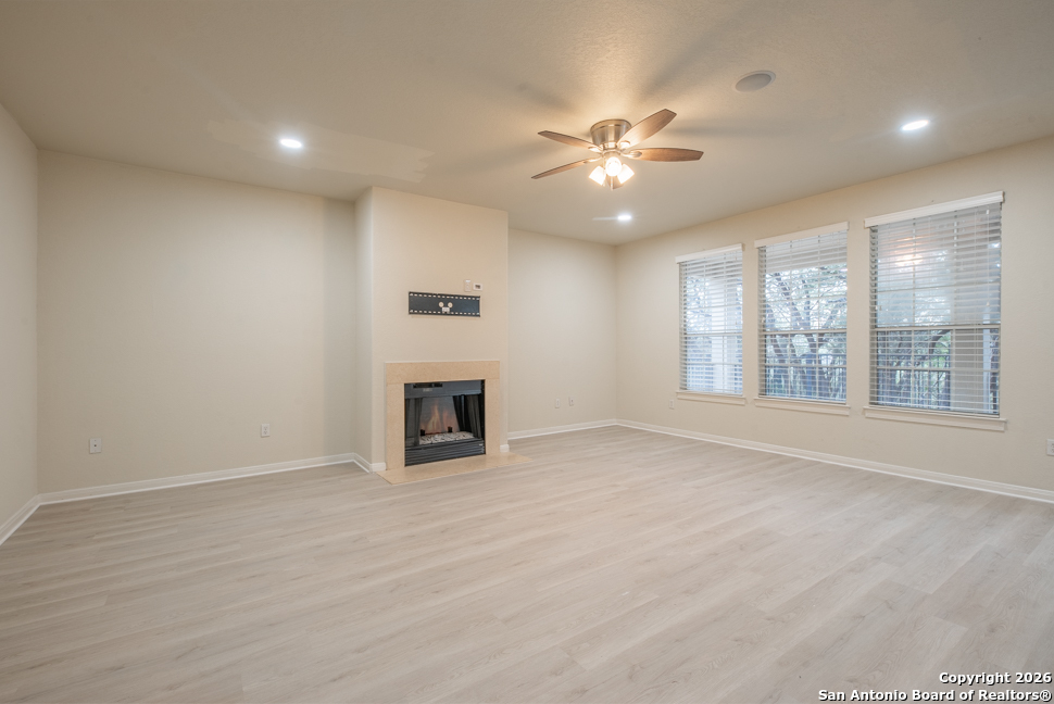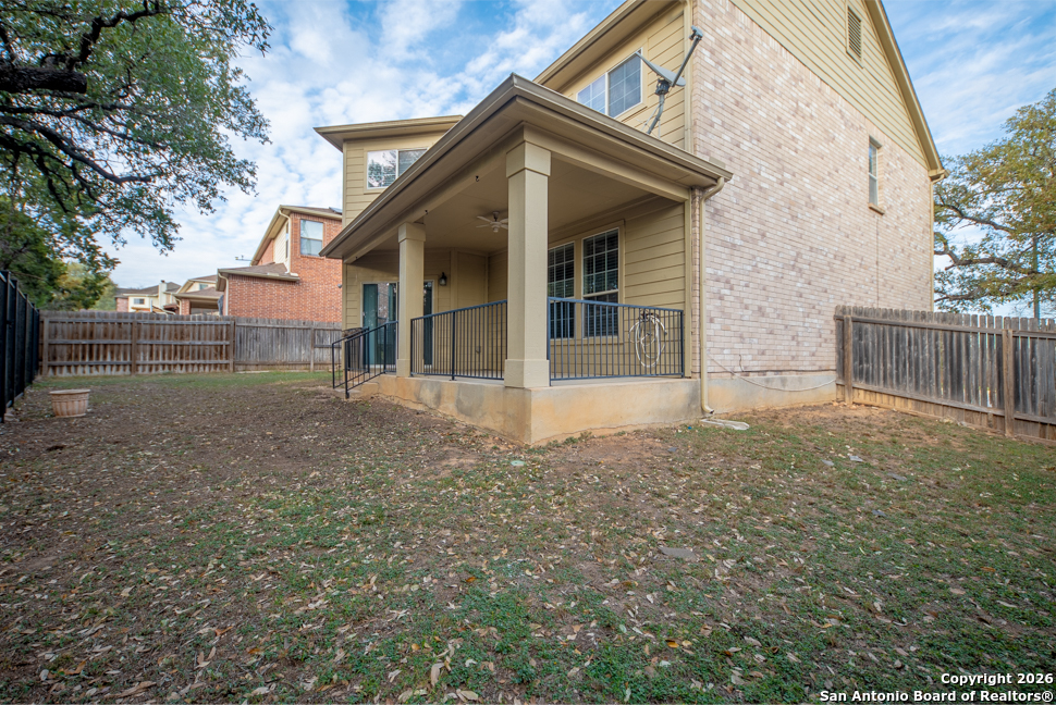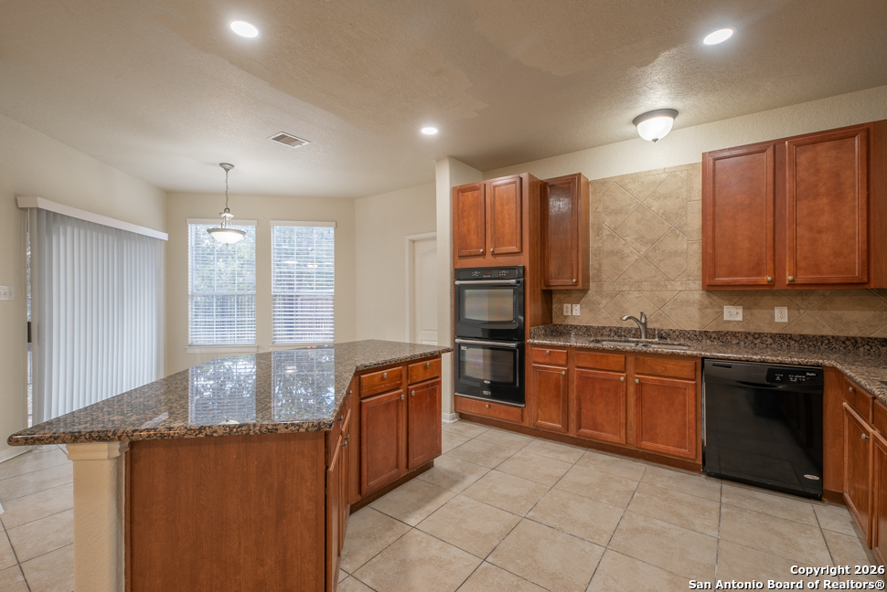 Welcome to this beautiful 2,686 sq ft home ideally situated on a scenic greenbelt lot, offering added privacy, mature trees, and a peaceful outdoor setting. Enjoy entertaining or relaxing on the spacious patio, perfect for gatherings or quiet evenings outdoors. Inside, the home features a thoughtfully designed layout with granite countertops, a double oven, and a surround sound system, making it ideal for both everyday living and hosting. Recent updates include new tile flooring in all wet areas and a stylish kitchen backsplash, adding a modern touch throughout the home. A wonderful opportunity to enjoy comfort, space, and a beautiful natural backdrop in 21415 Branding Bay, San Antonio, TX 78259. Schedule your tour now!