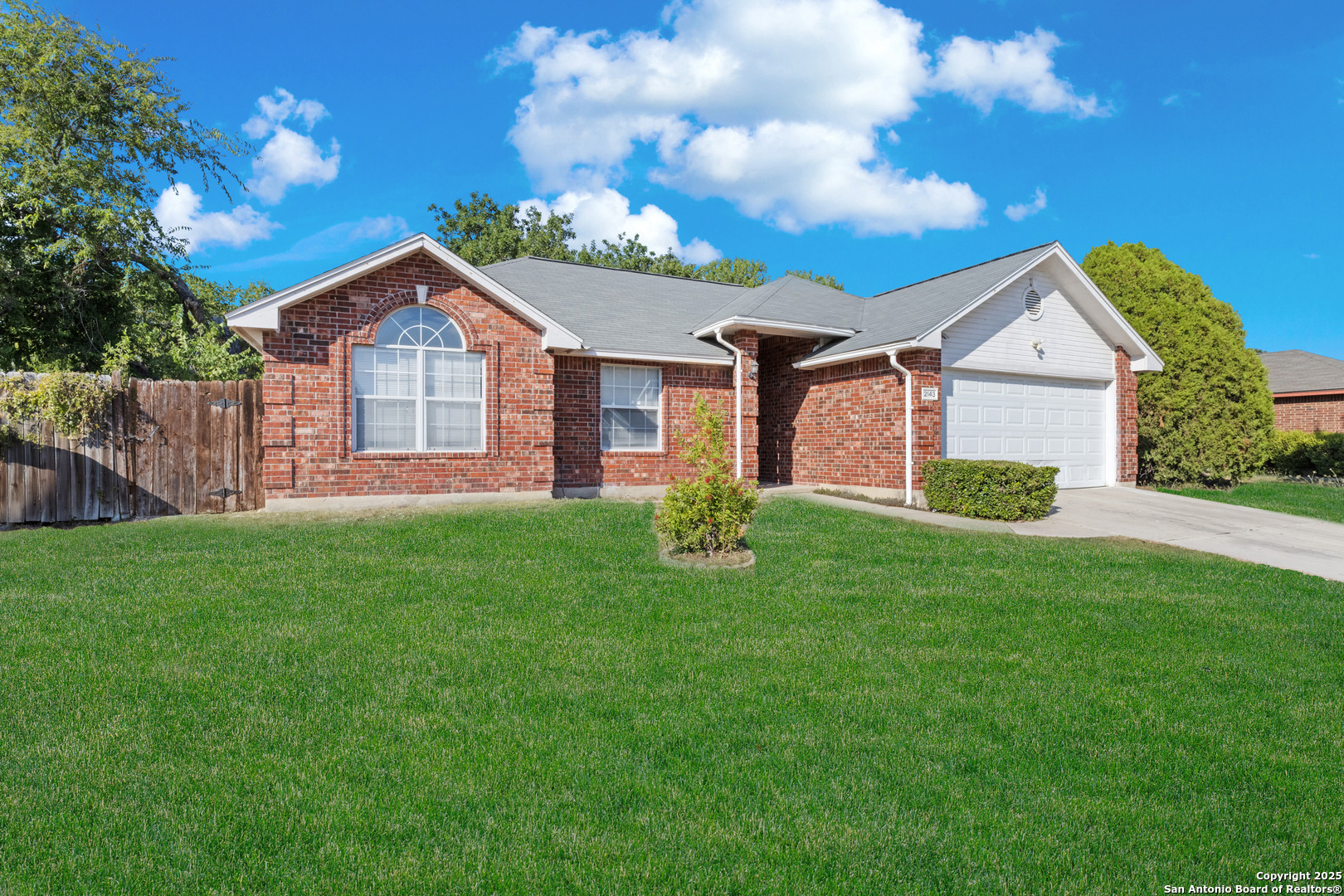 Welcome to 2143 Calle del Sol!This charming 3-bedroom, 2-bath brick home offers comfort, style, and functionality in a prime location with no HOA. Freshly painted and move-in ready, the home features tall ceilings that create an airy, open feel throughout.The spacious living areas flow seamlessly into the kitchen and dining space, making it ideal for both everyday living and entertaining. The primary suite includes a full bath for convenience and privacy. A huge plus is the large backyard with a shed that backs up to a greenbelt for even more privacy! You won't want to miss this home.