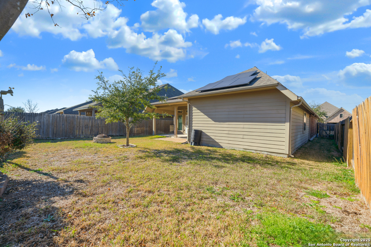 Welcome to this beautiful well-maintained 1-story home in the Mill Creek Crossing Subdivision. The home has 3 bedrooms, 2 full baths, a formal dining room, a study, and fantastic upgrades, including SOLAR PANELS for lower utilities, GAS COOKING, and a water softener system. You will immediately appreciate the open floor plan with high ceilings as you enter the home. Enjoy the stunning kitchen with stainless steel appliances plus a refrigerator, granite counters, a spacious island, and a morning/breakfast area. The primary bedroom has a private ensuite with a double vanity, separate shower & jetted tub. The extended double-covered patio in the backyard provides plenty of shade for grilling and relaxation after a hard day's work. AVAILABLE NOW! DON'T MISS IT!