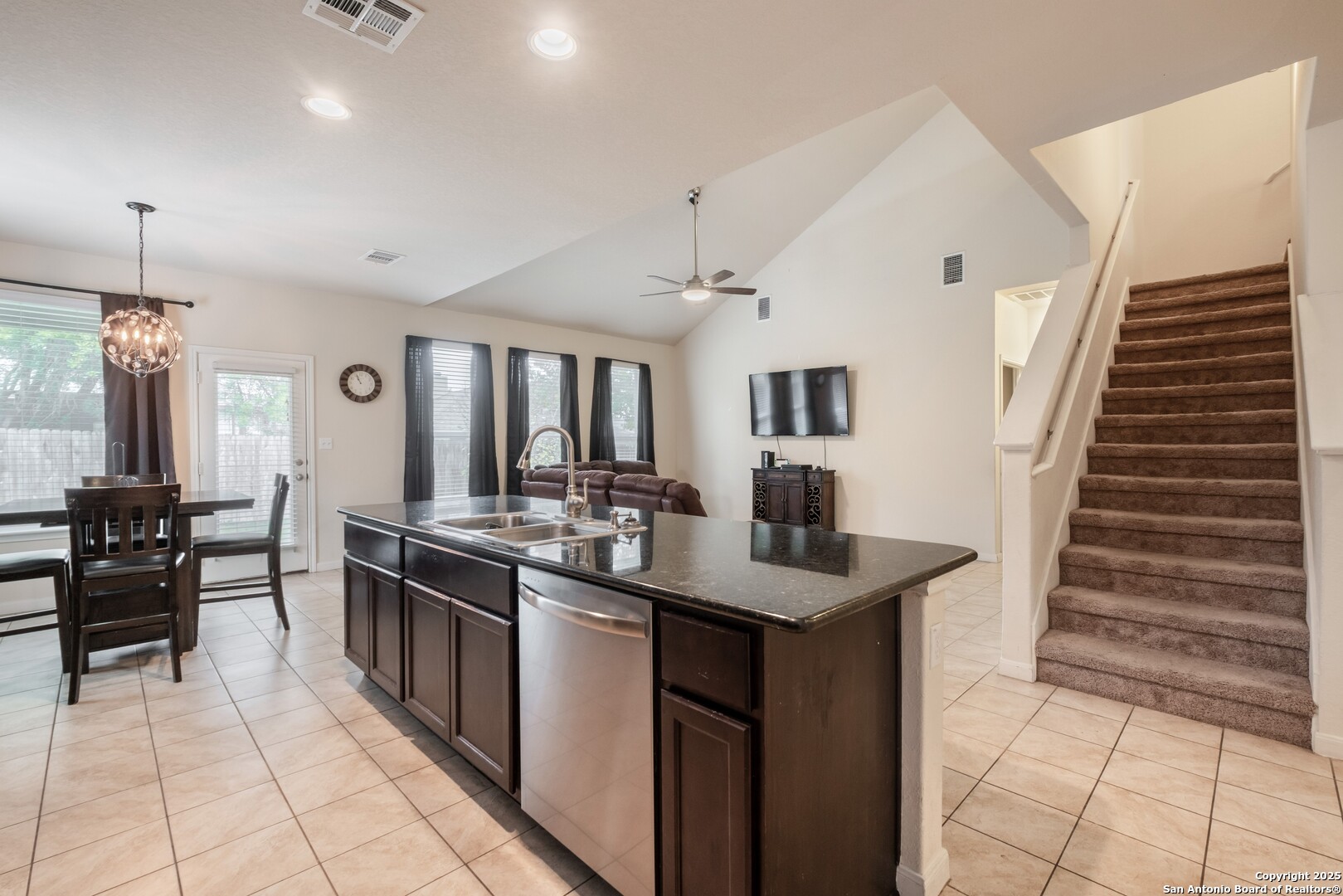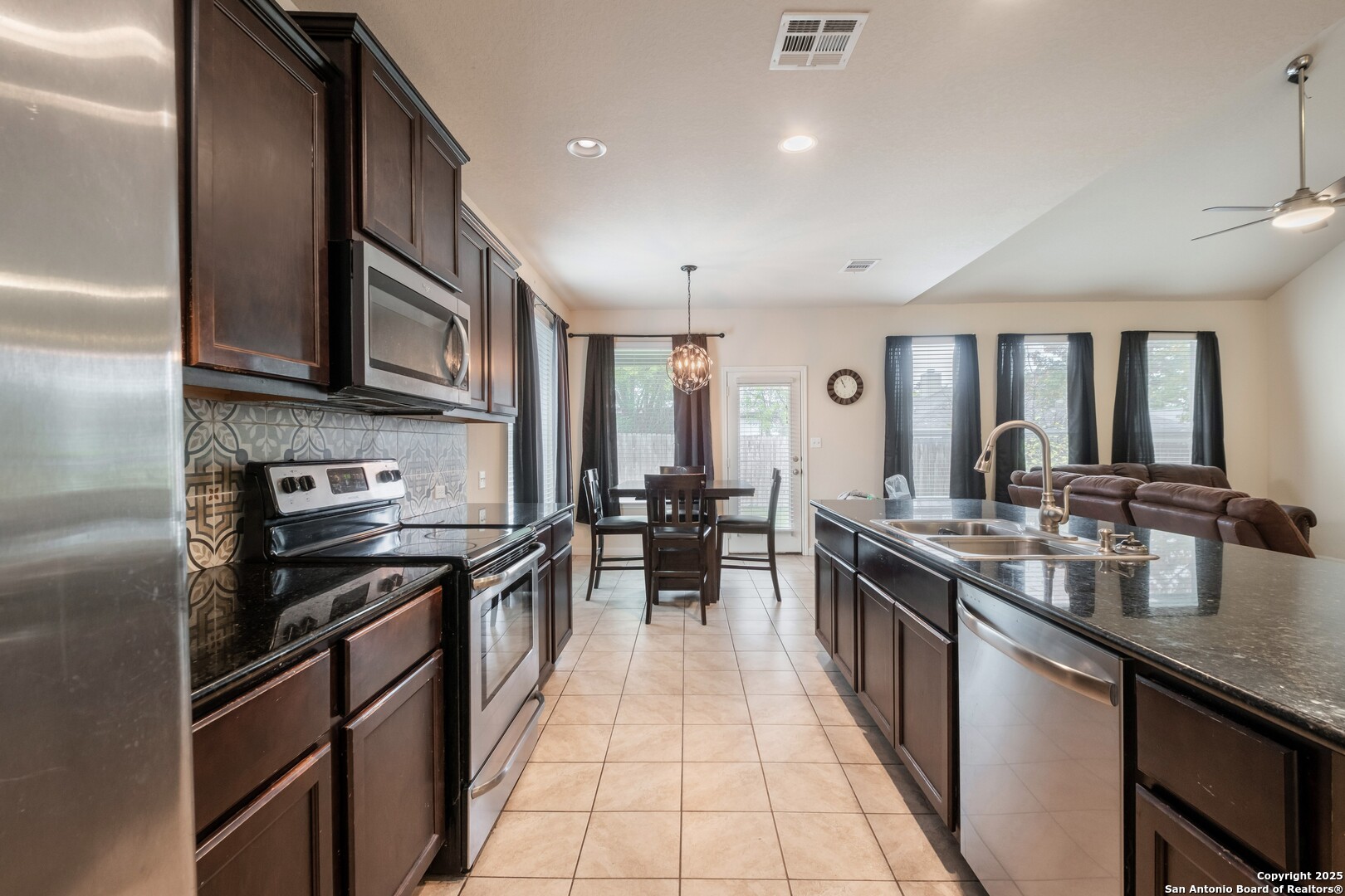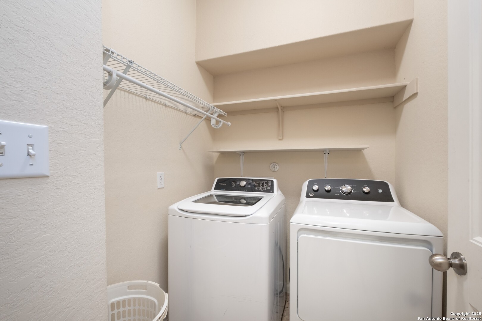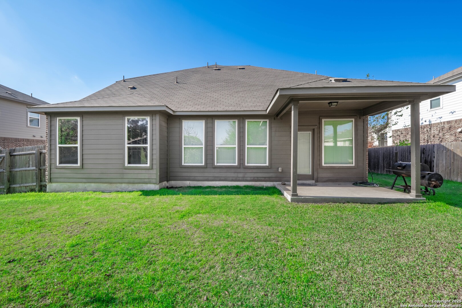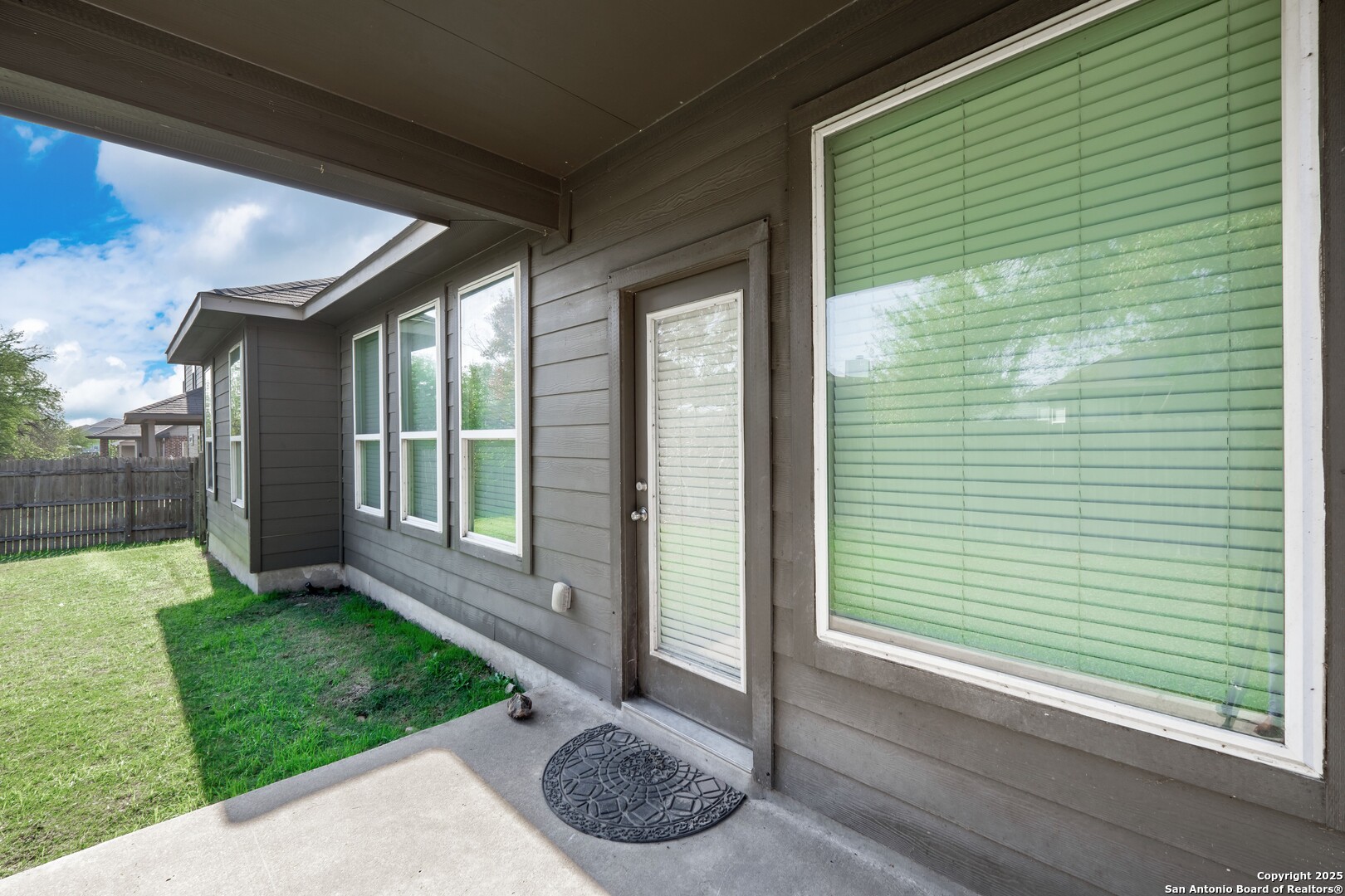 Welcome to this beautiful two-story home offering 4 bedrooms, 2.5 bathrooms, a 2-car garage, and 2,352 sq. ft. of thoughtfully designed living space. Fresh interior paint enhances the bright, welcoming feel, while the brick-and-stone front elevation with siding on the sides and rear provides attractive curb appeal. The property features a large manicured lawn and is ideally located in a community just across from Fischer Park, enjoying an excellent setting with green space nearby. The open-concept kitchen overlooks the living area and features a large island, dark granite countertops, and a walk-in pantry. All appliances are included: refrigerator, stove/oven, microwave, vent hood, dishwasher, washer, and dryer. A bright dining area sits adjacent to the kitchen, while a separate formal dining room or office is located just off the front entry. The living room features a vaulted ceiling, tile flooring throughout the main level, and cozy carpet upstairs. The primary suite is conveniently located on the main level and includes an ensuite bath with a garden tub, separate walk-in shower, and a spacious walk-in closet. Upstairs, you'll find additional bedrooms and a large loft that works perfectly as a second living area, game room, or media space. Step outside to a covered back patio with fruit trees, custom planters, and a privacy fence, an ideal space for entertaining or unwinding outdoors. Just minutes from top-rated schools, downtown New Braunfels, shopping, dining, and entertainment, this move-in-ready home offers space, convenience, and a prime location.