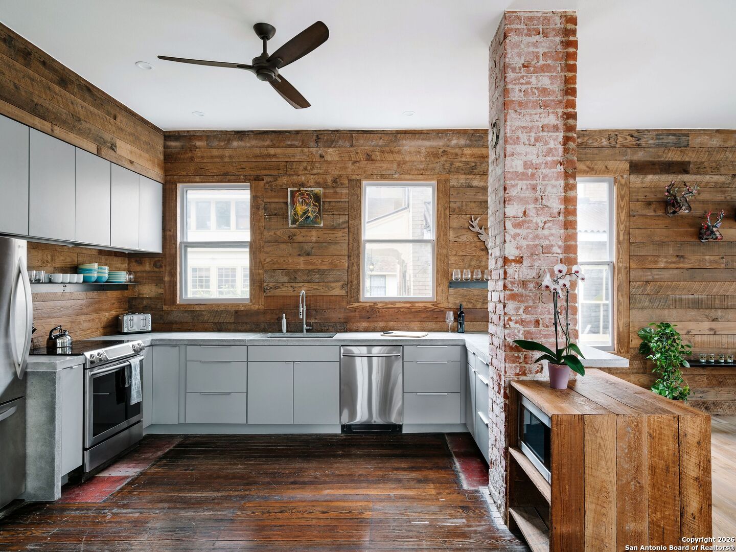 Fully furnished historical gem with re-imagined architectural grade finishes throughout - The property consists of a main home with 4 bedrooms and two flexible living spaces. The third floor, over-sized fourth bedroom could suit a variety of needs such as an office, game room, or art studio. Additionally, there is a light-flooded 2-bedroom detached home in the rear of the property. King William is the most sought-after community in downtown San Antonio and one of the only truly walkable neighborhoods, with some of the city's best dining and entertainment steps away.