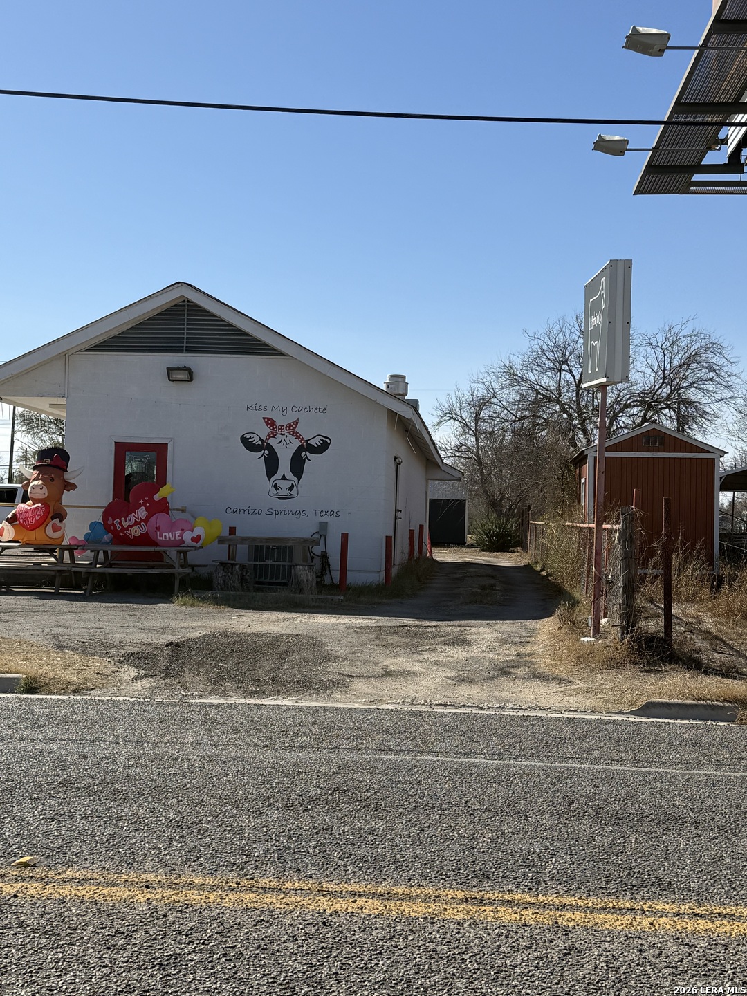 Commercial building located directly off E Nopal Street in Carrizo Springs, Texas. This building is approximately 1,170sqft and sits on two corner lots. The exterior of the property has an operating drive-thru window that runs along the backside, and out front there are multiple parking spaces. This property offers great visibility and flexible space for both work and commercial use.