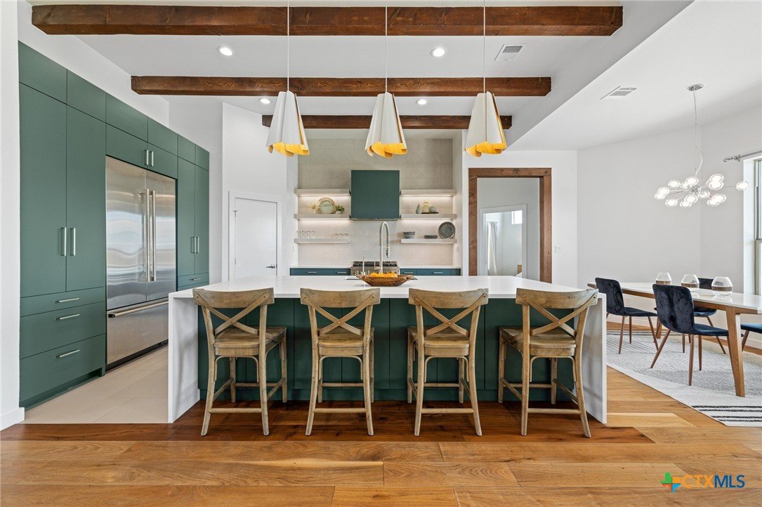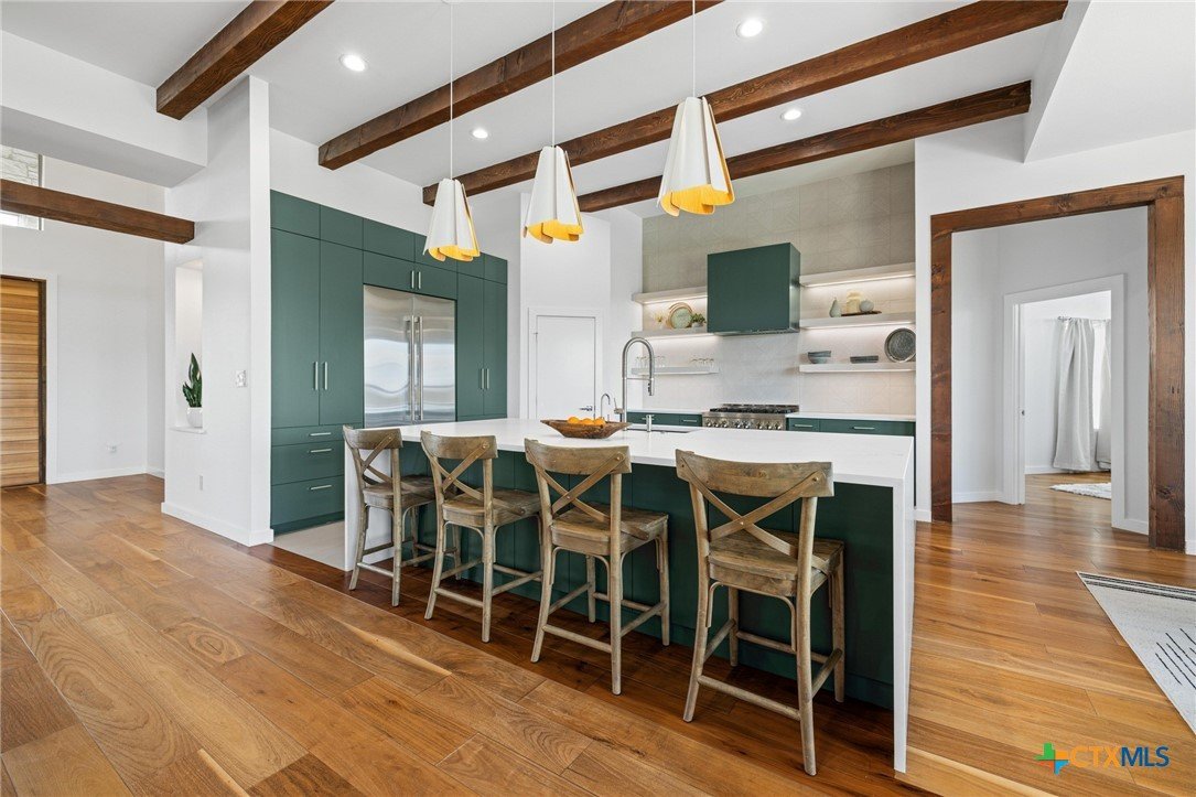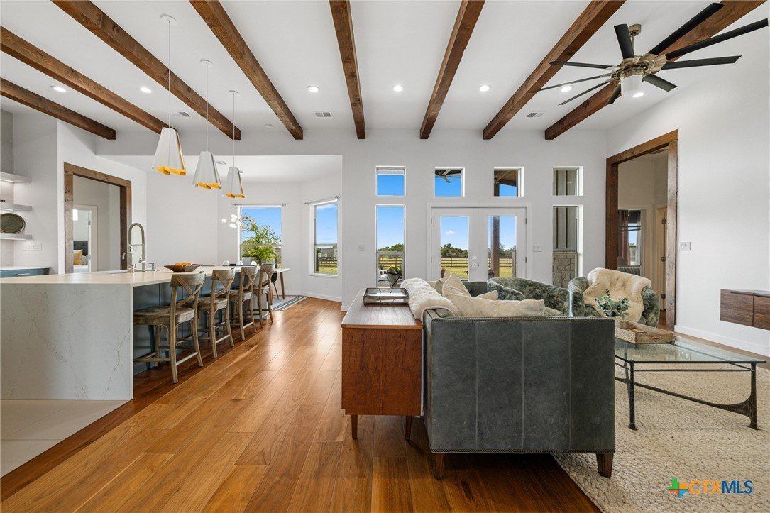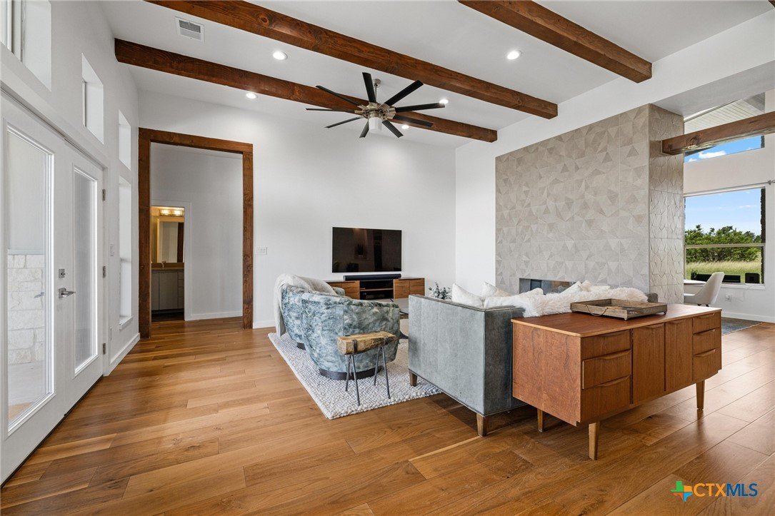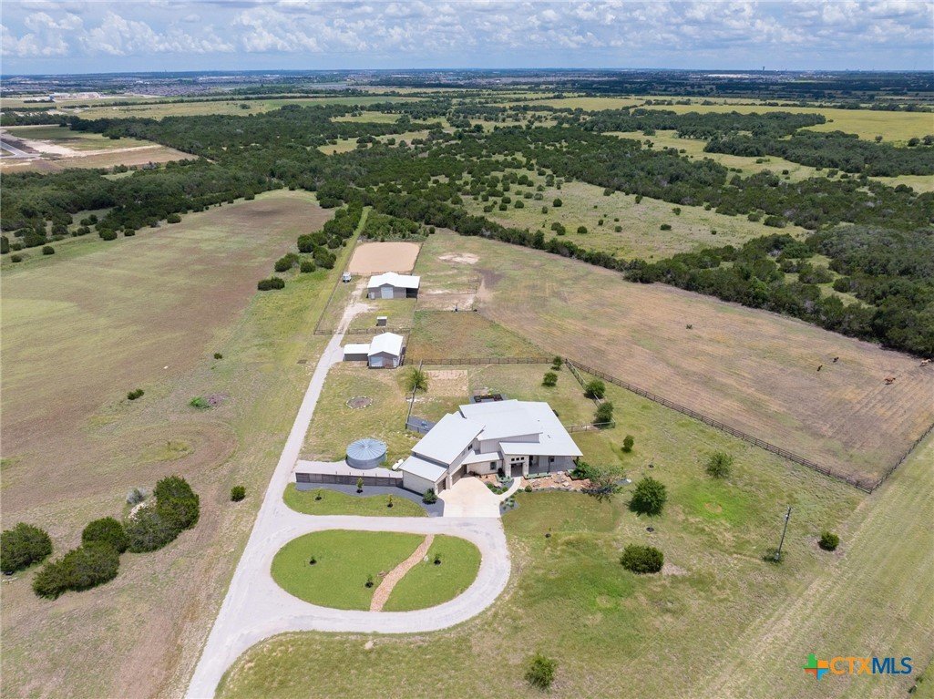 Tucked away in scenic Mesa Vista Estates, this breathtaking 7.8-acre estate offers the perfect blend of luxurious living, equestrian functionality & scenic Hill Country serenity, just a few miles NW of Austin and Cedar Park. The custom-designed residence spans over 3,600 square feet, featuring 4 spacious bedrooms, 3.5 baths, dedicated office, open concept layout and a laundry/mudroom all on the main level. Soaring ceilings w/exposed fir beams, rich walnut floors, remodeled double-sided fireplace, and designer finishes throughout give the home a refined, yet comfortable feel. The remarkably redesigned kitchen is a showstopper w/high-end appliances, including a 6-burner gas stove, custom cabinetry, contemporary lighting, a quartz waterfall island, and walk-in pantry. Upstairs features a sunlit game room & two flexible spaces perfect for a gym, media room, hobby space, or storage. Relax and enjoy breathtaking sunrise & sunset hill country views from expansive covered front, side, and back porches overlooking custom professional landscaping, horse grazing, and a fully-fenced backyard with room for a pool or sport court. Equestrian enthusiasts will love the fully outfitted 3-stall barn w/oversized stalls, individual runs, tack & feed rooms, hay storage, grooming area, plus full utilities. Ride or train in the 100x80 granite sand arena. All 7.81 acres are fenced & cross-fenced with native grass pastures to support year-round foraging and rotation. A 1,200 SF 3-room workshop on slab w/electricity, AC & bathroom offers endless potential as a guest house, studio, or home office. With no HOA, a low 1.7% tax rate and light restrictions that allow home businesses, the freedom here is unmatched. Just min. to 1300-acre River Ranch County Park w/miles of riding trails & the new Northline development, plus zoned to Leander ISD, this is a rare opportunity to live "off -grid," work, ride or expand on your own terms.