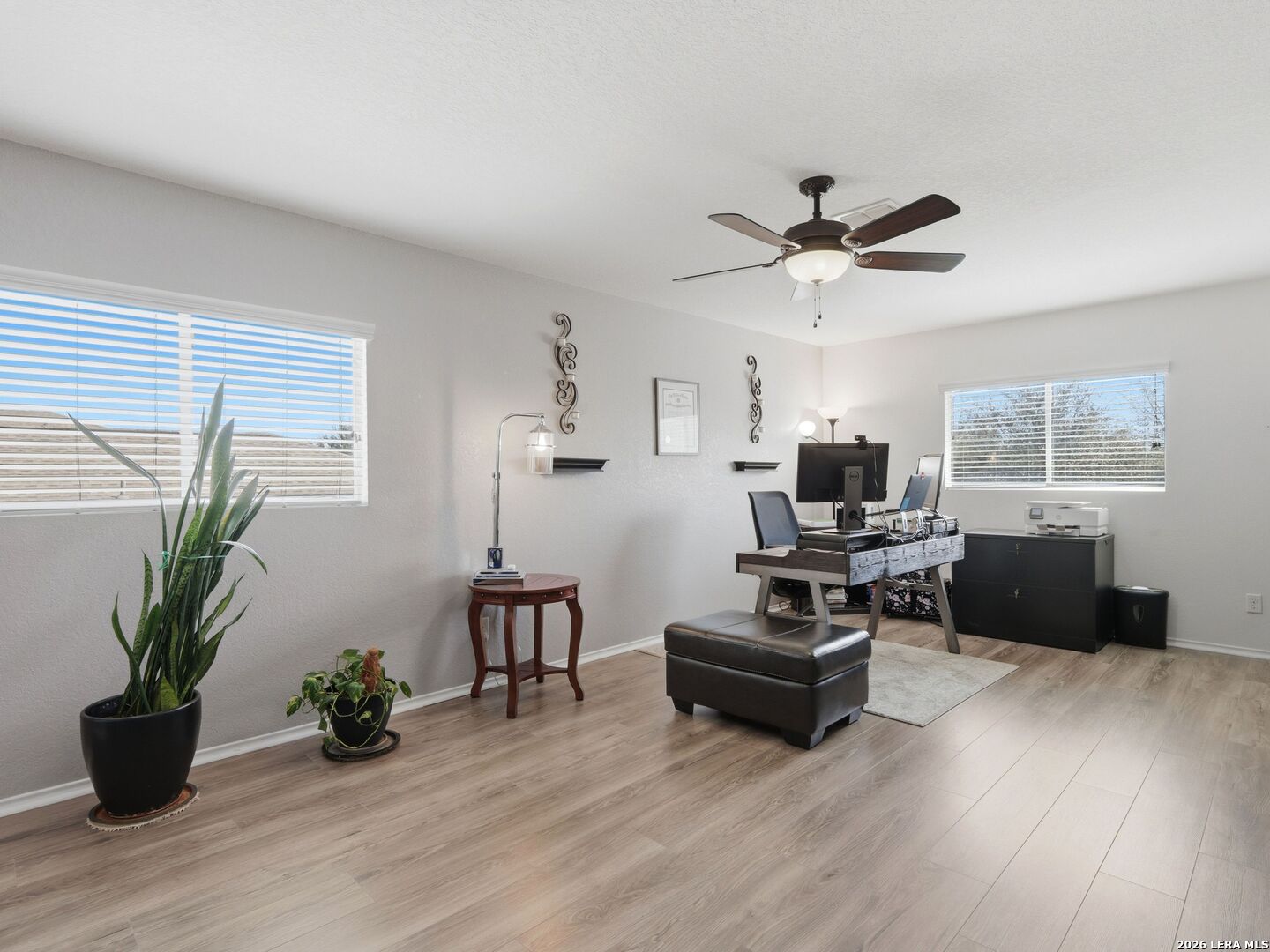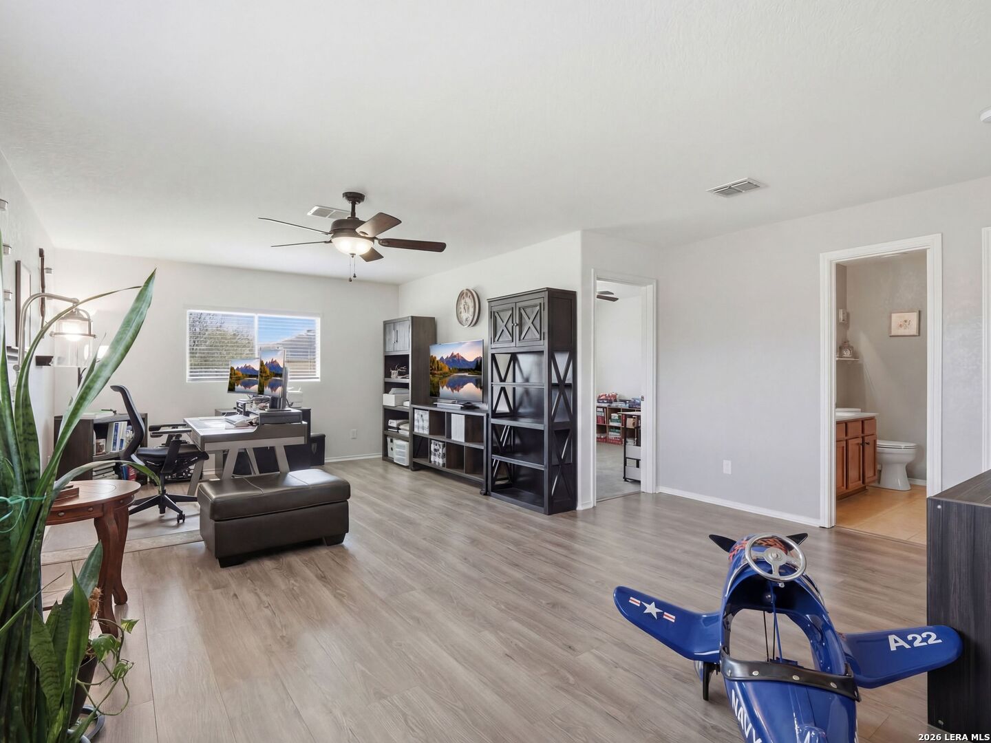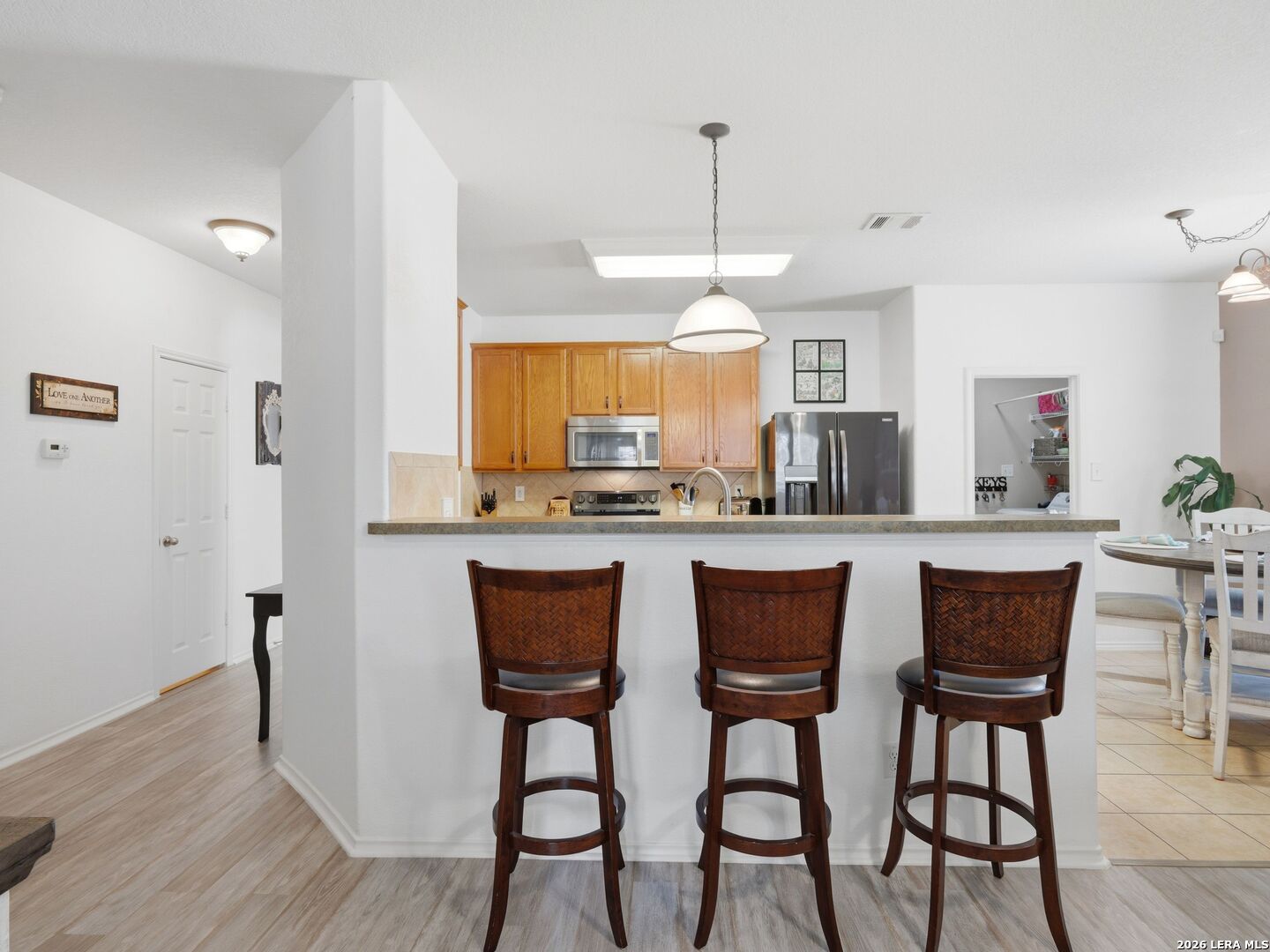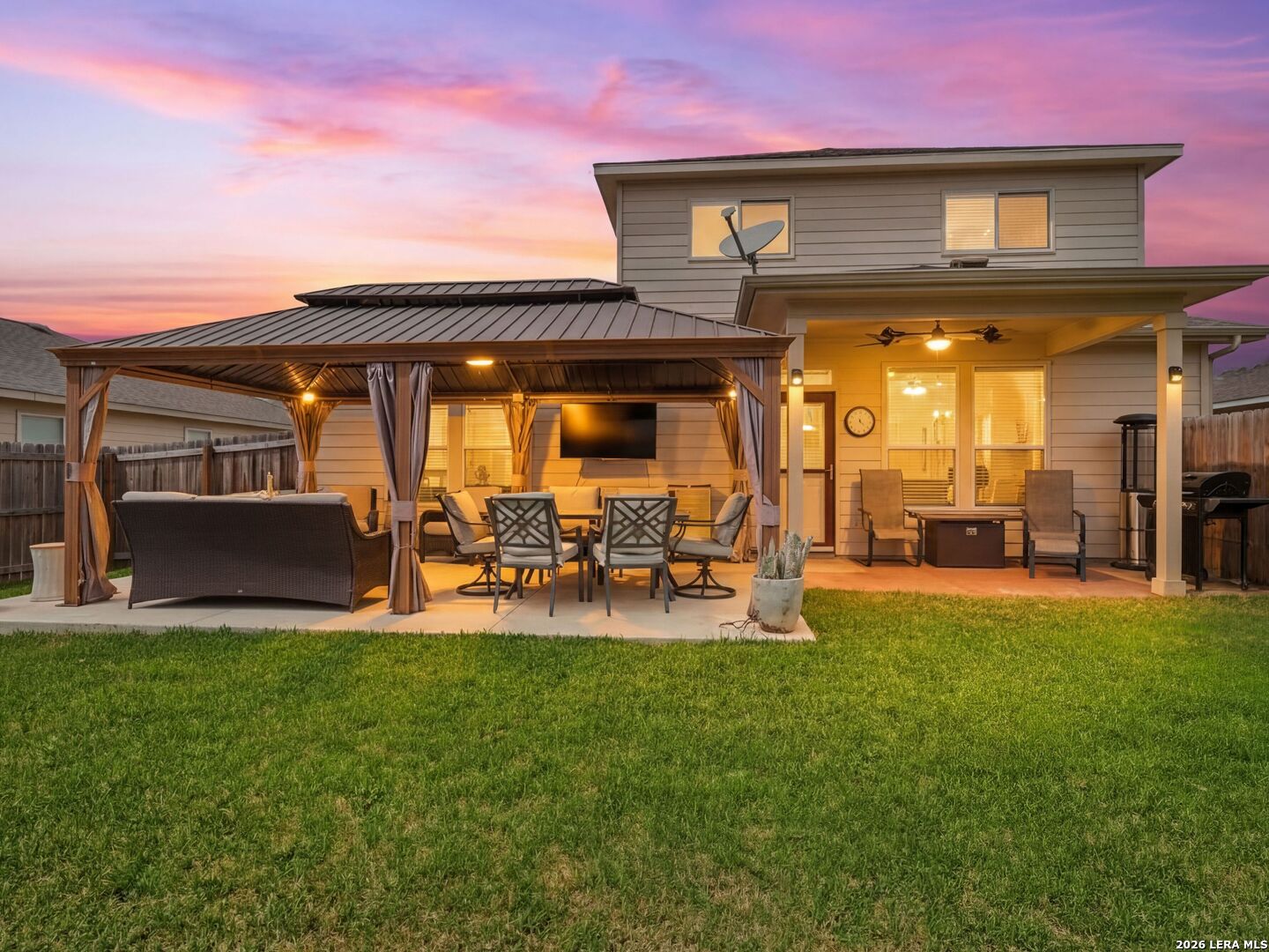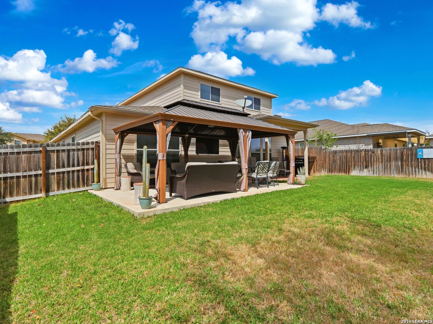Set in The Trails at Kensington Ranch, this well-maintained home offers a functional layout, thoughtful updates, and inviting indoor-outdoor living with a move-in ready feel. Inside, the home features updated flooring, abundant natural light, and multiple living and dining areas that provide flexibility for everyday living. The kitchen offers ample cabinet space, a breakfast bar, and an open connection to the main living areas, creating an easy flow throughout the first floor. The primary suite is located on the main level with a spacious layout, walk-in closet, and private bath featuring dual vanities, a garden tub, and a separate walk-in shower. Upstairs, a large second living area/game room and generously sized secondary bedrooms offer additional space for a variety of needs. Outdoor living is a standout, with a covered patio and an additional pergola-style seating area that expands the entertaining space and creates a comfortable setting for relaxing or gathering. The backyard is level and usable, with room to enjoy or customize. Conveniently located with access to major routes, shopping, and dining, this property offers a balance of comfort, space, and everyday functionality.