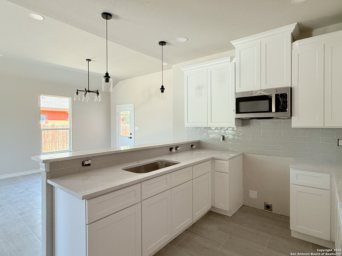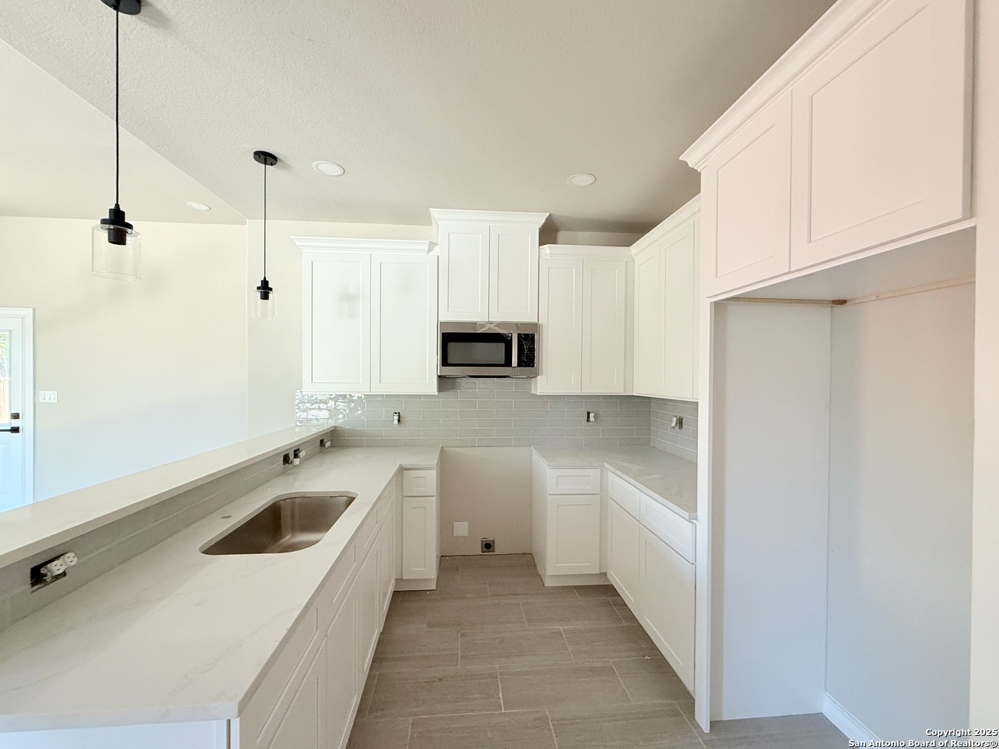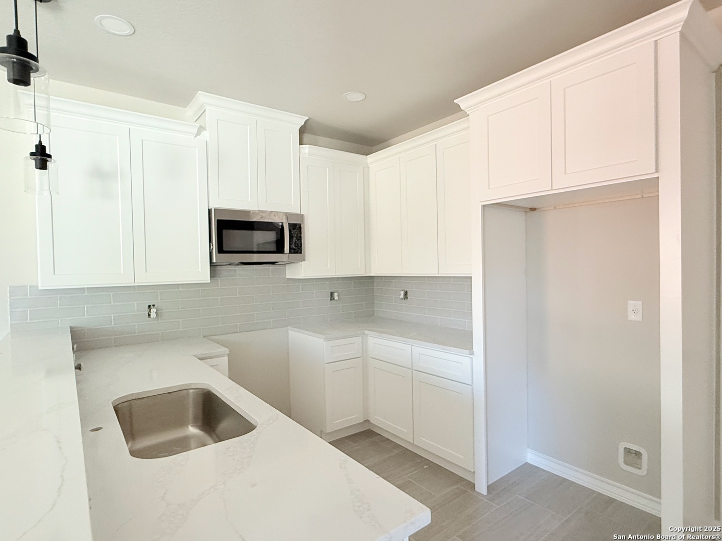 Step into modern comfort with this brand-new 3-bedroom, 2-bathroom home, designed for easy living. This one-story, no-step floor plan features sleek all-tile flooring and 8' interior doors throughout. The spacious primary suite offers a high ceiling and a spa-like walk-in shower, while the kitchen and bathrooms are finished with solid countertops for durability and style. Perfectly located just minutes from Lackland AFB and under 15 minutes to downtown, this home combines style, accessibility, and unbeatable convenience.