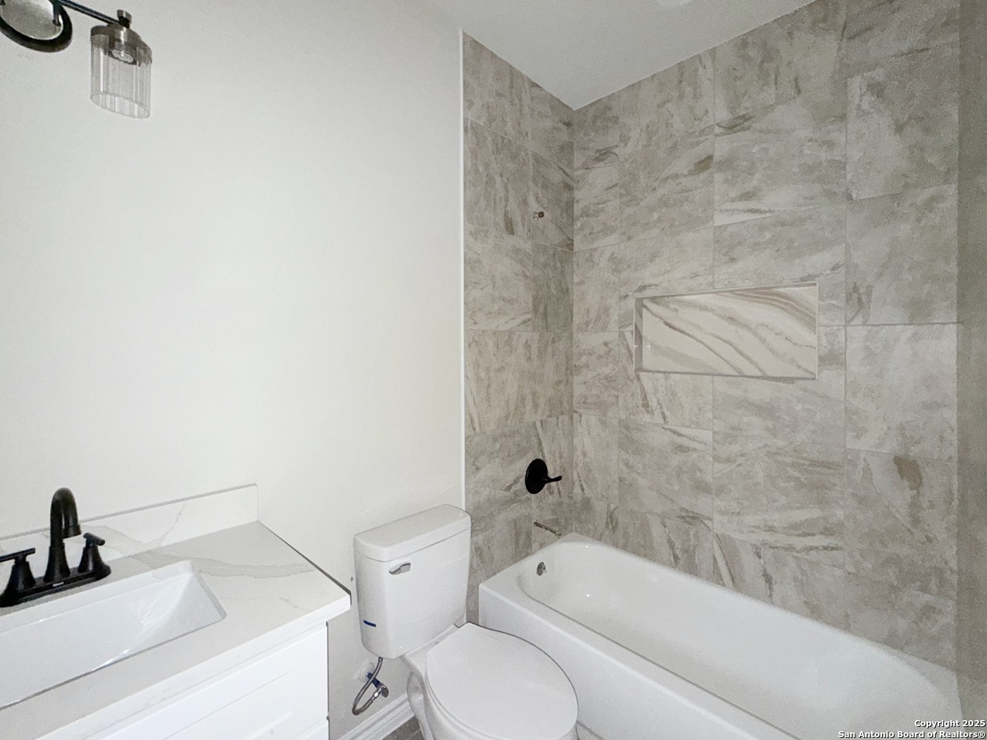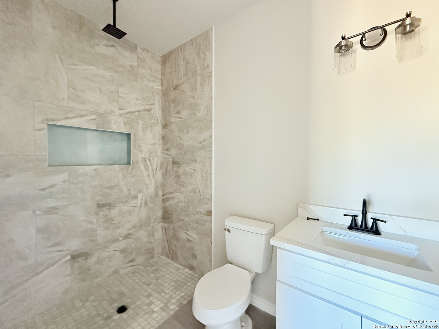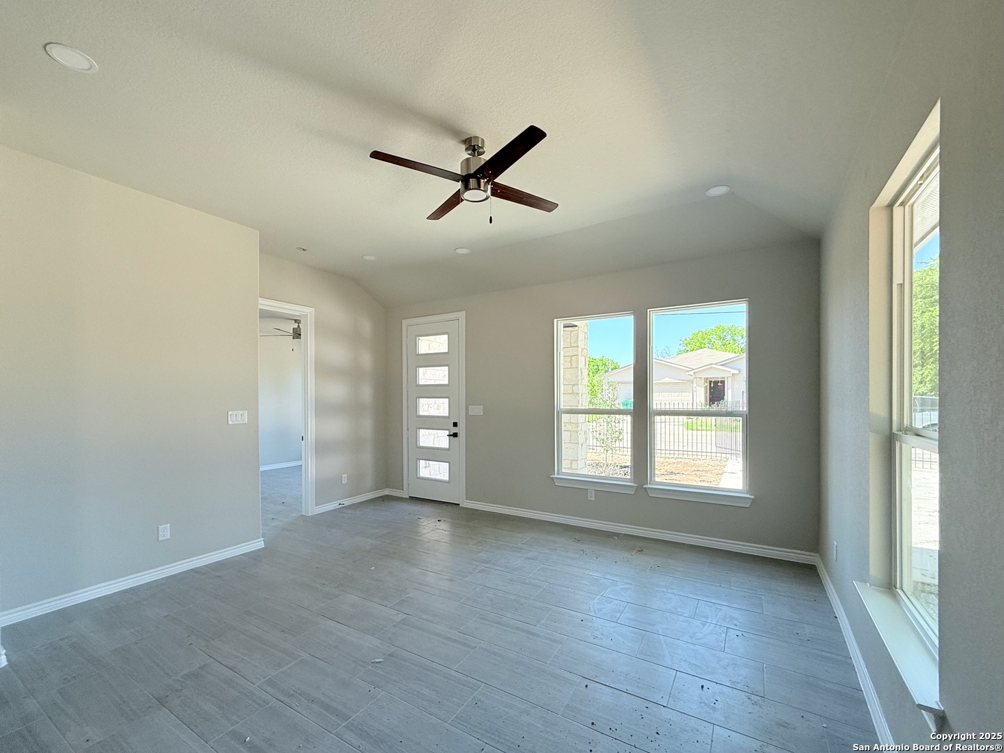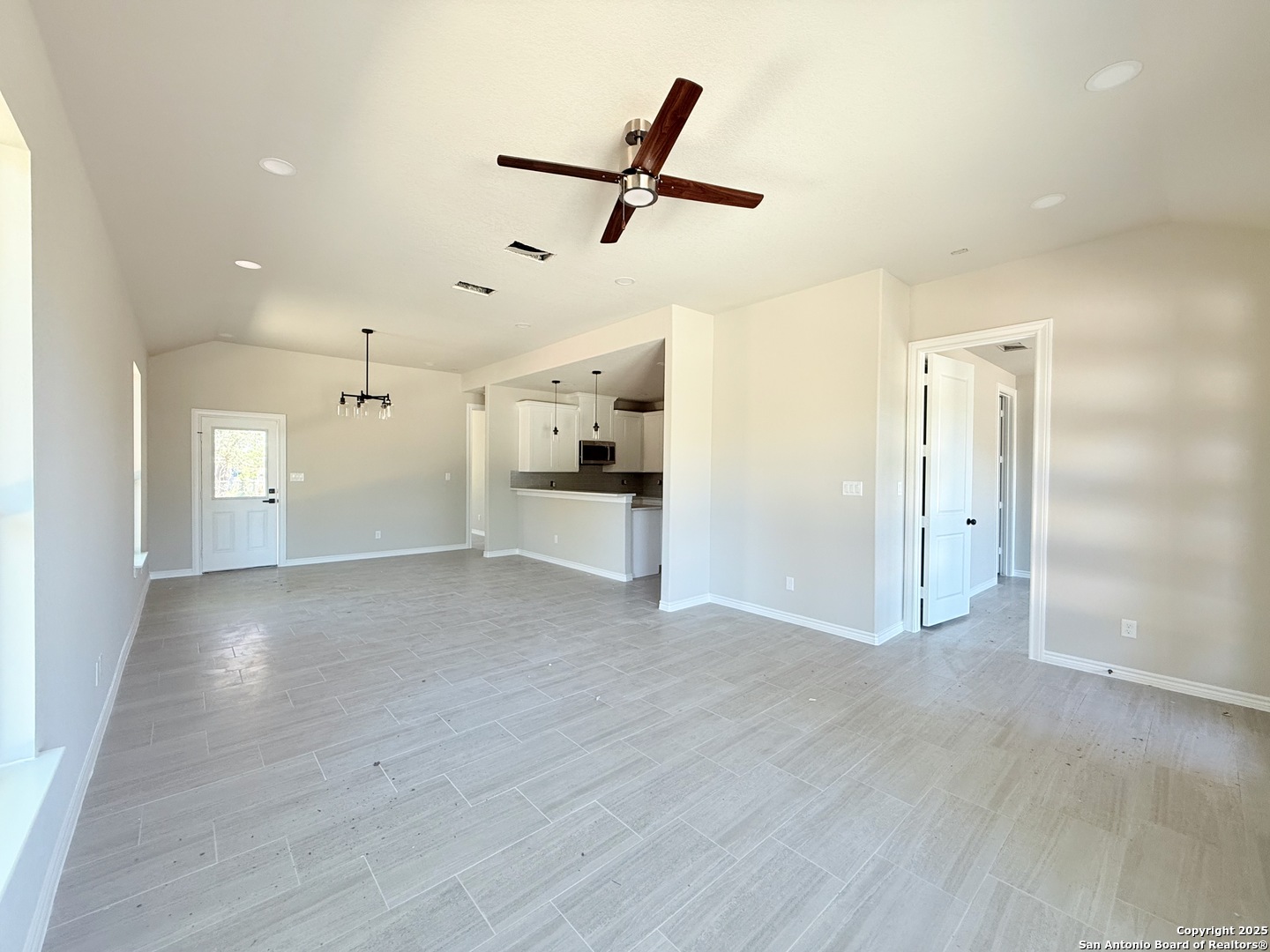 Step into modern comfort with this brand-new 3-bedroom, 2-bathroom home, designed for easy living. This one-story, no-step floor plan features sleek all-tile flooring and 8' interior doors throughout. The spacious primary suite offers a high ceiling and a spa-like walk-in shower, while the kitchen and bathrooms are finished with solid countertops for durability and style. Perfectly located just minutes from Lackland AFB and under 15 minutes to downtown, this home combines style, accessibility, and unbeatable convenience.