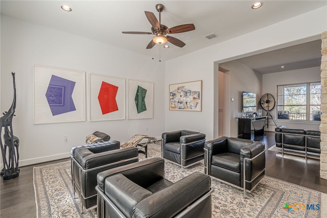 This is the one you’ve been waiting for! An extremely rare opportunity to own the largest square-footage home in Kissing Tree, perfectly positioned on a hard-to-find lot backing to the putting green of Hole 8. Enjoy serene golf course views with a treed buffer—offering the best of both privacy and scenery. The curb appeal is undeniable, featuring extensive landscaped beds, a striking stucco exterior, and a classic Spanish tile roof that makes this home a true head-turner. Inside, this 3-bedroom, 3-bath residence is loaded with upscale finishes and thoughtful design. Rich wood flooring flows throughout, while the oversized kitchen impresses with gorgeous granite countertops and custom cabinetry designed to enhance both function and luxury. The home offers three distinct living areas, including a spacious main living room, an elegant sitting/parlor or piano area, and a private study. Architectural details abound with ceiling beams, stone pillars, accented backsplash, and custom touches throughout. The primary suite is truly exceptional—oversized and hard to find—with large closets featuring built-ins and convenient access to the laundry room for seamless organization. The expansive primary bath showcases unique granite countertops, a dedicated makeup vanity, and abundant counter space. Step outside to the northeast-facing backyard, where an elevated covered patio and wrought-iron fencing create the perfect setting for relaxing evenings overlooking the course. Truly a rare treasure in Kissing Tree—luxury, location, and lifestyle all in one. Homes like this don’t come along often!