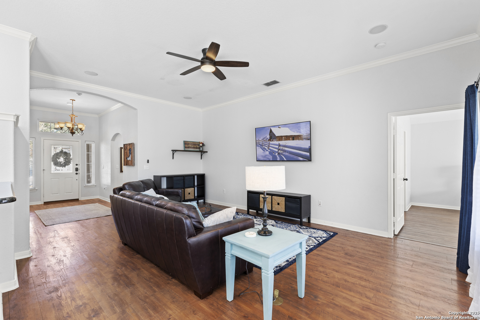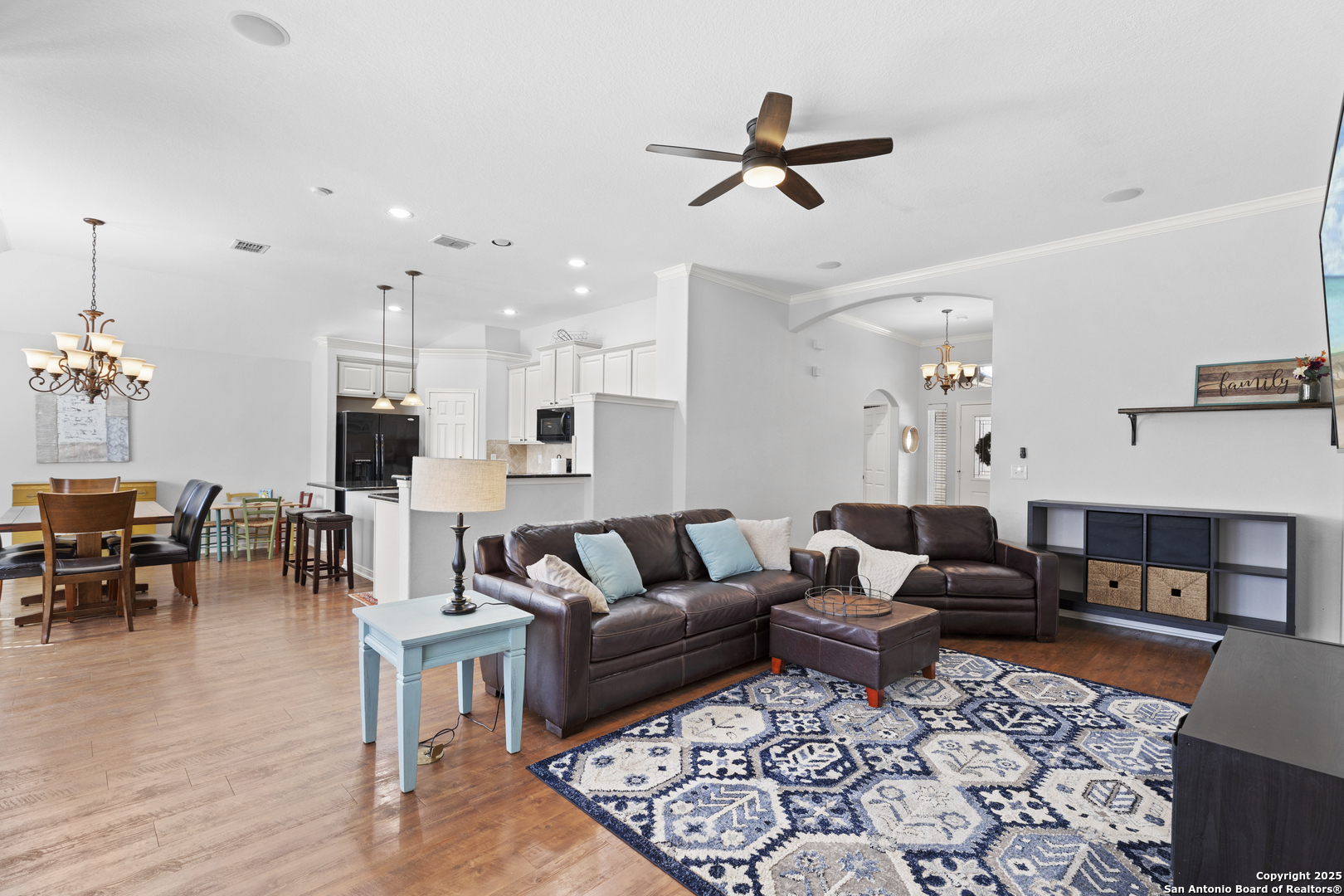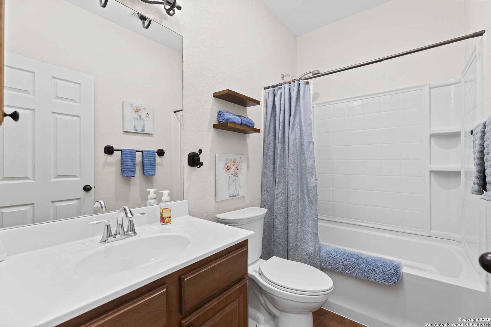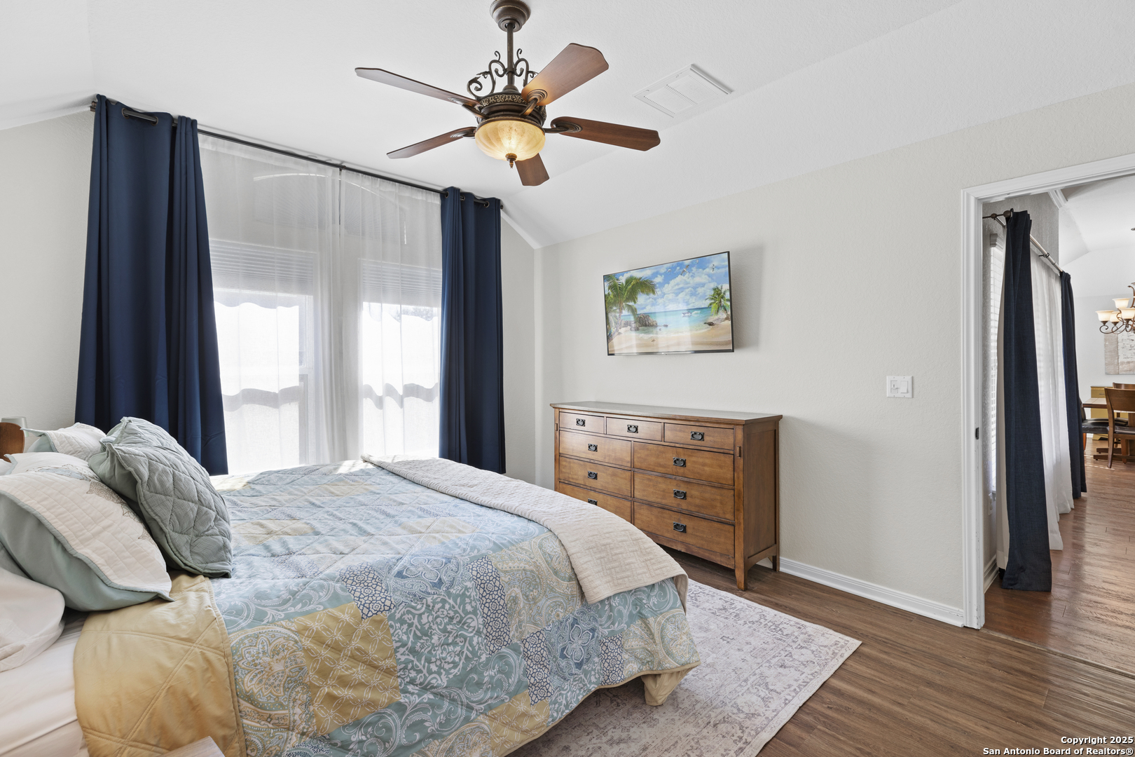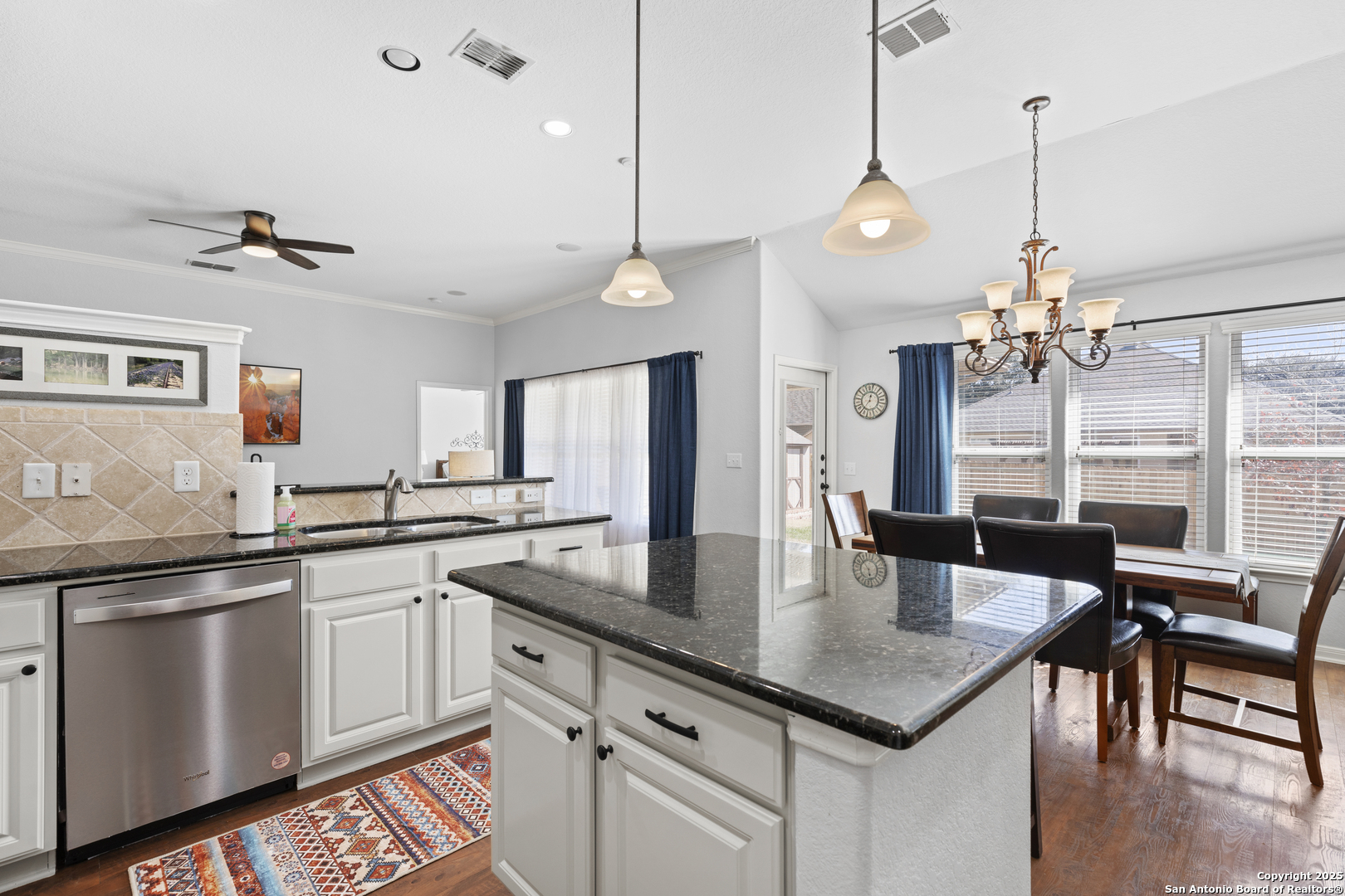 Stunning Short-Term, Fully Furnished Home in Buffalo Crossing - Cibolo, TX. Now available in the highly sought-after Buffalo Crossing subdivision, this beautifully maintained 4-bedroom, 2-bathroom home offers both comfort and style. Featuring easy-to-maintain luxury vinyl plank and ceramic tile flooring throughout, this home is perfect for those looking for both elegance and convenience. Upon entry, the spacious foyer welcomes you and leads you past the guest bedrooms into a generous living room. The open-concept design seamlessly connects the living room to the eat-in kitchen, creating a perfect flow for entertaining guests. The updated kitchen boasts sleek granite countertops, modern cabinetry, a stylish tiled backsplash, and a large island providing additional prep space. The master suite, thoughtfully positioned away from the secondary bedrooms, offers a private retreat. The en-suite bathroom is an oasis with double vanities, a relaxing garden tub, and a separate walk-in shower. Each of the three additional bedrooms is spacious and features a ceiling fan for added comfort. Outside, the backyard is complete with a handy storage shed and a covered patio, perfect for hosting weekend barbecues. This property comes fully equipped with all major appliances, including a refrigerator, washer, and dryer. All utilities and landscaping is paid for by the property owner. The home is currently leased from May 5th, 2025 to August 31st, 2025. Conveniently located with quick access to I-35, Loop 1604, I-10, and just a short drive to Randolph AFB, this home is sure to impress. Schedule a tour today!