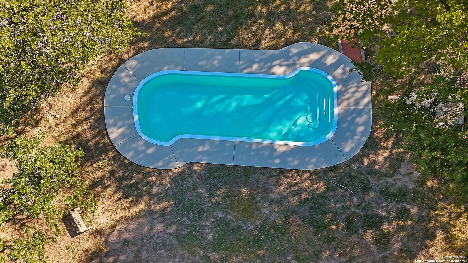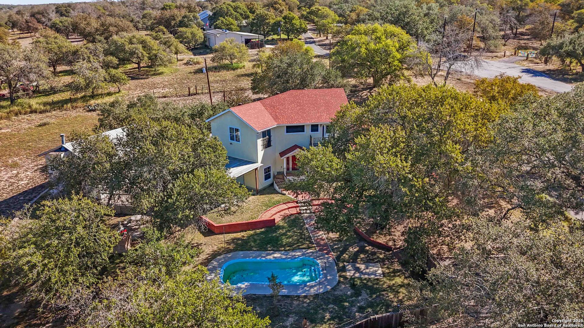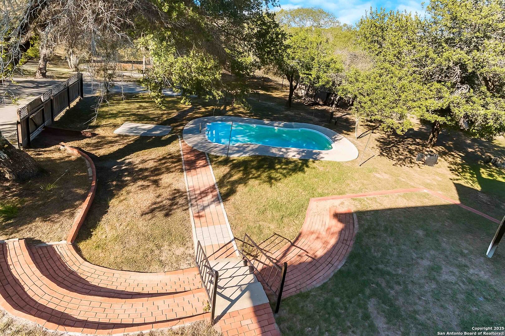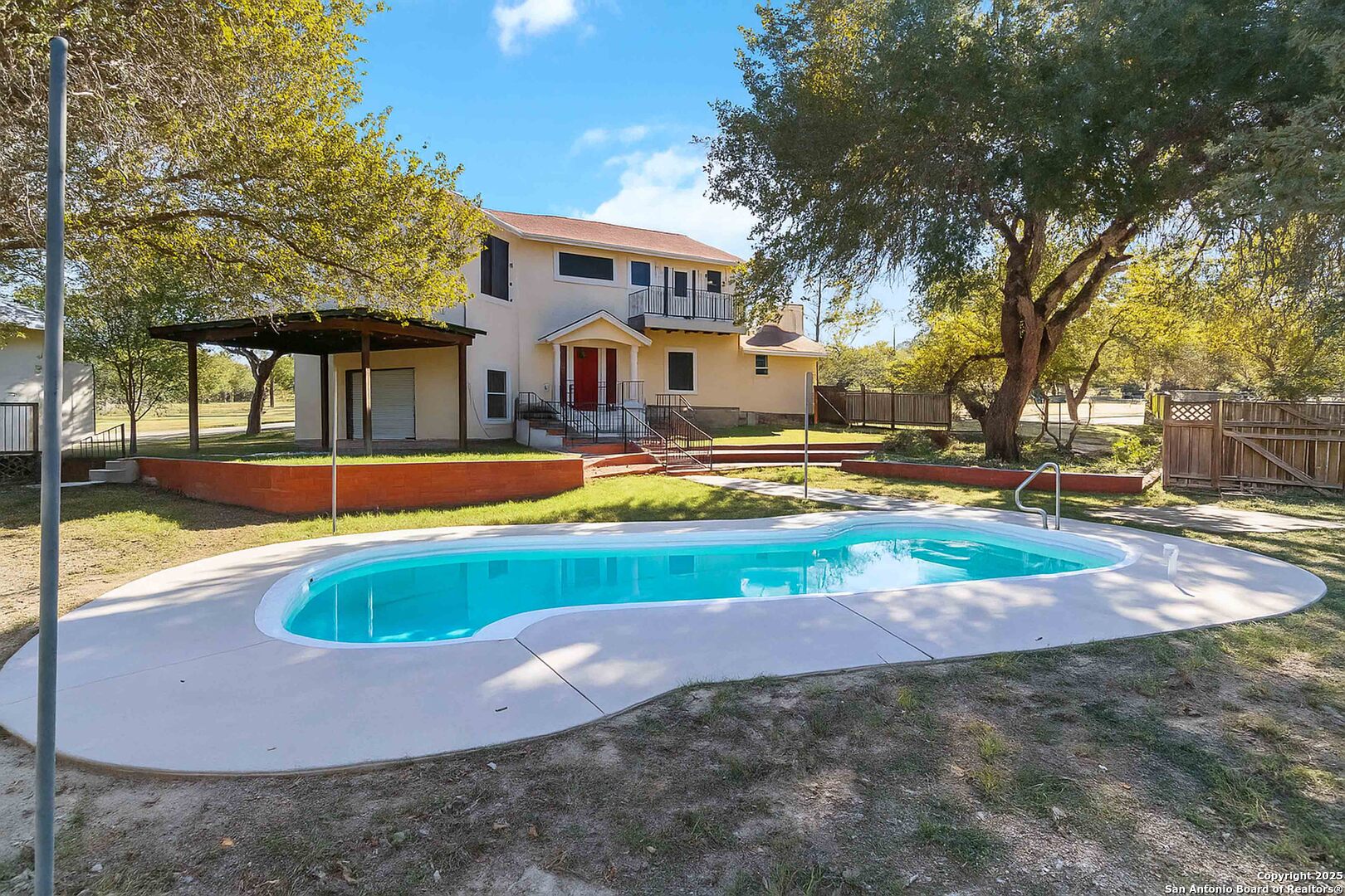 City View Estates is located in the welcoming community of Adkins TX, popular for its laid back country feel, yet only 30 minutes to downtown San Antonio. Escape the city and boring production neighborhoods and find your way to 217 Sky View Dr, boasting a custom home and in ground pool, all located on over 5 beautiful tree filled acres. This well cared for home has a versatile floor plan featuring the primary suite and two guest rooms upstairs. Downstairs has an open kitchen, large living room and a guest suite with a private full bathroom. There is tons of storage inside with its walk in pantry and oversize laundry room. While outside features a shed/workshop with double garage doors and a converted garage with a bathroom perfect for your man cave, homeschool classroom or additional guest suite. Relax around your sparkling pool, take a break under your shaded covered patio or tell stories around the custom outdoor fireplace this home is waiting for you and yours to enjoy for years to come. Schedule your showing today!