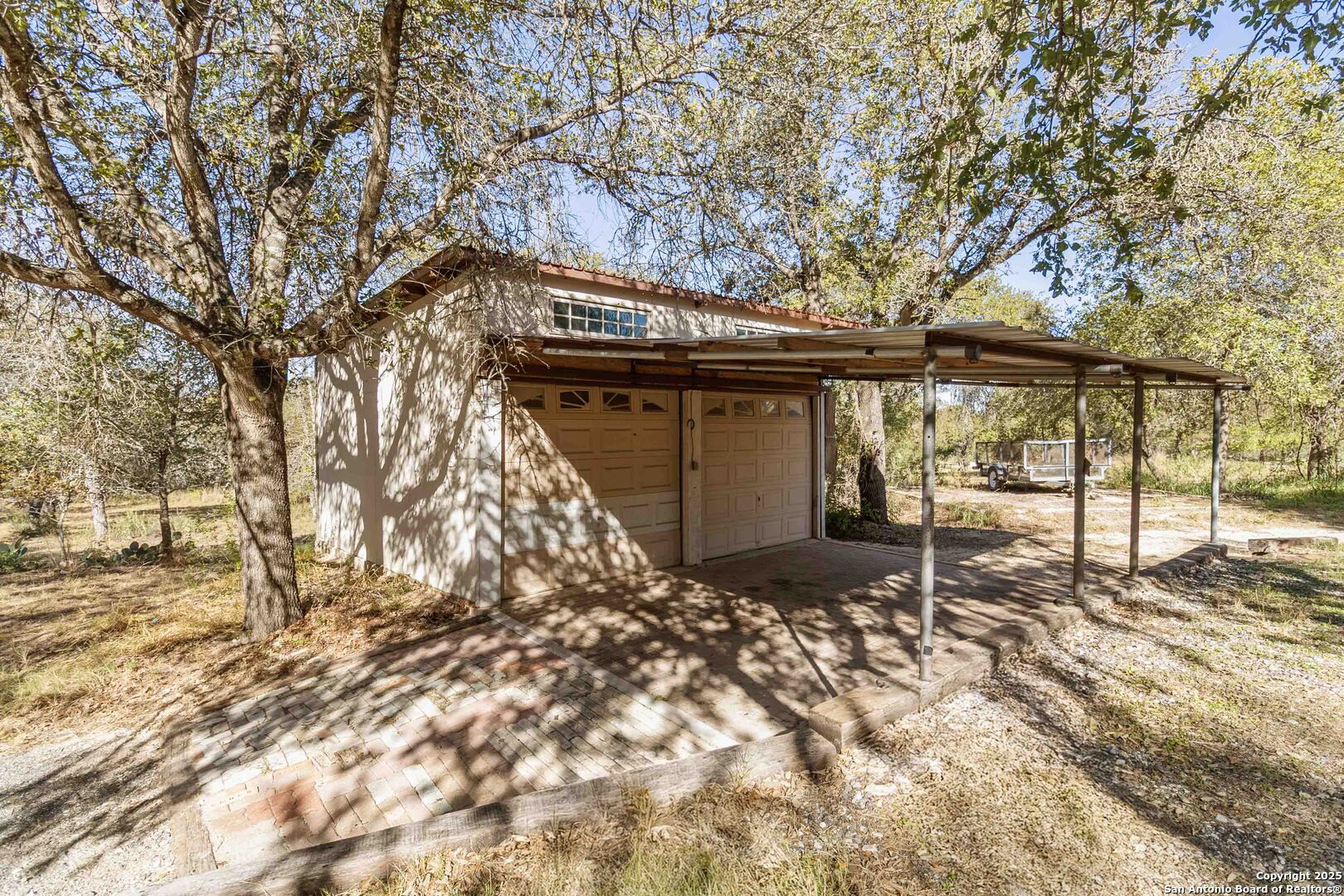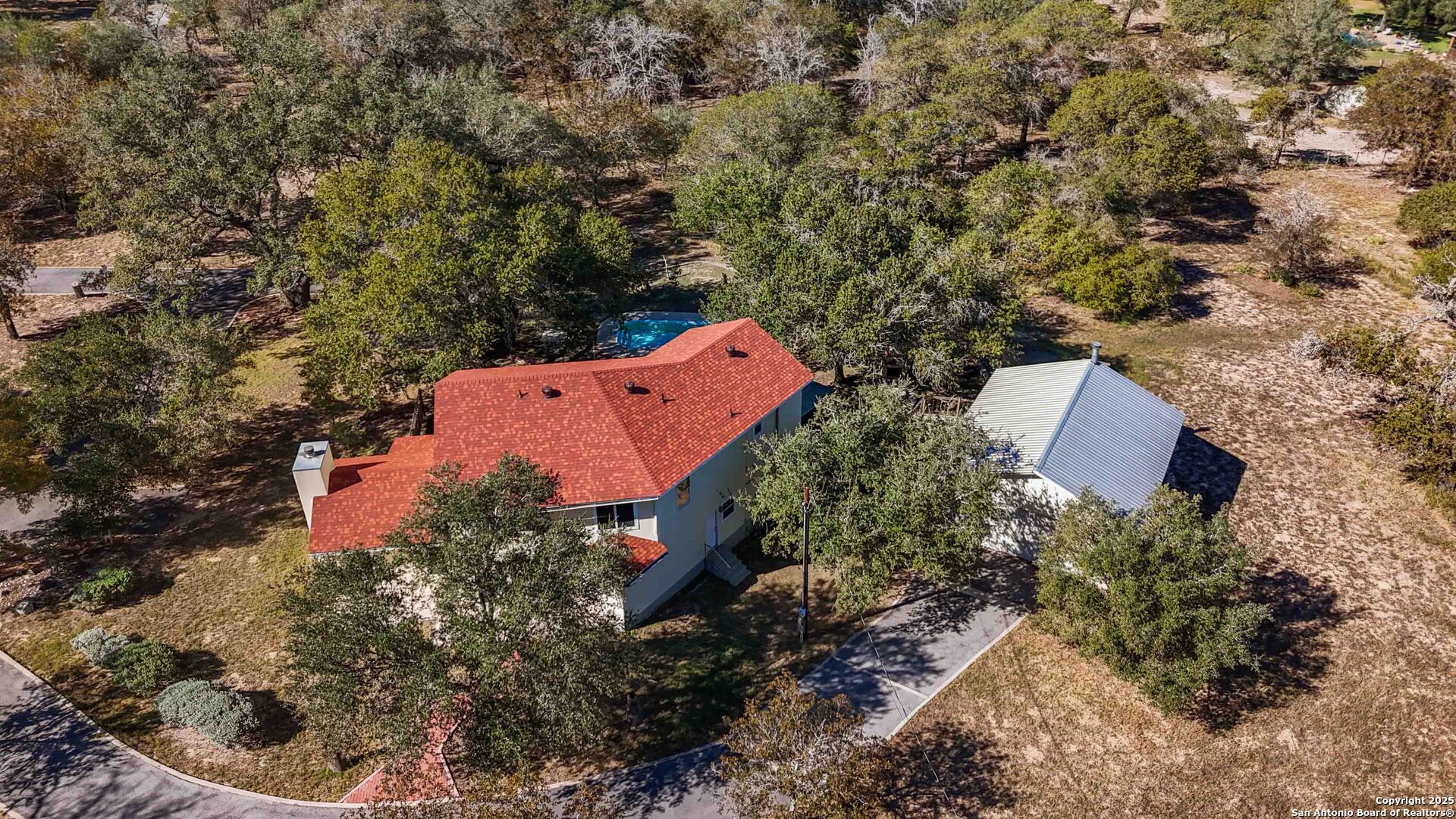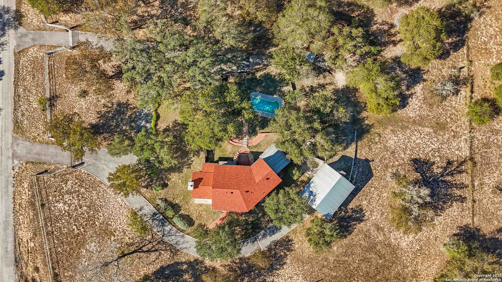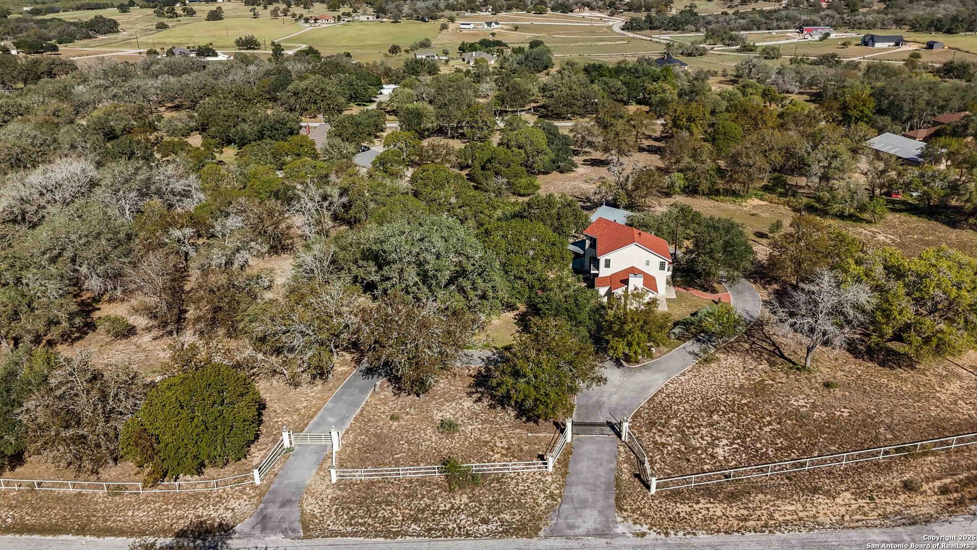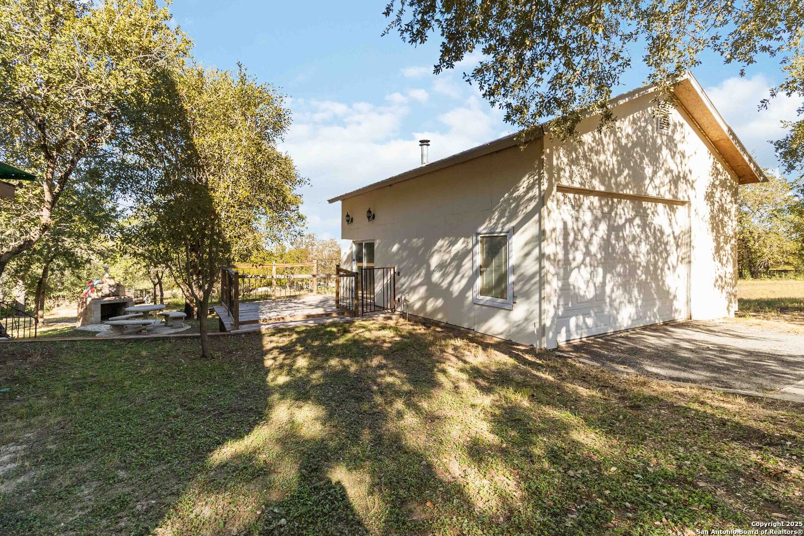 City View Estates is located in the welcoming community of Adkins TX, popular for its laid back country feel, yet only 30 minutes to downtown San Antonio. Escape the city and boring production neighborhoods and find your way to 217 Sky View Dr, boasting a custom home and in ground pool, all located on over 5 beautiful tree filled acres. This well cared for home has a versatile floor plan featuring the primary suite and two guest rooms upstairs. Downstairs has an open kitchen, large living room and a guest suite with a private full bathroom. There is tons of storage inside with its walk in pantry and oversize laundry room. While outside features a shed/workshop with double garage doors and a converted garage with a bathroom perfect for your man cave, homeschool classroom or additional guest suite. Relax around your sparkling pool, take a break under your shaded covered patio or tell stories around the custom outdoor fireplace this home is waiting for you and yours to enjoy for years to come. Schedule your showing today!