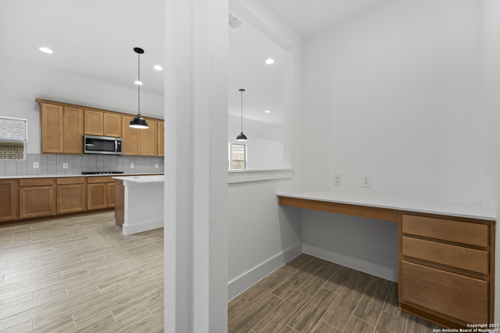 The Sheldon offers the ease of single-story living with an open concept design. Morning routines and afternoon homework are a breeze with the Pulte Planning Center, a great space to organize paperwork and mail. Hobbyists and entrepreneurs will welcome a flex room or an optional study, while entertainers will enjoy the open island kitchen overlooking the dining and gathering room.