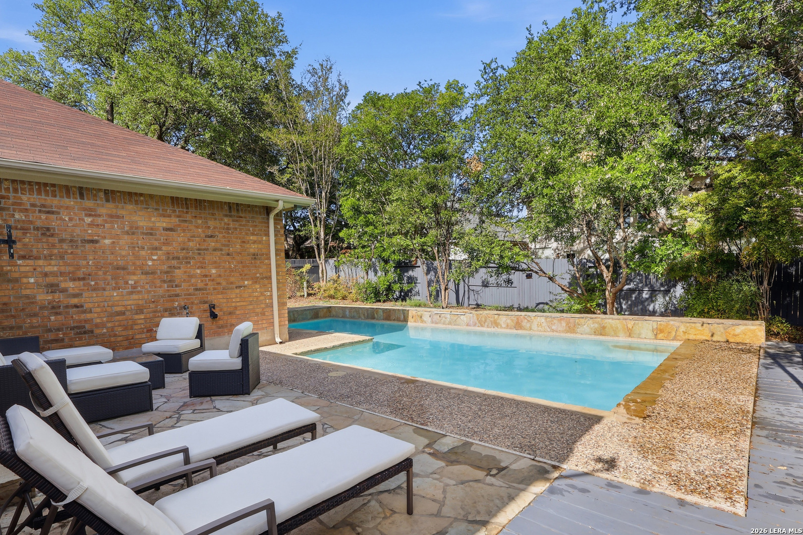 Where summer afternoons dissolve into evenings by the pool, 21726 Luisa offers the kind of everyday ease that's genuinely hard to find. Located in the Vistas of Encino Park (San Antonio, TX 78259), this single-story 3-bedroom, 2-bathroom home includes a dedicated office or flex room - fully functional as a 4th bedroom - along with a formal dining space. The kitchen features granite countertops, stainless steel appliances, and a sun-filled breakfast nook that opens directly into a large family room. The private backyard pool anchors the outdoor living space, complemented by a covered patio with a motorized retractable awning. Recent upgrades include a new roof (2025), a high-efficiency HVAC system (2024), and a whole-house water filtration system (2025) - three significant improvements completed within the last two years. Situated within the North East Independent School District (NEISD) with convenient access to the northside's primary corridors, Encino Park is known for its mature tree canopy, consistent architecture, and established community character. Move-in ready, single-story, and priced under $400,000 with a private pool in NEISD.