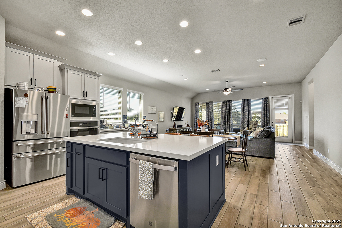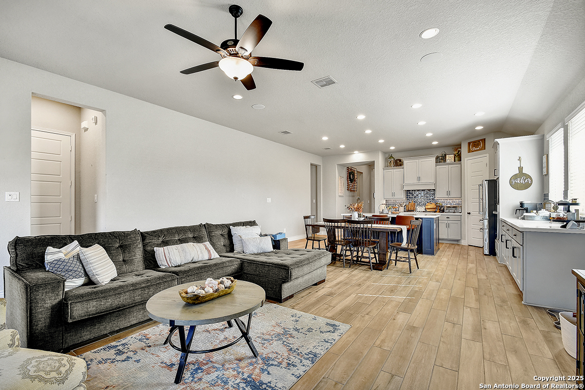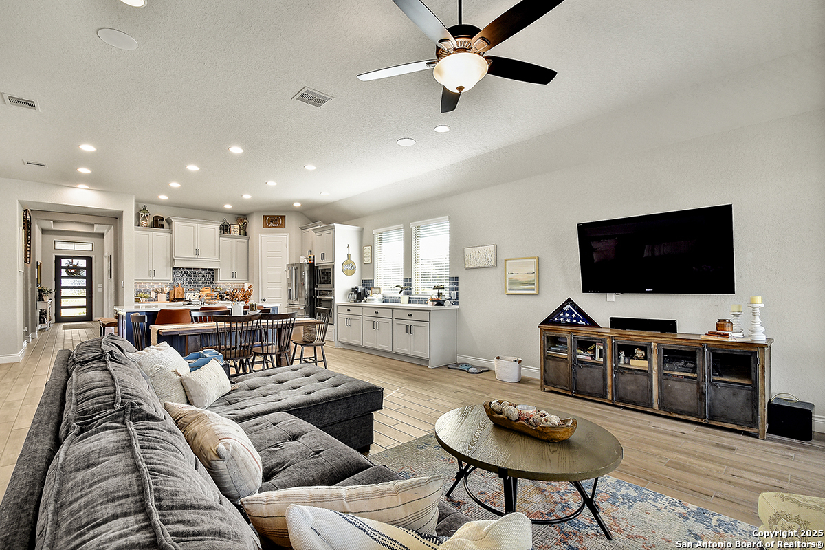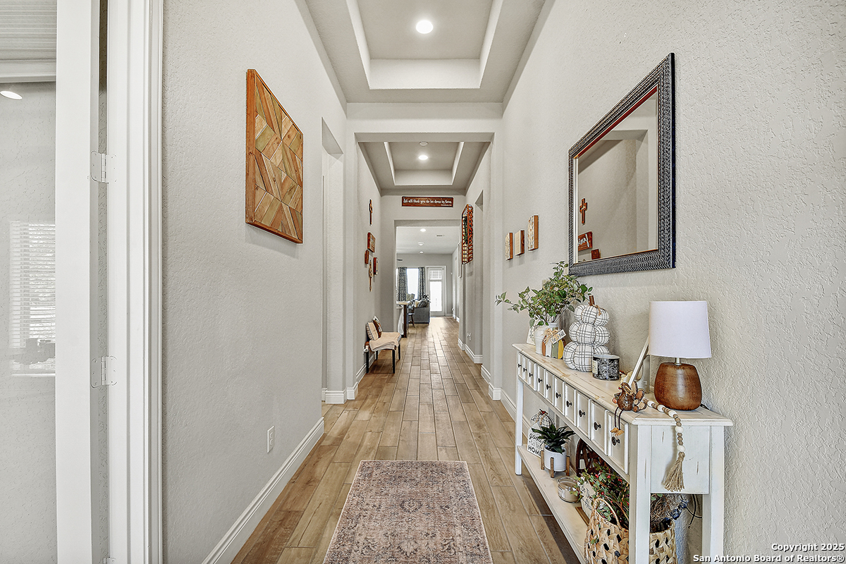 Welcome to this exceptional 3-bedroom, 3-bath Perry Home in vibrant New Braunfels-where thoughtful design, modern finishes, and community convenience come together seamlessly. Situated on a prime corner lot, this home features striking curb appeal with light stone exterior, manicured landscaping, and a warm, inviting entry. Inside, you're greeted by a long, elegant hallway accented with tall ceilings and natural light, leading you into the heart of the home. The open-concept kitchen is a true showpiece, offering a large island, sleek tile backsplash, upgraded stainless-steel appliances, and abundant custom cabinetry. Perfect for hosting or everyday gatherings, the kitchen flows effortlessly into the main living and dining areas. Each bedroom is generously sized, and the home includes three full baths for added privacy and convenience. A 3-car tandem garage offers versatility for parking, storage, or workspace needs. This sought-after community features on-site schools, pocket parks, walking trails, and a refreshing neighborhood pool, making daily life both convenient and enjoyable. Nearby shopping, dining, and commercial hubs add to the unbeatable location. Crafted with the quality and timeless style Perry Homes is known for, this property blends comfort, character, and convenience-making it a must-see in New Braunfels.