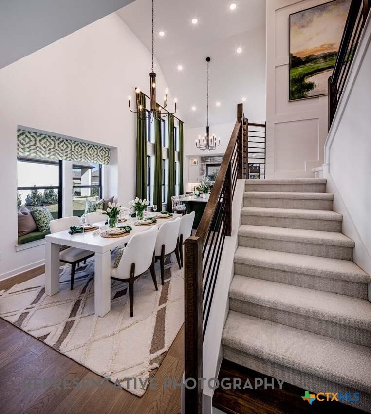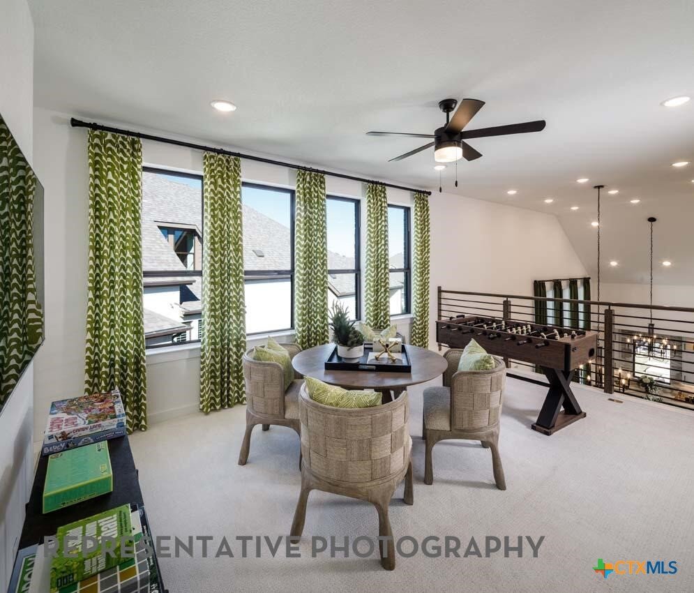 Model home plan! Gourmet kitchen with ample storage space and large center island. Soaring ceilings to upstairs game room big enough for pool table or shuffleboard and features a separate entertainment room! Freestanding soaker tub with separate shower at primary suite. Cozy living room ready to host. Smart home technology, upgraded landscaping, full sod and sprinkler system included!! Home is under construction with an estimated completion of August 2026. Buyer still has time to personalize options.
