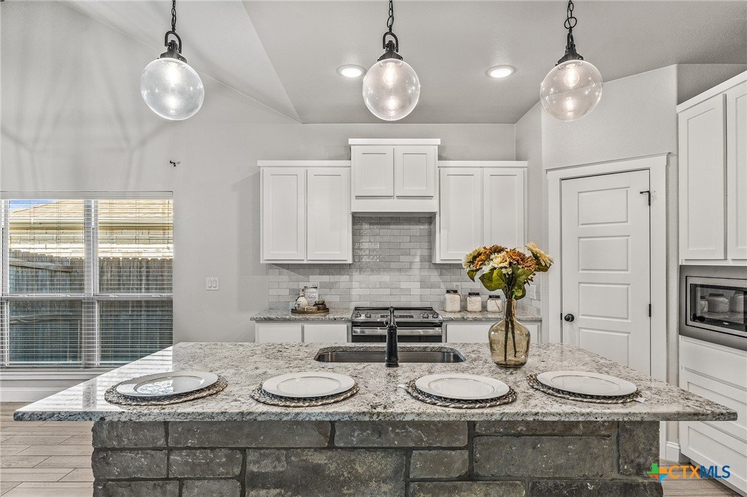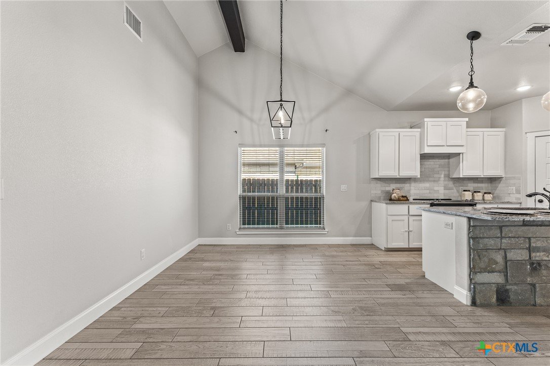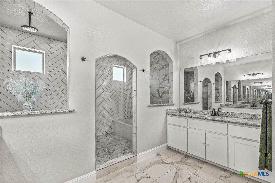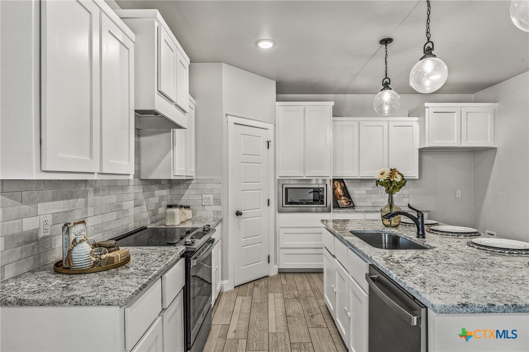 Welcome to this absolutely stunning luxury home loaded with high end modern amenities, perfectly situated in Harker Heights, with its desirable Harker Heights High school just a 6 mins away! This breathtakingly beautiful 4-bedroom estate boasts an expansive 0.454 acres of serene, offering the ultimate retreat for those seeking unparallel luxury and tranquility. The home's open layout seamlessly connects the living spaces, creating a sense of flow and freedom, and features a striking beam in the living room that adds a touch of rustic charm. The high ceilings add a sense of grandeur, with vaulted ceilings and also tray ceilings. The gourmet kitchen is truly spectacular, featuring exquisite granite countertops, sleek stainless-steel appliances a spacious large island perfect for entertaining gatherings, cabinetry for storing all your culinary essentials. The master suite is a serene oasis, truly massive bathroom with lavish dual vanity and gorgeous herringbone accent tile that adds a touch of sophistication. Enjoy cozy intimate evenings with the ambiance of the remote control fireplace, and keep prized vehicles pristine and protected in the climate- control three car garage. With its incredible convenient location near fantastic dining and shopping options, this luxury home has it absolutely all!