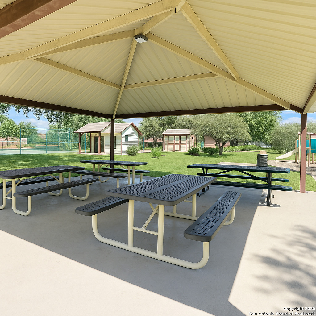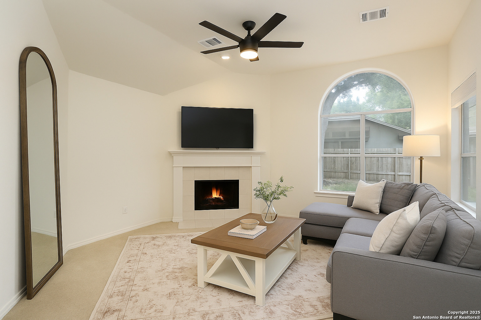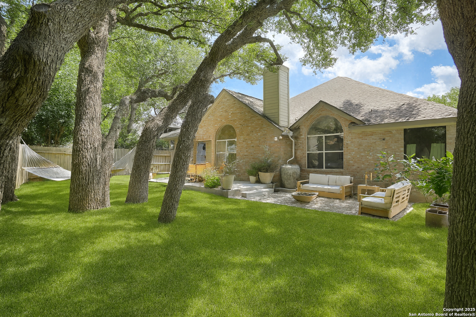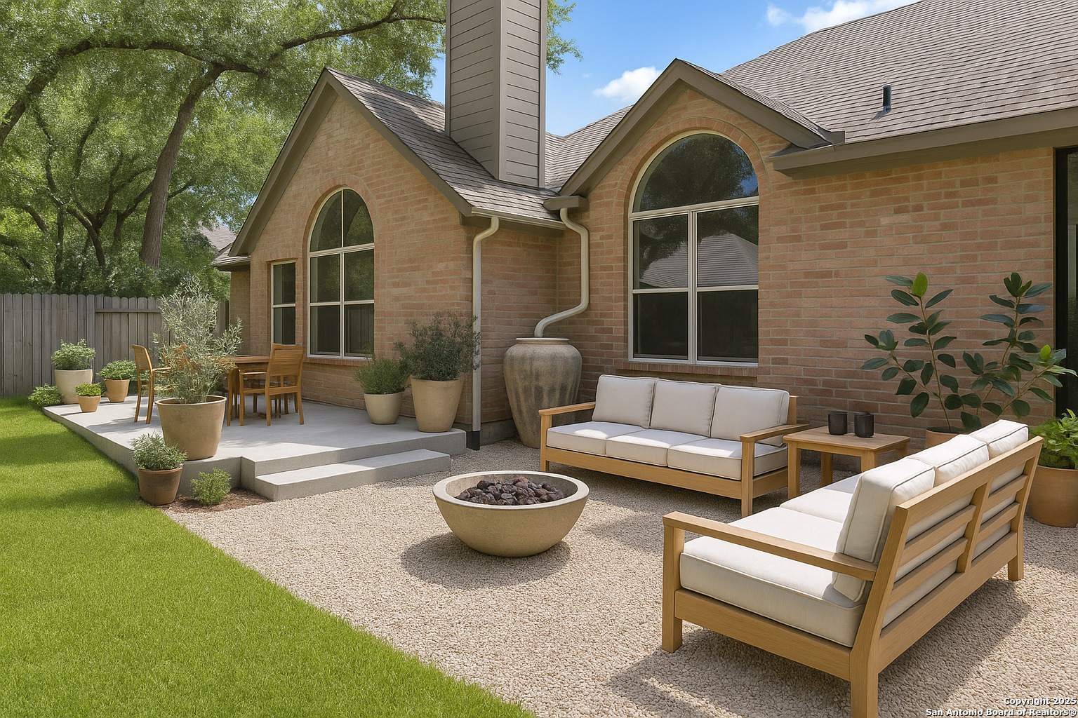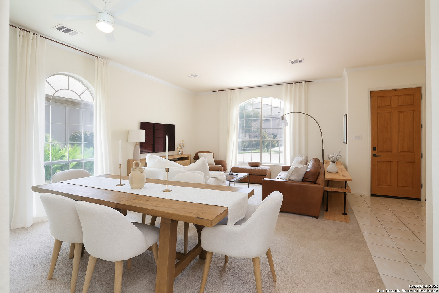 SELLER OFFERING $10K ALLOWANCE FOR UPDATES/RATE BUY DOWN. Beautifully maintained one-story in Deer Creek featuring thoughtful upgrades and major system improvements. This 3-bedroom, 2-bath home offers 2,124 sq ft of living space on a 0.25-acre lot with mature trees, four sides masonry, and a side-entry garage. The layout includes high ceilings, crown molding, and abundant natural light, with two living and dining areas ideal for entertaining. The open kitchen offers a center island, new appliances, and a cozy breakfast nook with window seat overlooking the backyard. The primary suite includes a sitting area, private exterior access, and a luxurious spa-style bathroom with zero-entry shower, freestanding tub, handmade cement dual-sink vanity, no-steam mirrors, and a large walk-in closet. Upgrades include a new HVAC system with upgraded ductwork, new windows, attic insulation, new city water/sewer lines, recessed lighting with dimmers, 8-ft solid core doors, updated fixtures, and a tiled guest bath. Outside, enjoy the extended covered patio, rock seating area, recent fencing, and drainage enhancements. Located near Randolph AFB, The Forum, major highways, and top SCUC ISD schools.